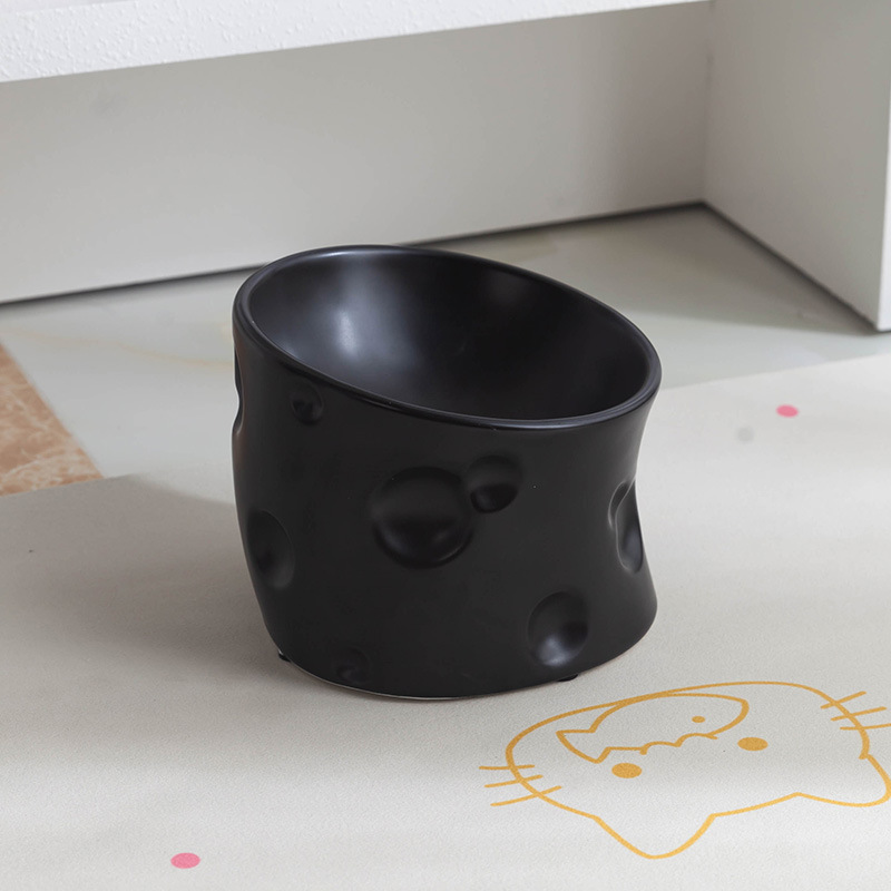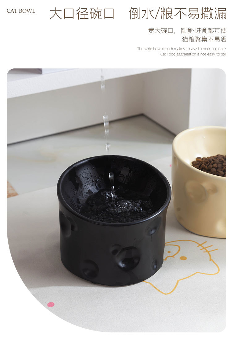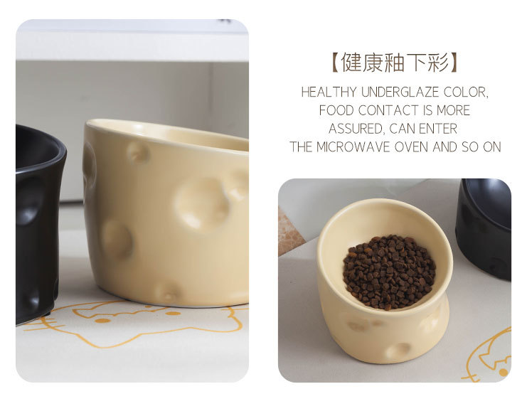 고양이 그릇 개 냄비 세라믹 애완 동물 고양이 작은 개 음식 검은 슬 랜트 입 마시는 물 높은 발 목 보호 그릇 팁이 쉽지 않음