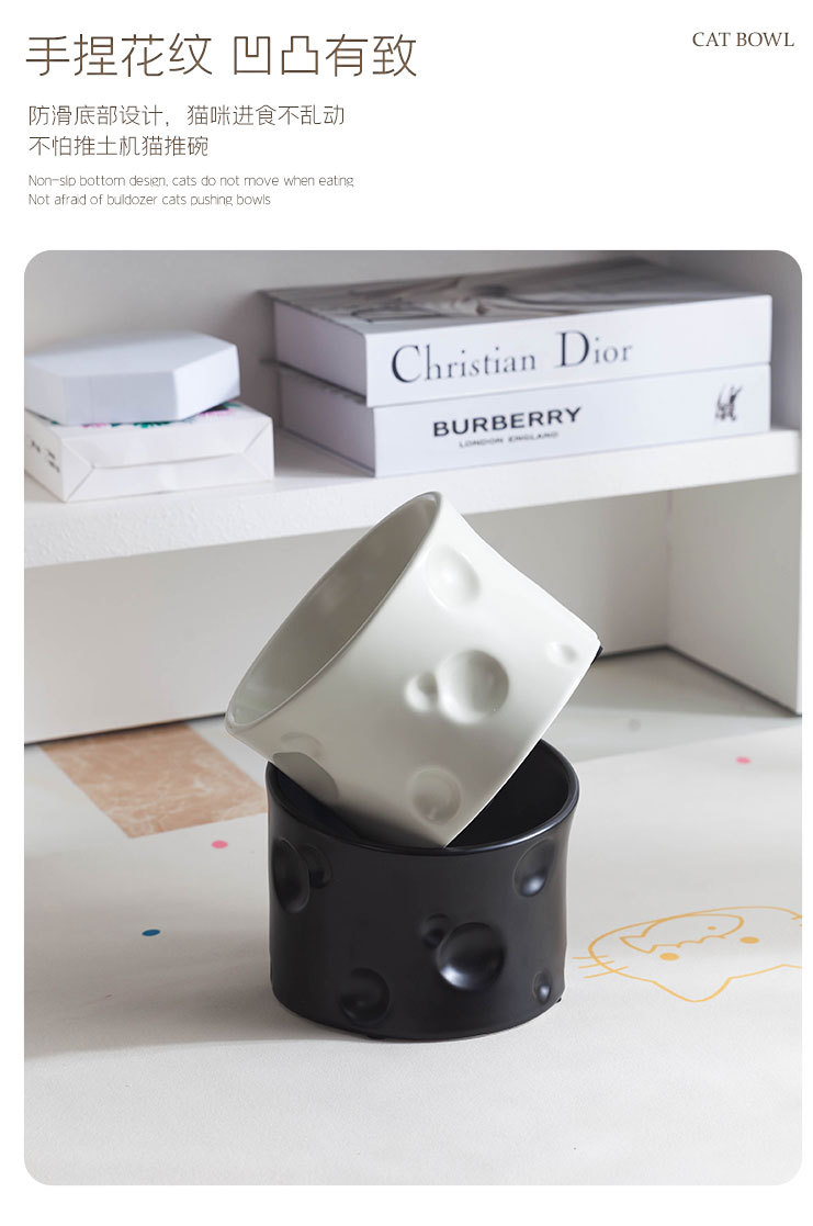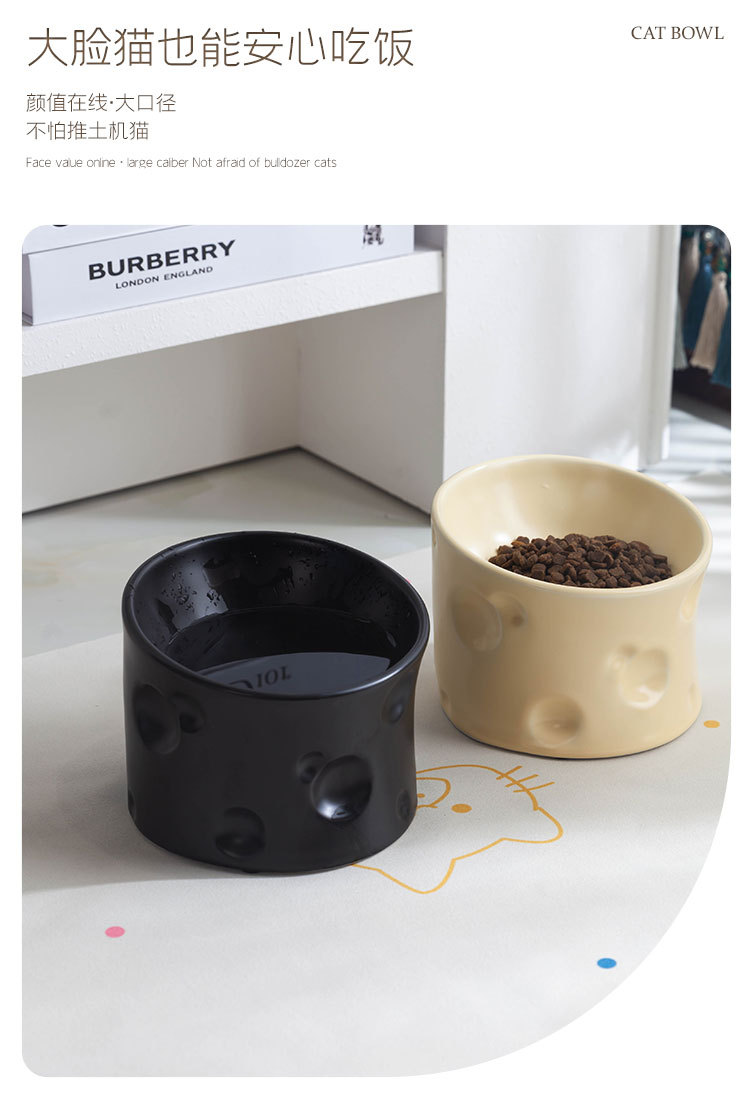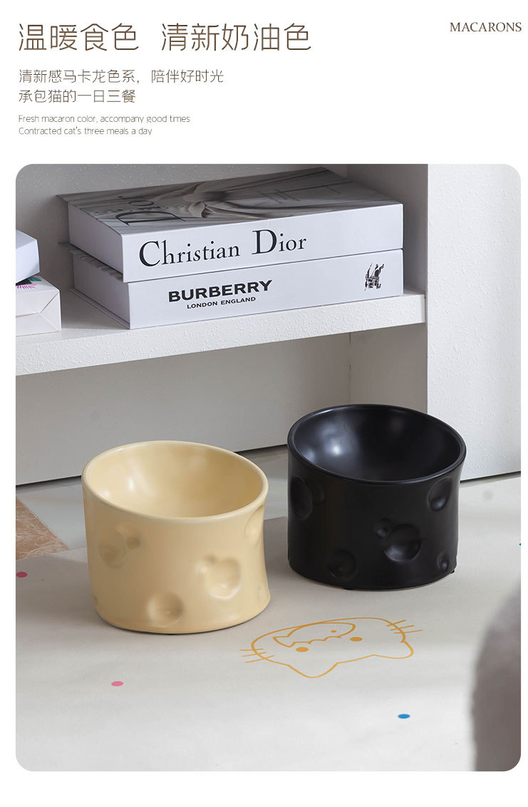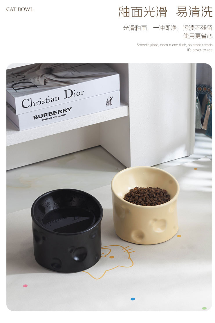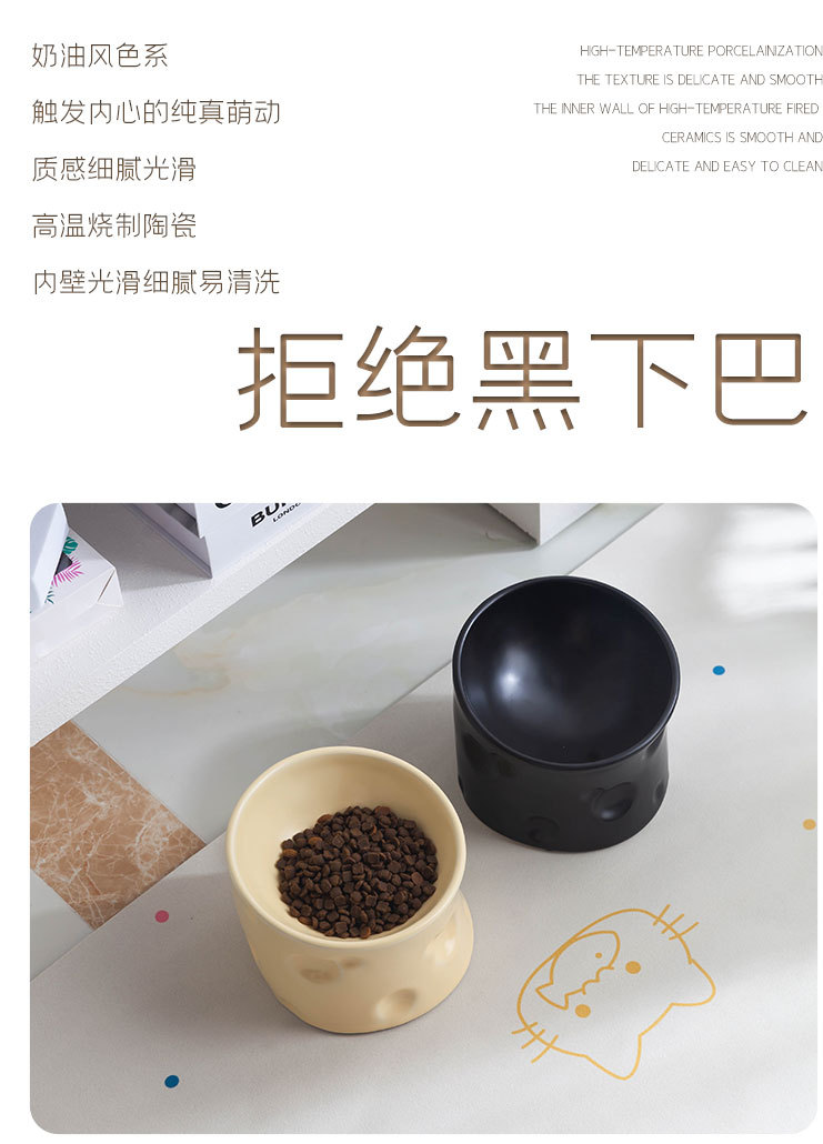 고양이 그릇 개 냄비 세라믹 애완 동물 고양이 작은 개 음식 검은 슬 랜트 입 마시는 물 높은 발 목 보호 그릇 팁이 쉽지 않음스토어 가기
