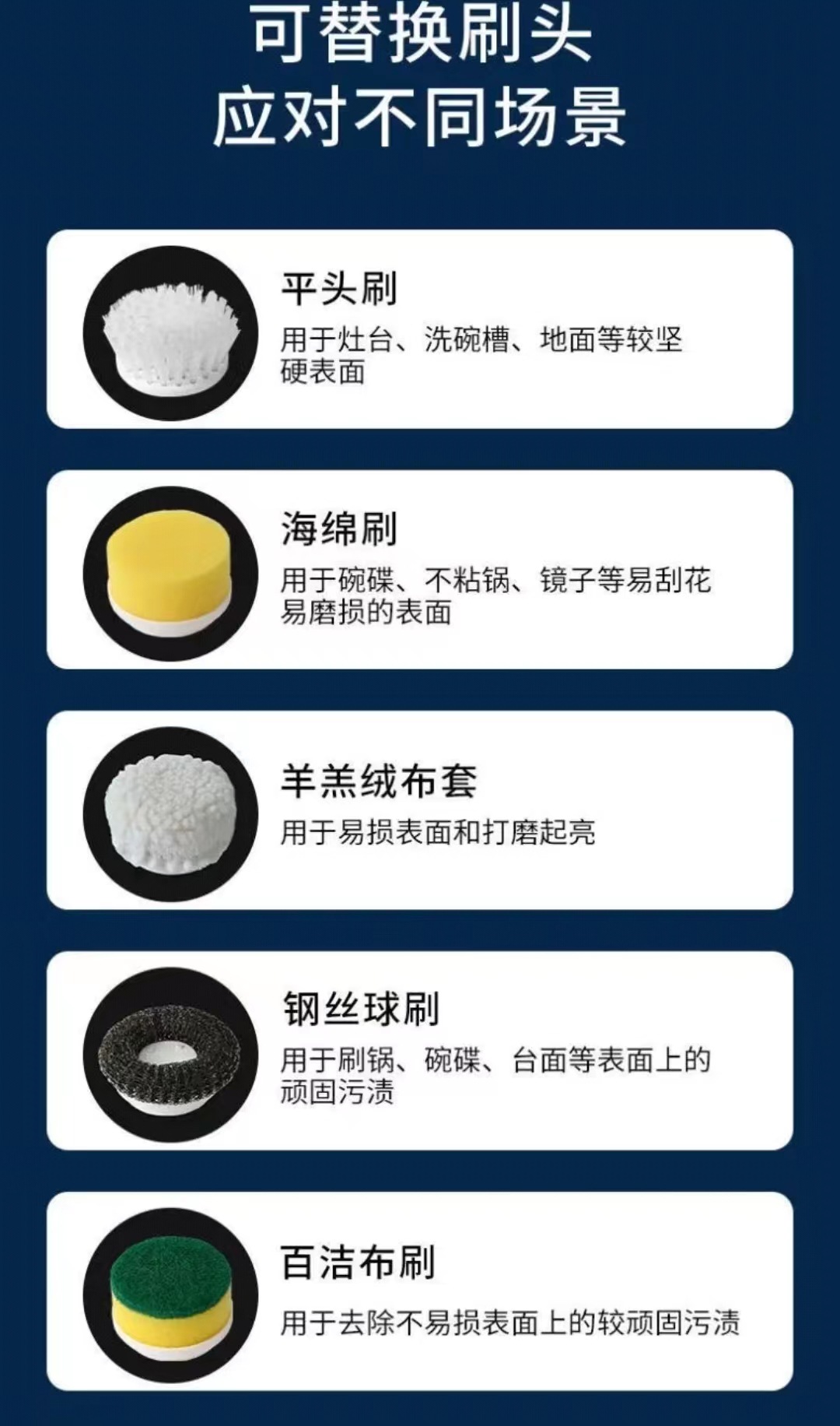 • 5개의 헤드가 있는 청소용 브러시 [기계 없음]