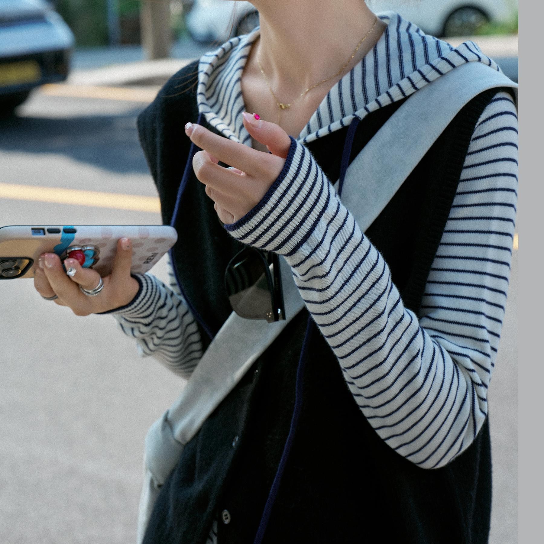 "스케치 워크샵" "Opelina" 가을 새 줄무늬 스웨터 후드 지퍼 니트 카디건스토어 가기