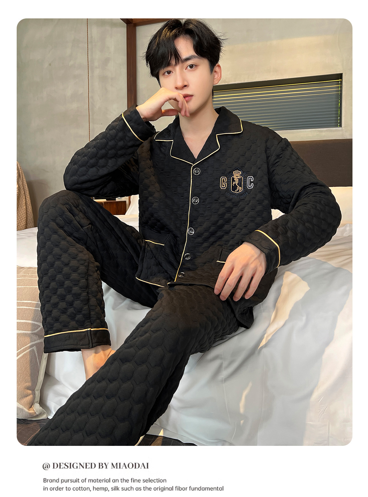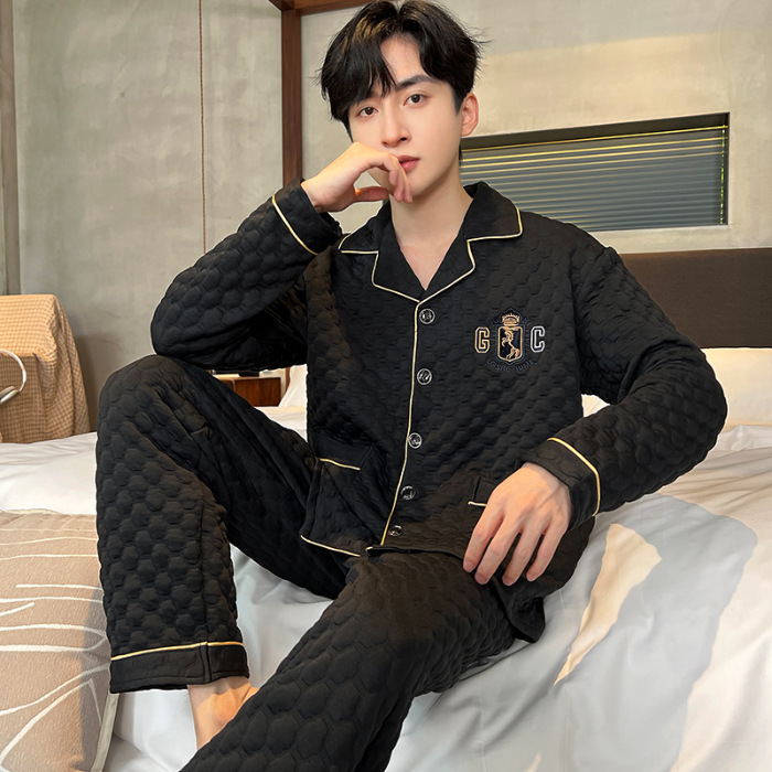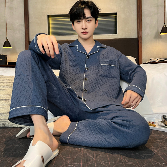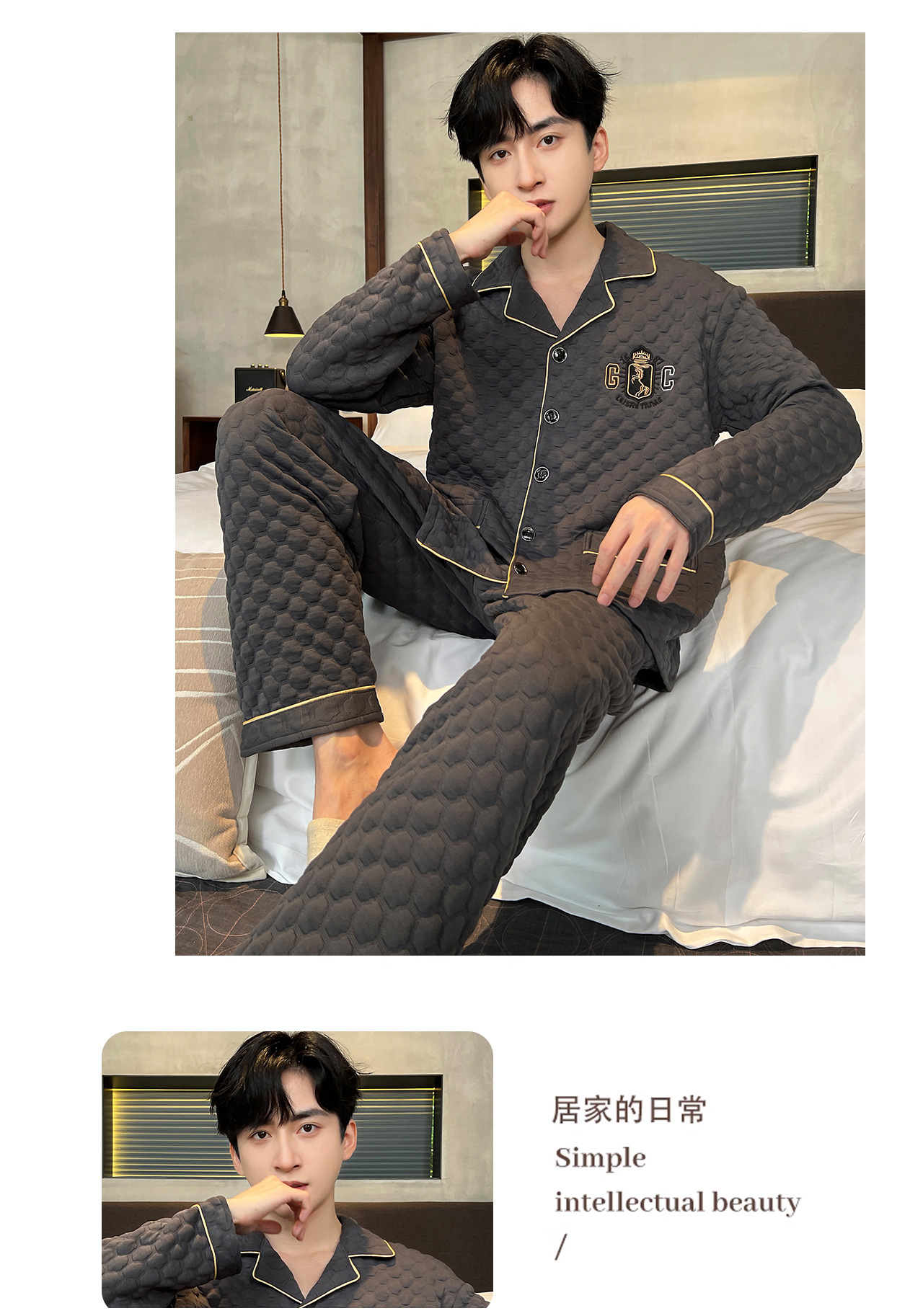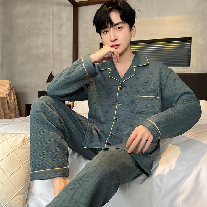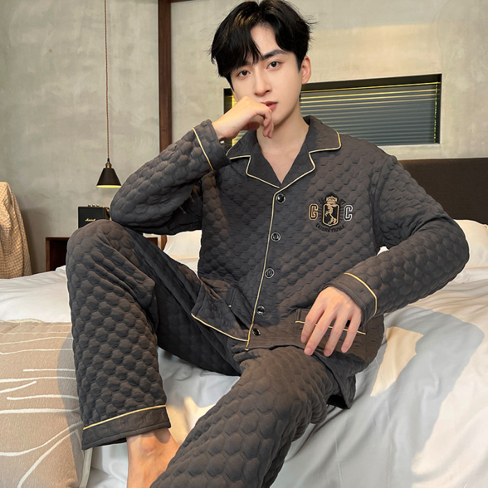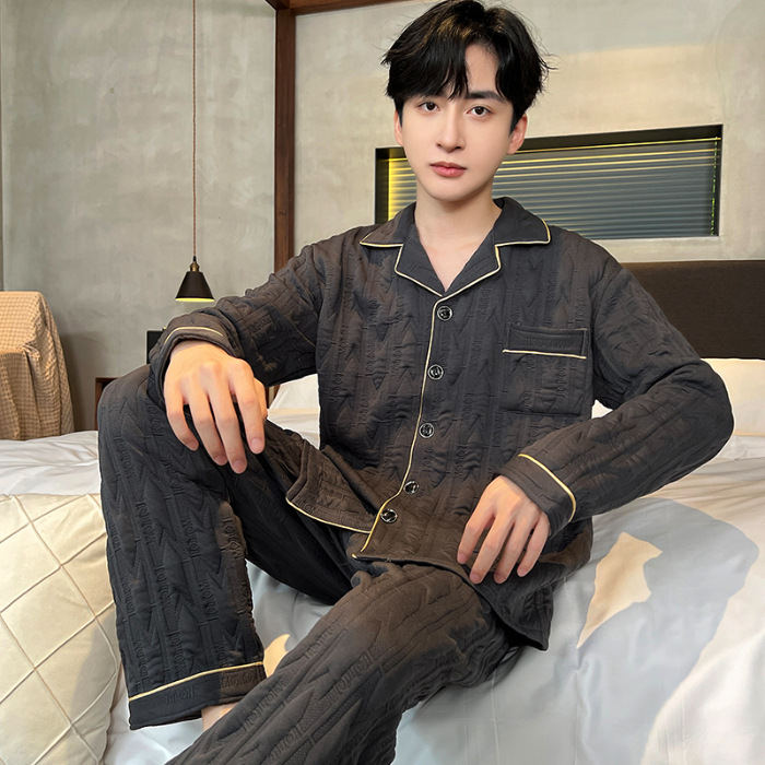 에어 코튼 파자마 남자의 가을과 겨울 두꺼운 샌드위치 따뜻한 카디건 긴팔 플러스 사이즈 아웃웨어 세트스토어 가기
