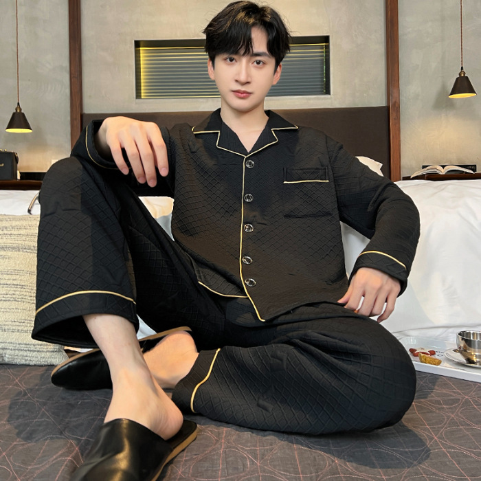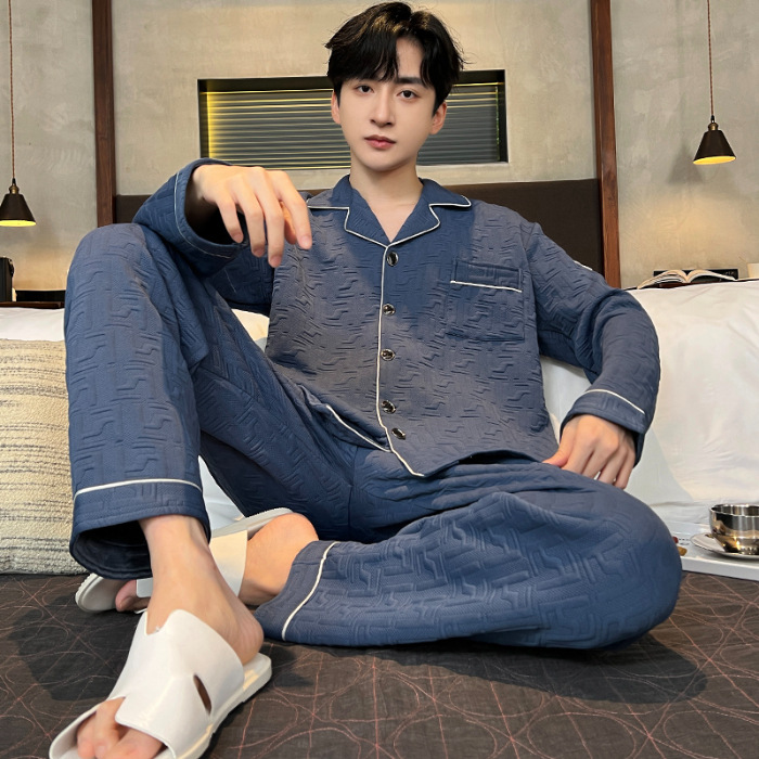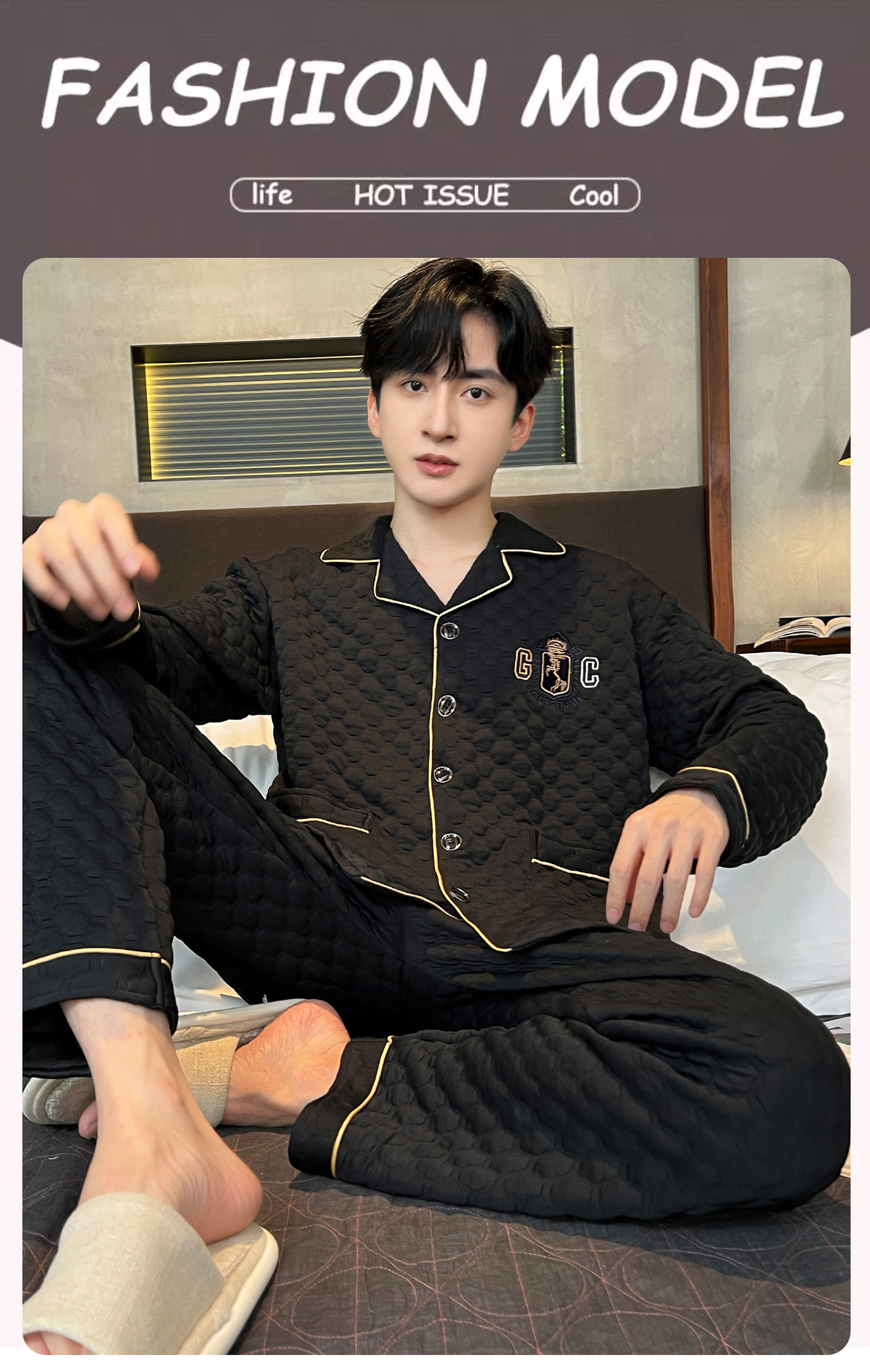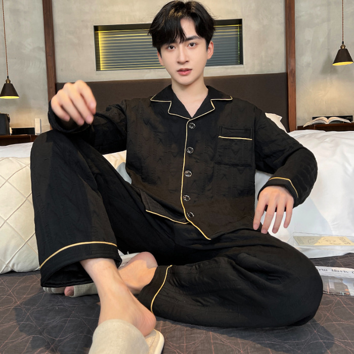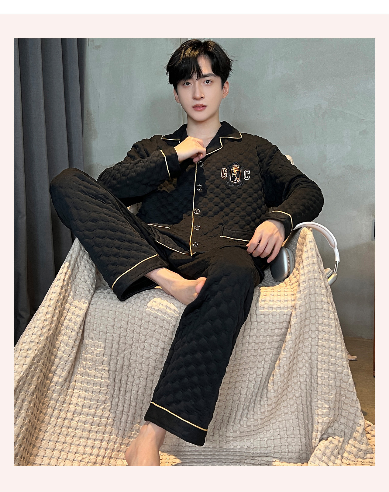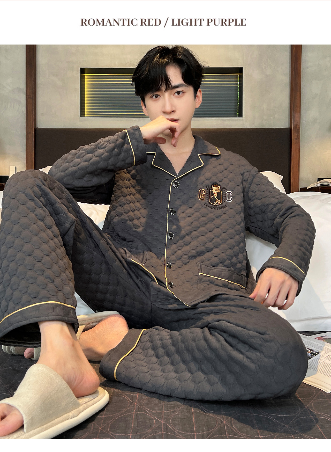 에어 코튼 파자마 남자의 가을과 겨울 두꺼운 샌드위치 따뜻한 카디건 긴팔 플러스 사이즈 아웃웨어 세트스토어 가기