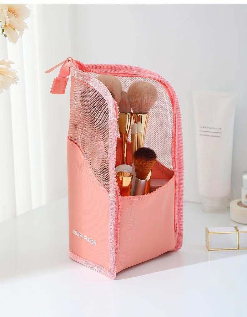 여행 화장품 가방 메쉬 수직 화장품 브러시 백 펜 저장 버킷 상자 대용량 휴대용 방진 보관 유캉스토어 가기