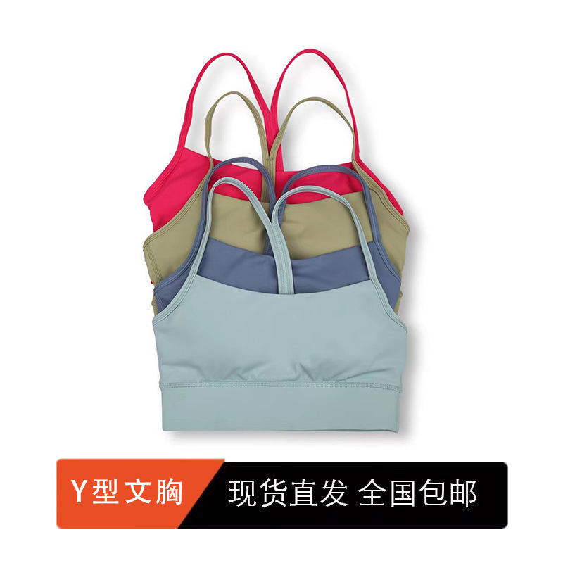 (재고 있음) 가슴 패드가 있는 여성용 스포츠 Y자형 조끼, 아름다운 등이 있는 섹시한 얇은 속옷, 피트니스 요가 탑 슬링