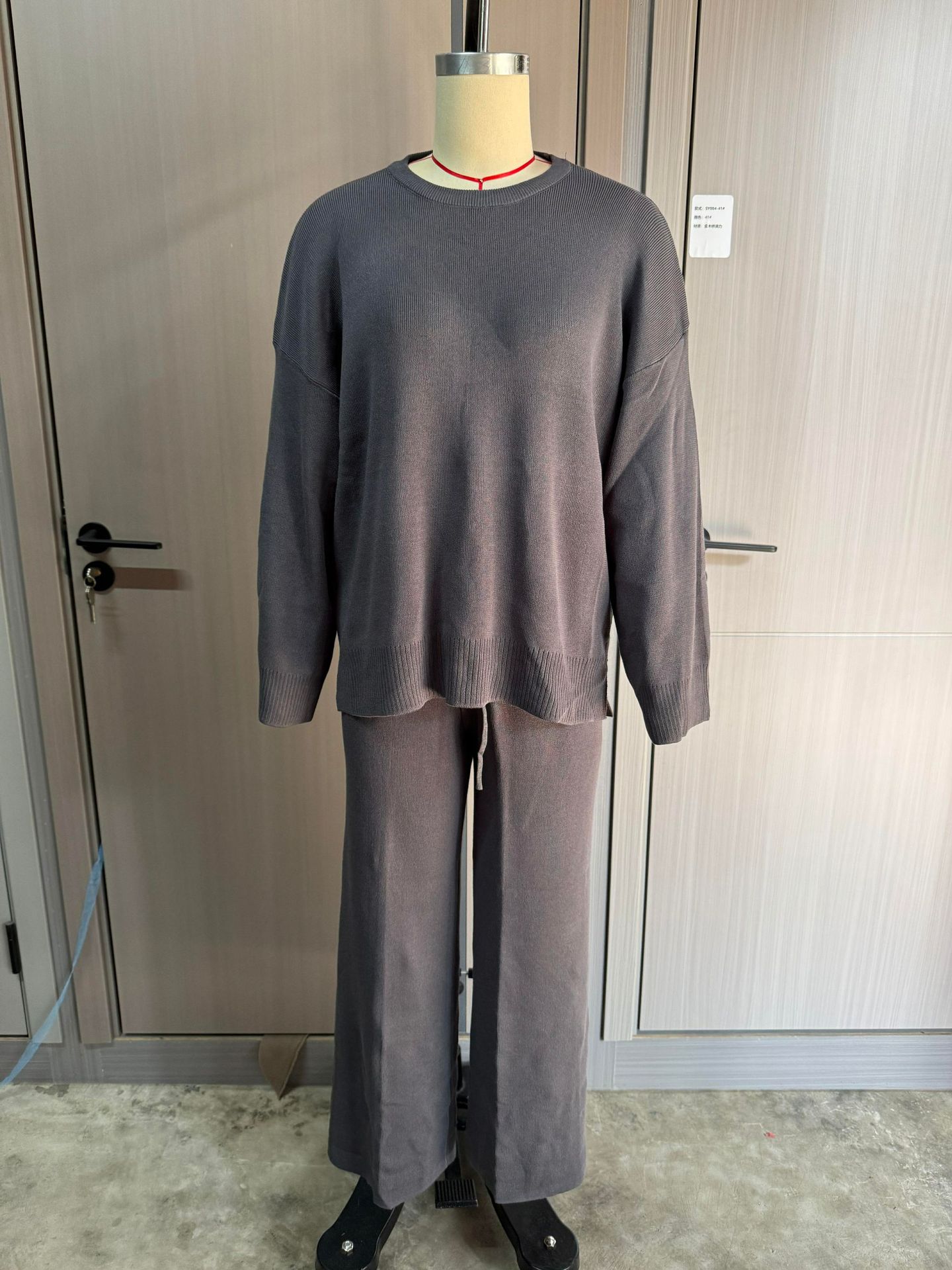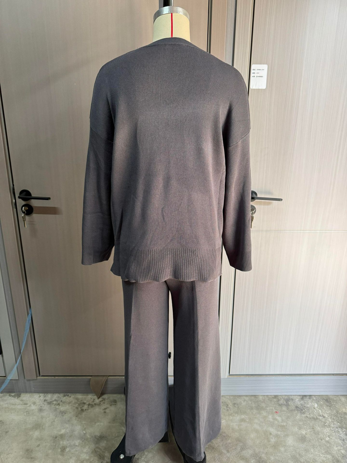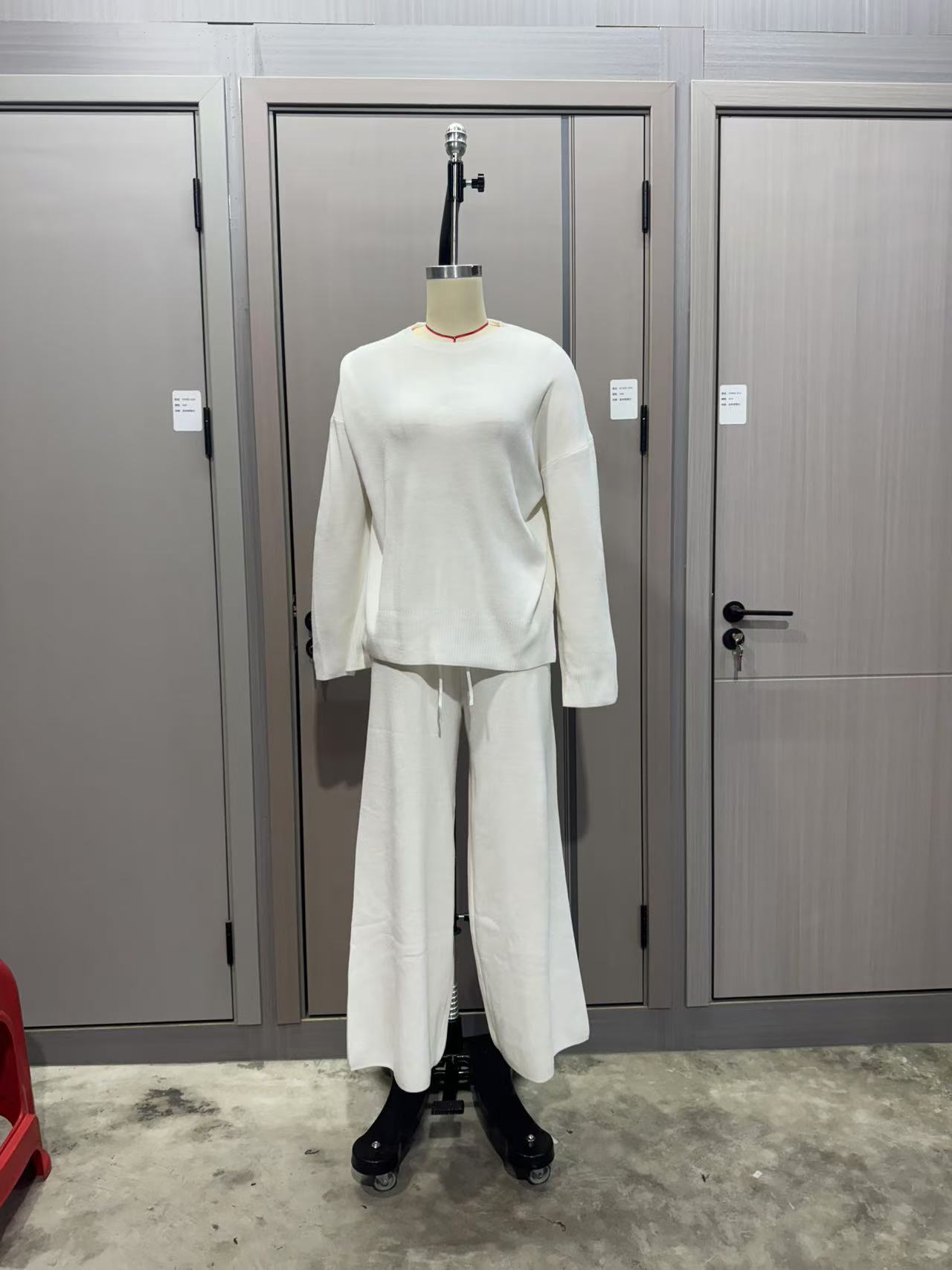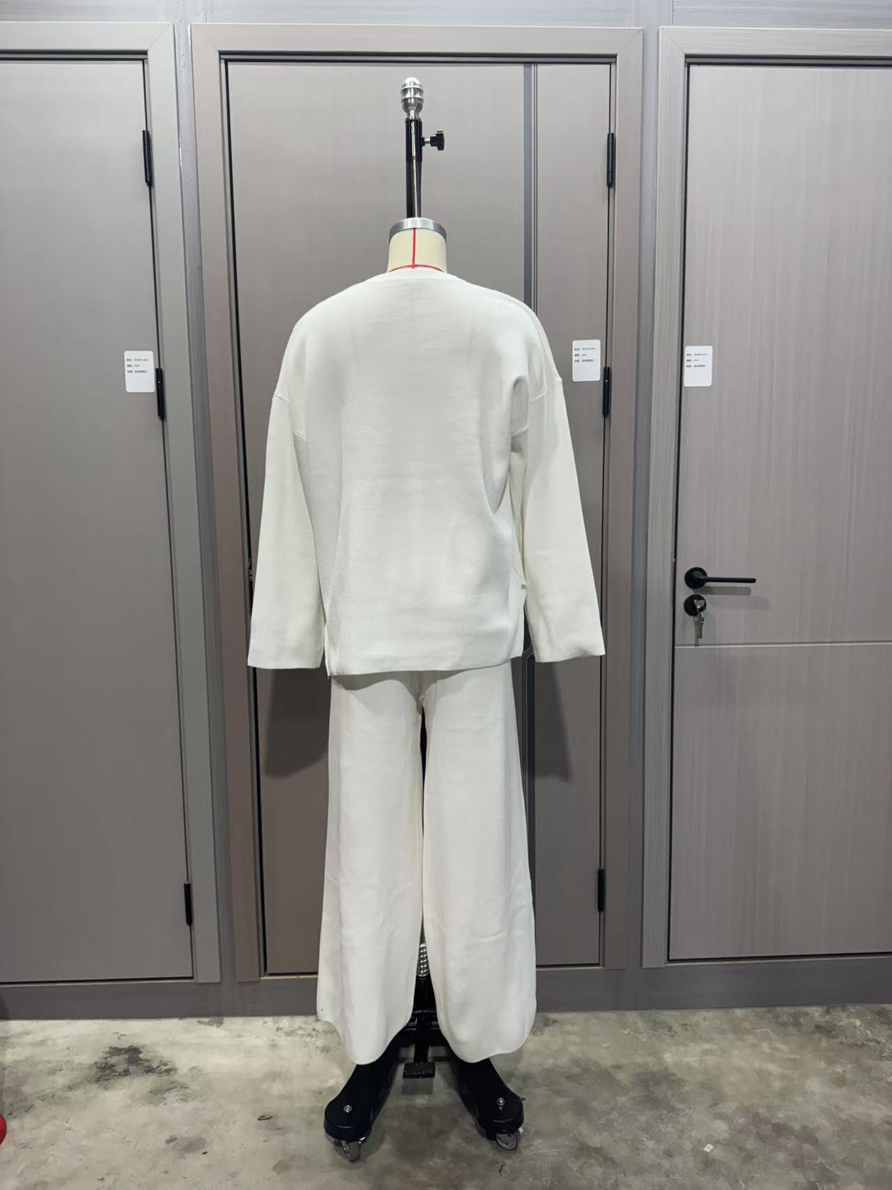 유럽 및 미국 무역 여성 의류 2025 봄 신상 솔리드 컬러 라운드 넥 패션 캐주얼 와이드 팬츠 스웨터 세트 여성용스토어 가기