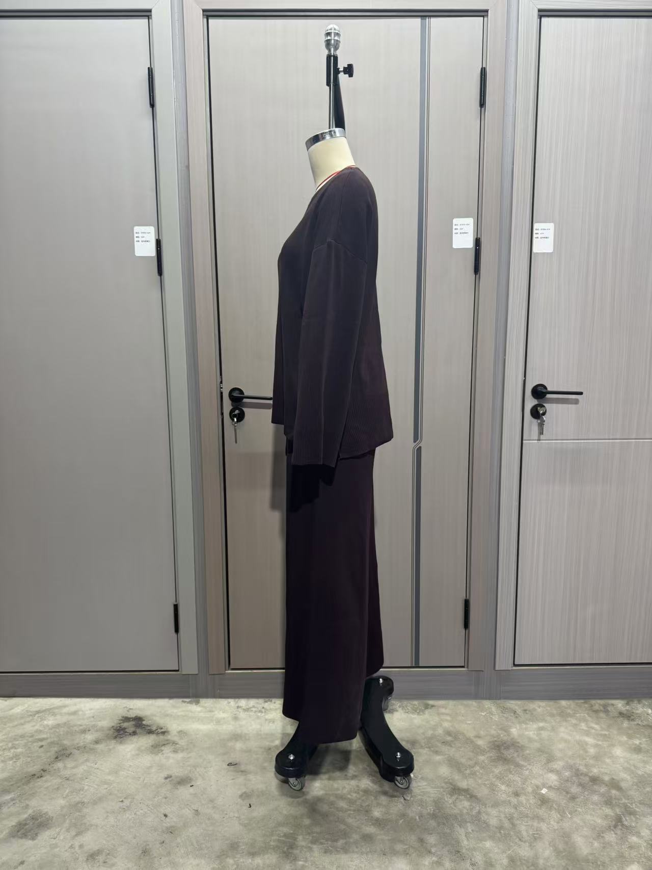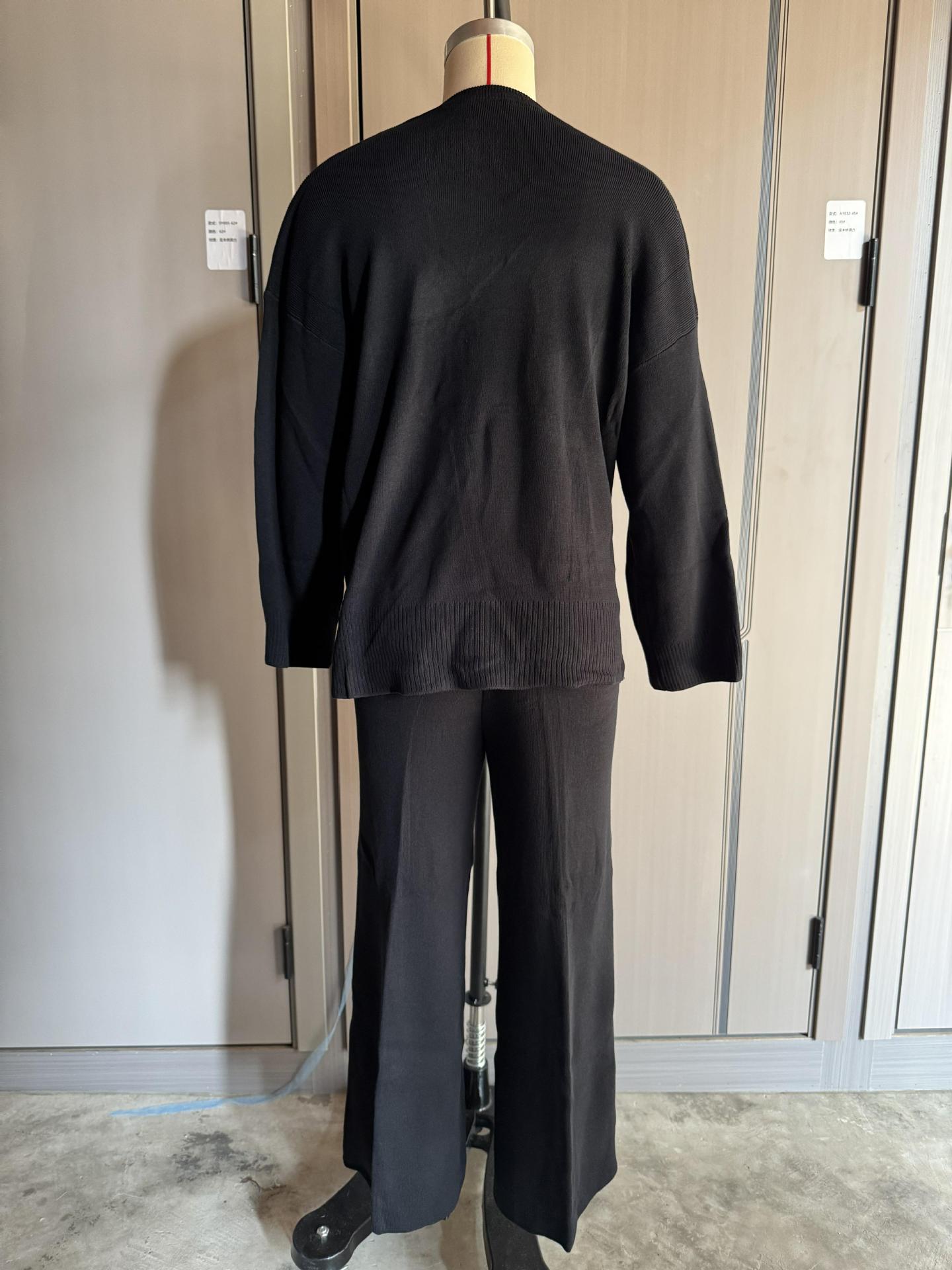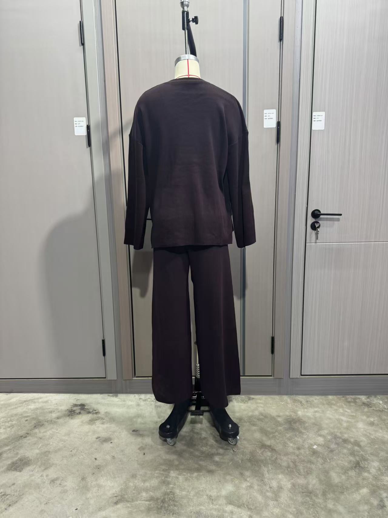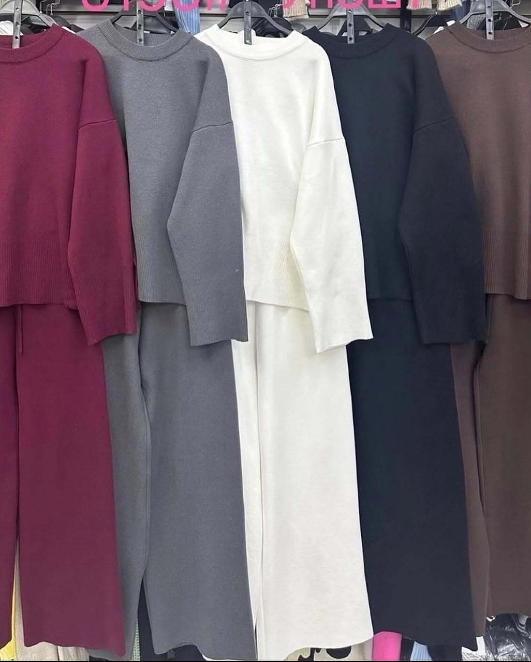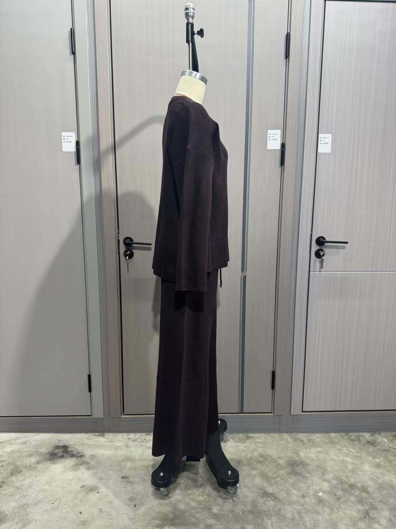 유럽 및 미국 무역 여성 의류 2025 봄 신상 솔리드 컬러 라운드 넥 패션 캐주얼 와이드 팬츠 스웨터 세트 여성용스토어 가기