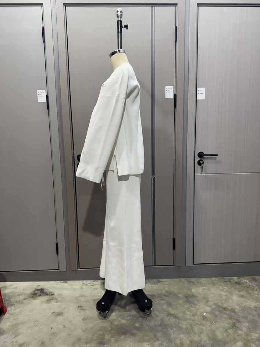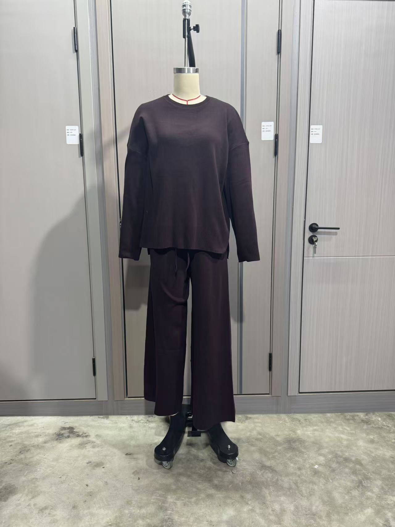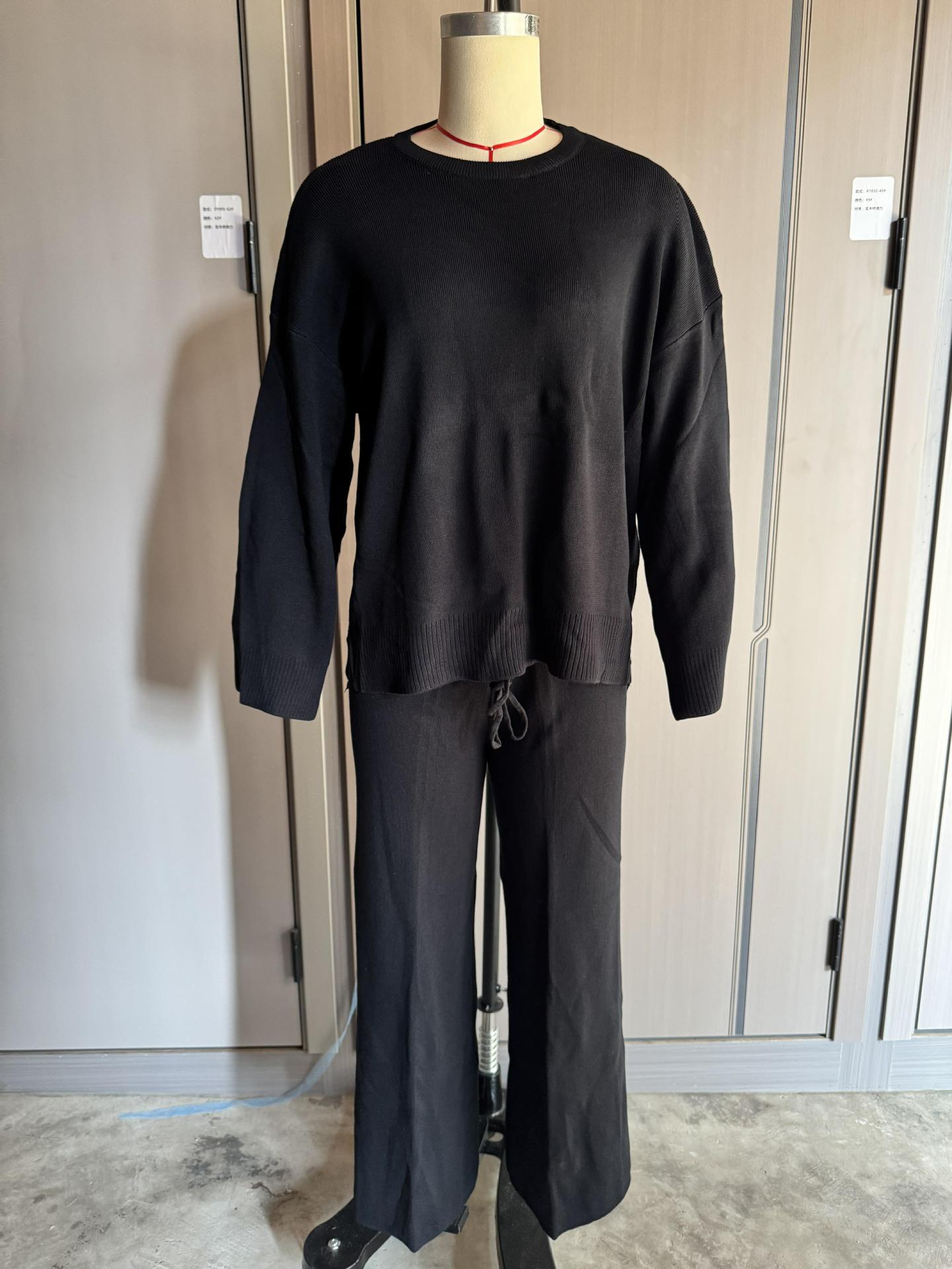 유럽 및 미국 무역 여성 의류 2025 봄 신상 솔리드 컬러 라운드 넥 패션 캐주얼 와이드 팬츠 스웨터 세트 여성용