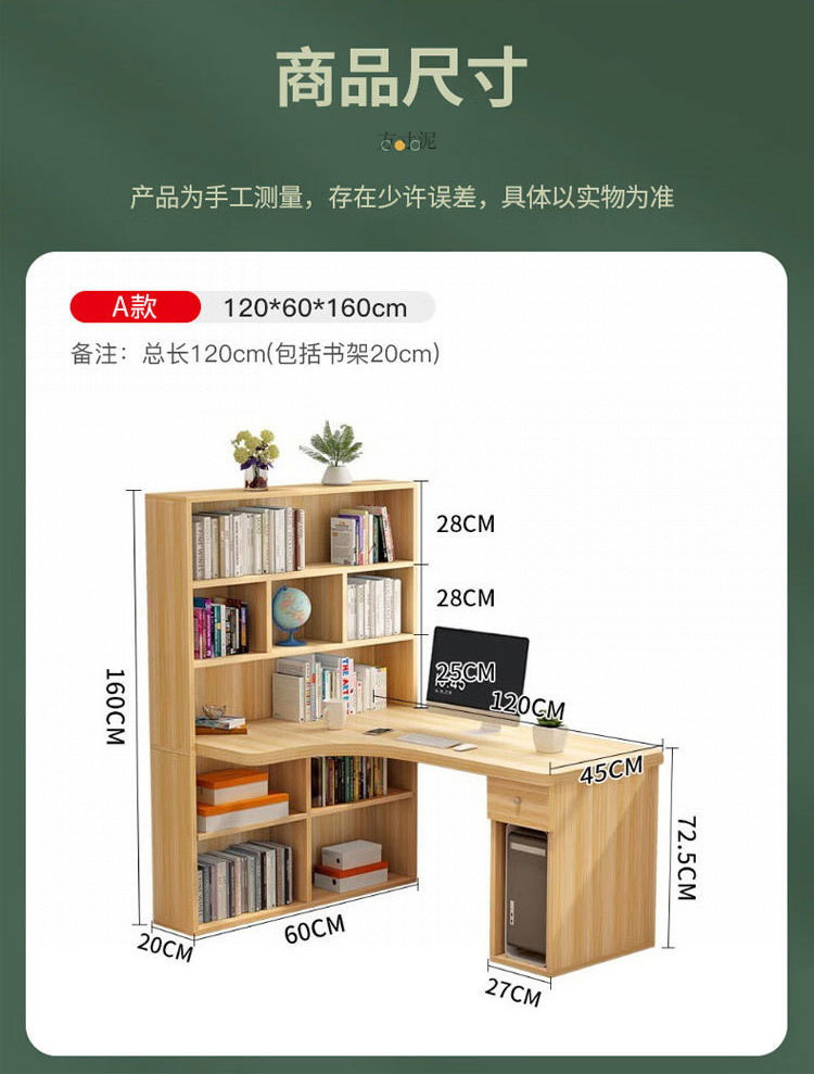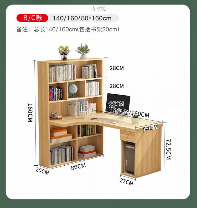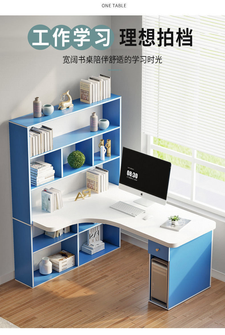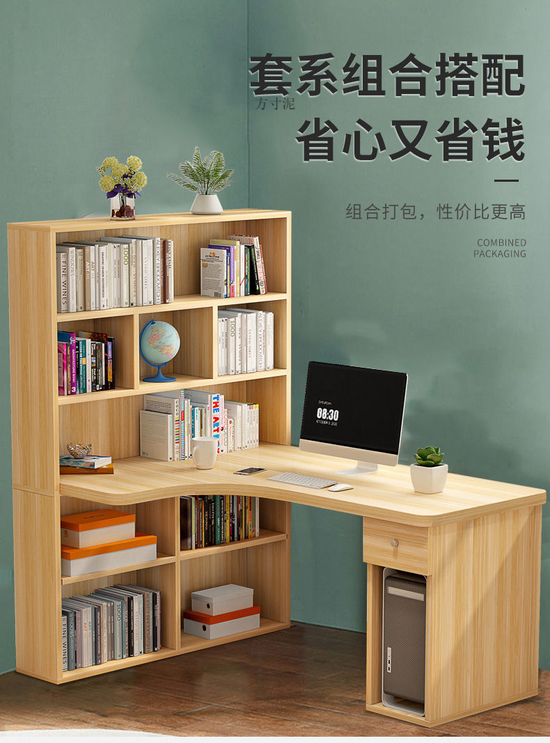 코너 데스크 데스크톱 컴퓨터 데스크 침실 솔리드 우드 보드 학생 책장 간단한 통합 학습 책상스토어 가기