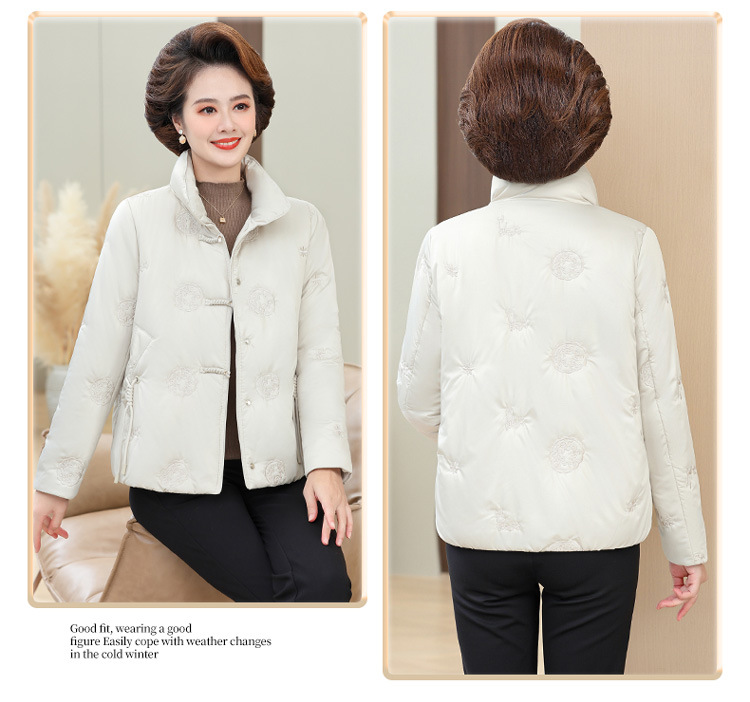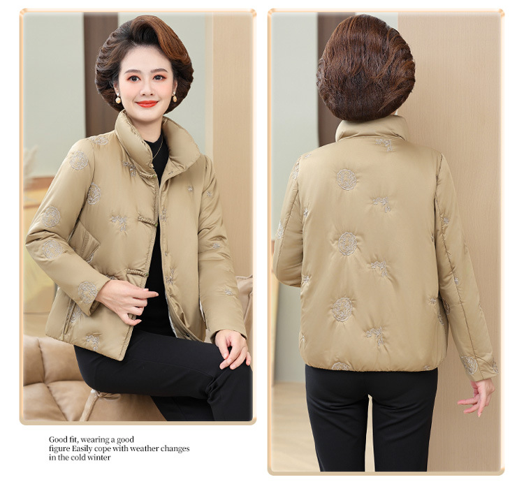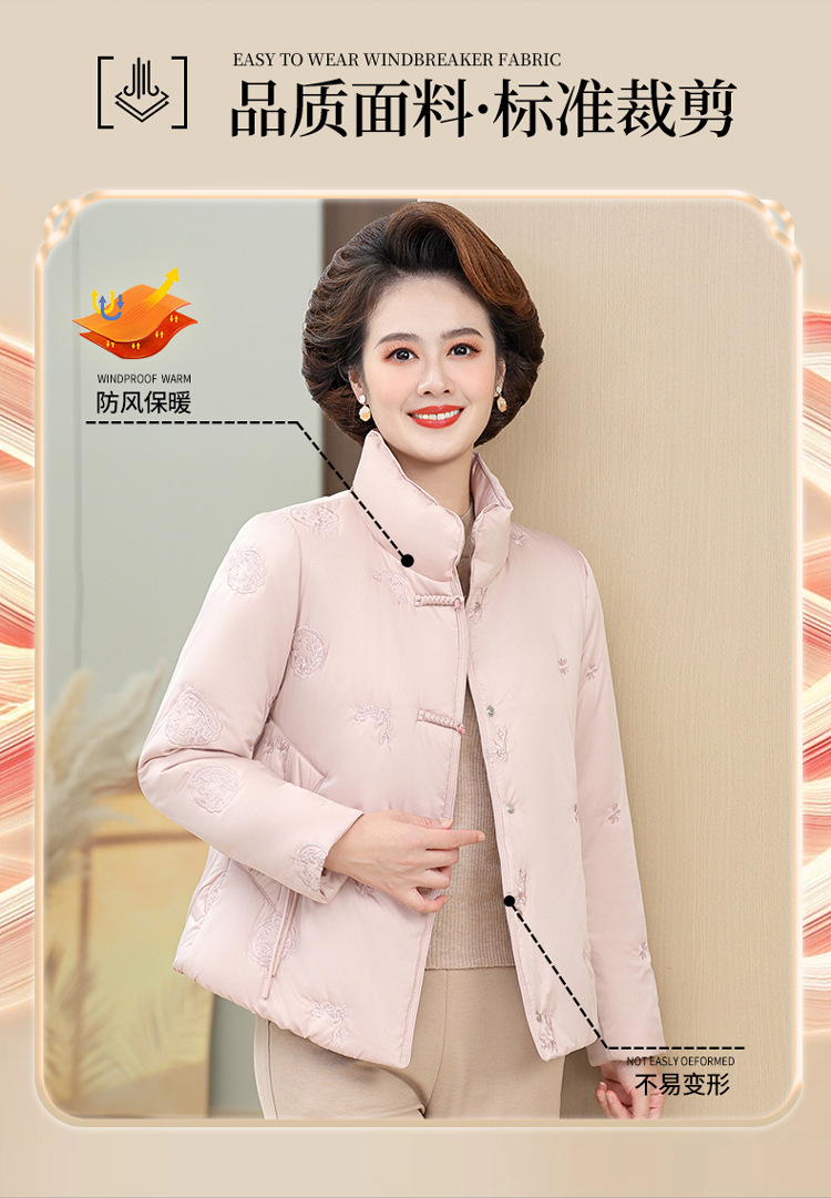 어머니 다운 재킷 짧은 여성의 겨울 새로운 두꺼운 따뜻한 중년 및 노인 여성의 오리 다운 국가 스타일 유행 코튼 재킷