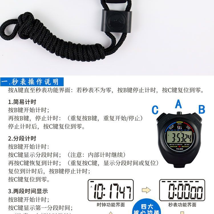 Yisheng 스톱워치 타이머 훈련 학생 피트니스 코치 심판 육상 스포츠 달리기 대형 스크린 시계 Hong Hong zhi스토어 가기