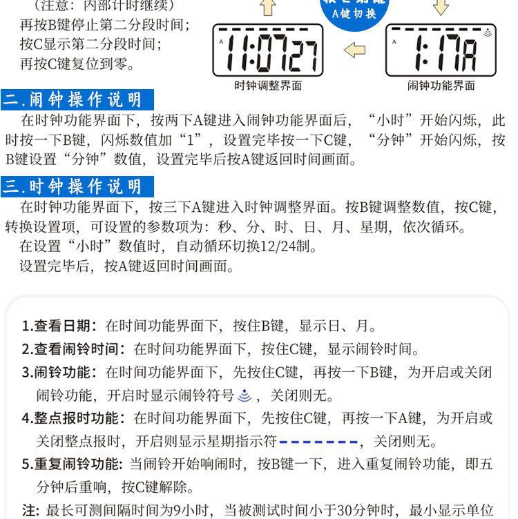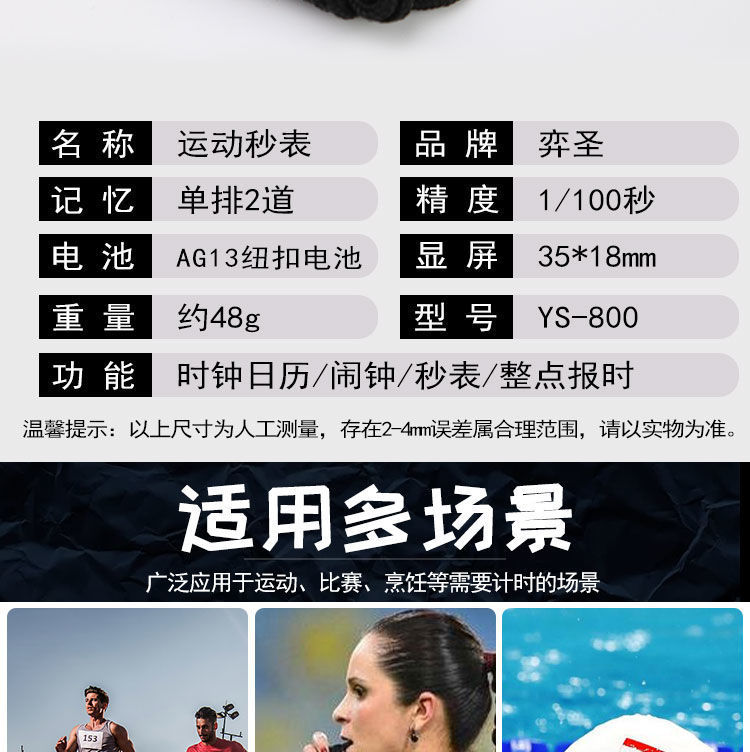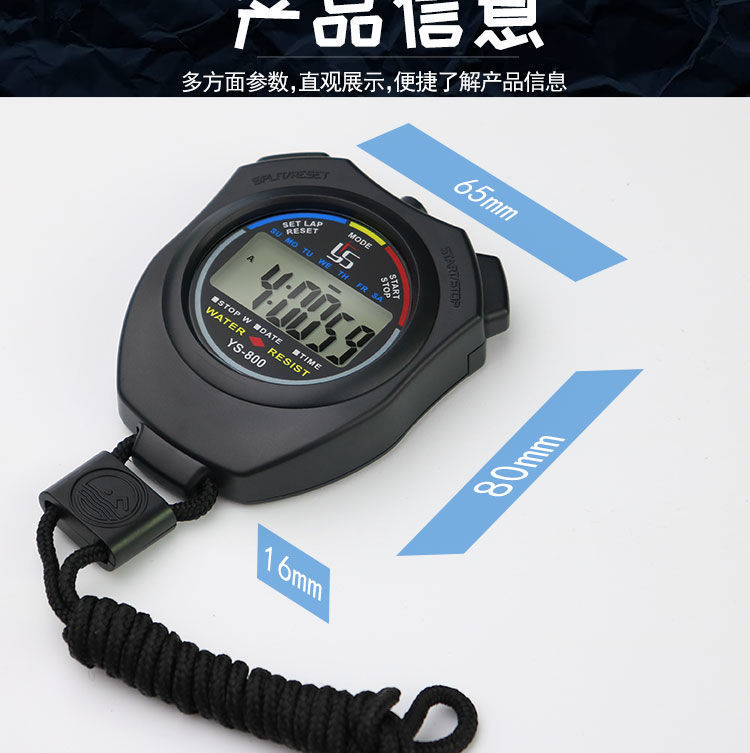 Yisheng 스톱워치 타이머 훈련 학생 피트니스 코치 심판 육상 스포츠 달리기 대형 스크린 시계 Hong Hong zhi