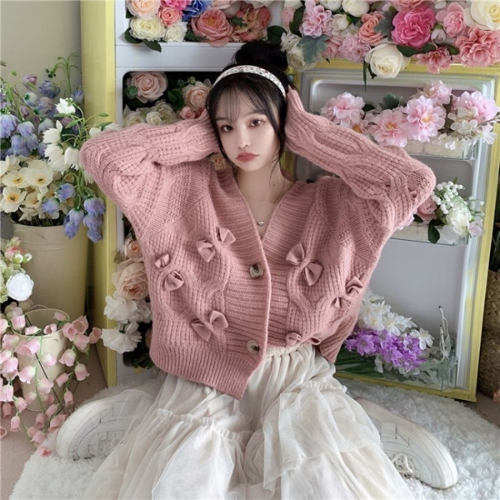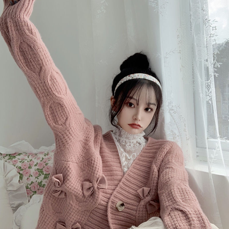 가을 겨울 한국 스타일 부드러운 스타일 스웨터 코트 여성 달콤한 디자인 센스 니쉬 새로운 스타일 니트 카디건