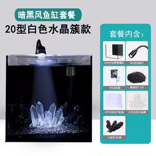어두운 바람 크리스탈 물고기 탱크 풍경 세트 Dou 물고기 탱크 조용한 창조적 인 데스크탑 수족관 물 무료 슈퍼 화이트 물고기 탱크스토어 가기