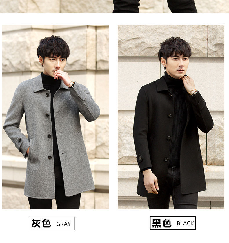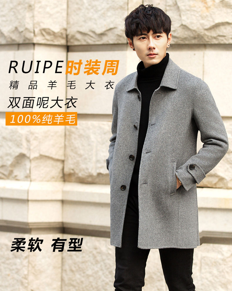 RUIPE 양면 캐시미어 코트 남성용 중간 길이 라펠 울 겨울 캐주얼 스타일 윈드브레이커스토어 가기