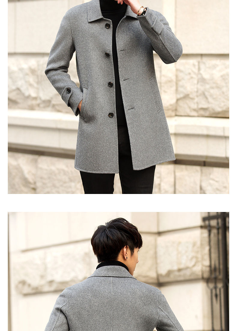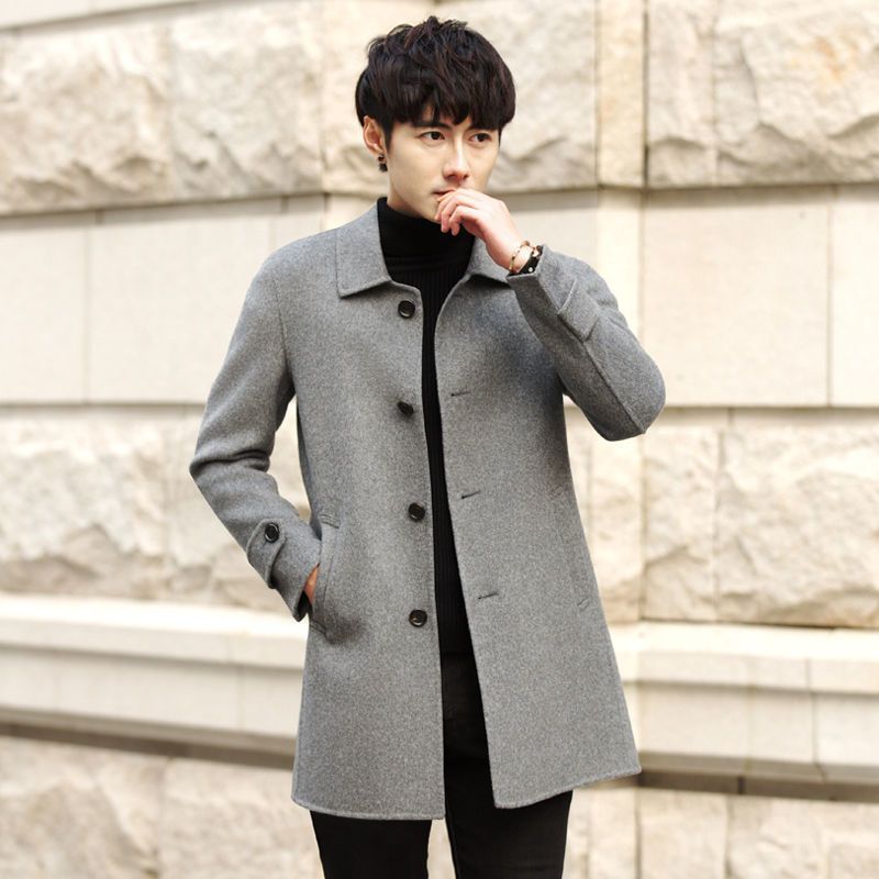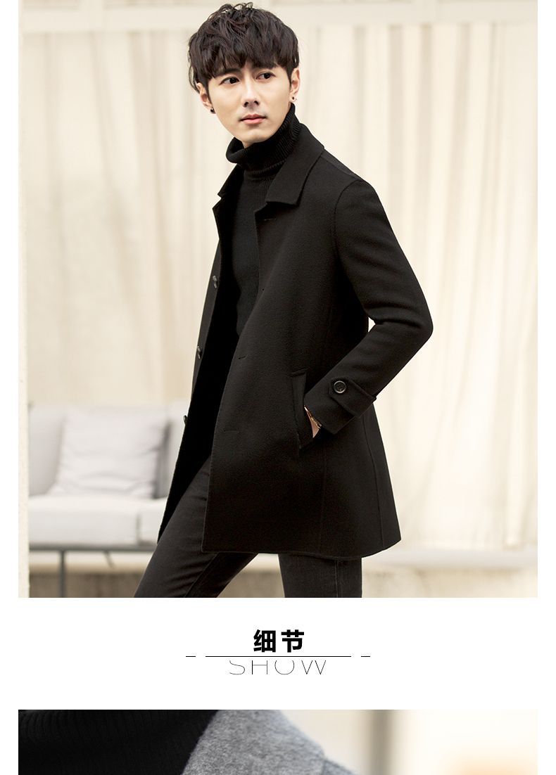 RUIPE 양면 캐시미어 코트 남성용 중간 길이 라펠 울 겨울 캐주얼 스타일 윈드브레이커