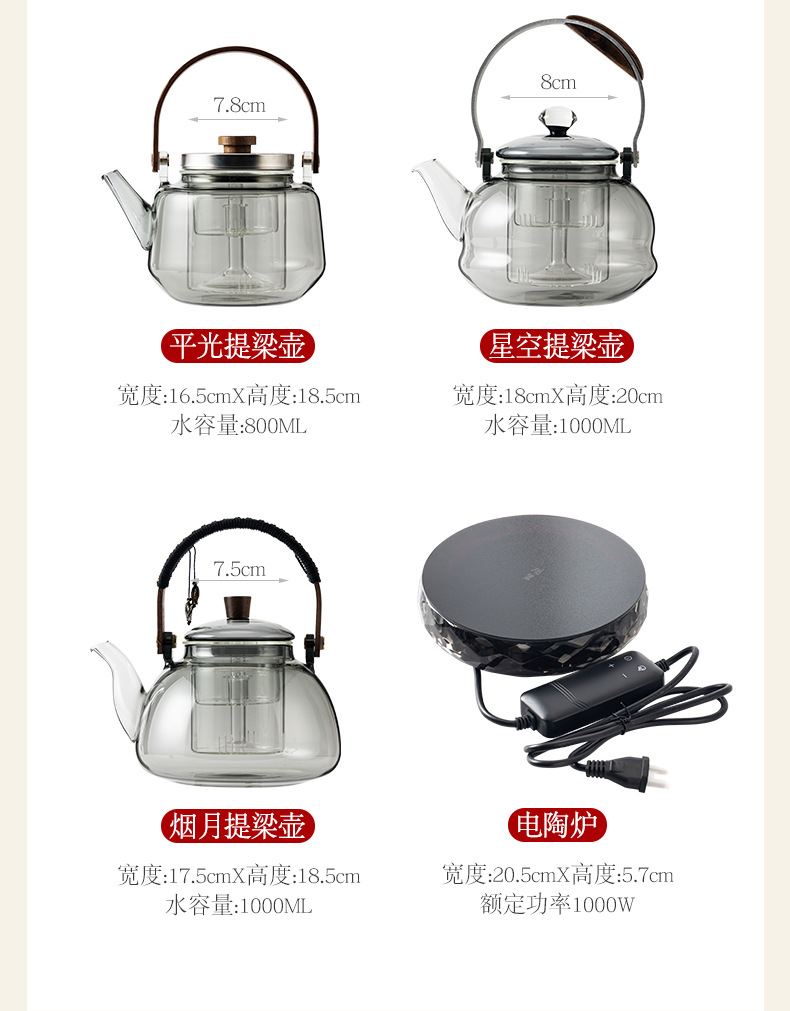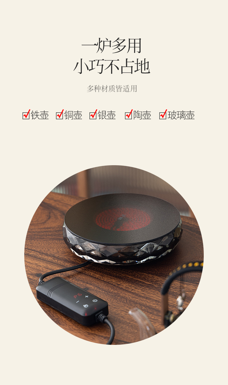 • 반달 리프트 찻주전자 + 관측 원형 크리스탈 전기 세라믹 스토브