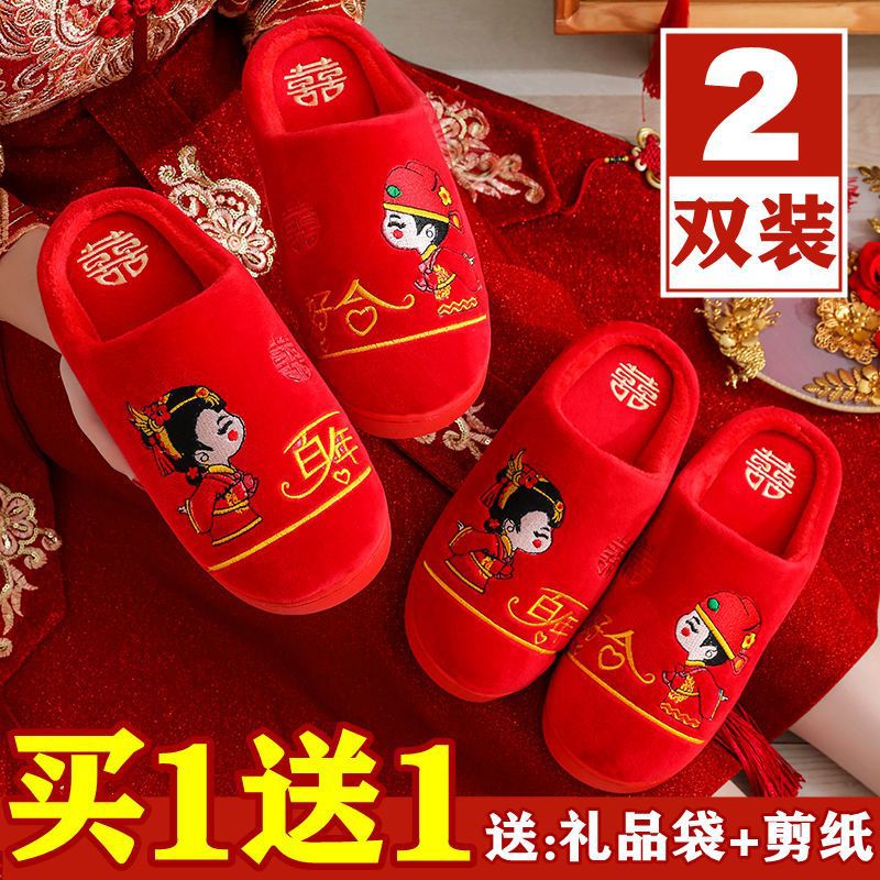 겨울 웨딩 슬리퍼 신부와 신랑 아침 가운 축제 웨딩 커플 웨딩 슈즈 홈 면 슬리퍼 유캉의 빨간 쌍