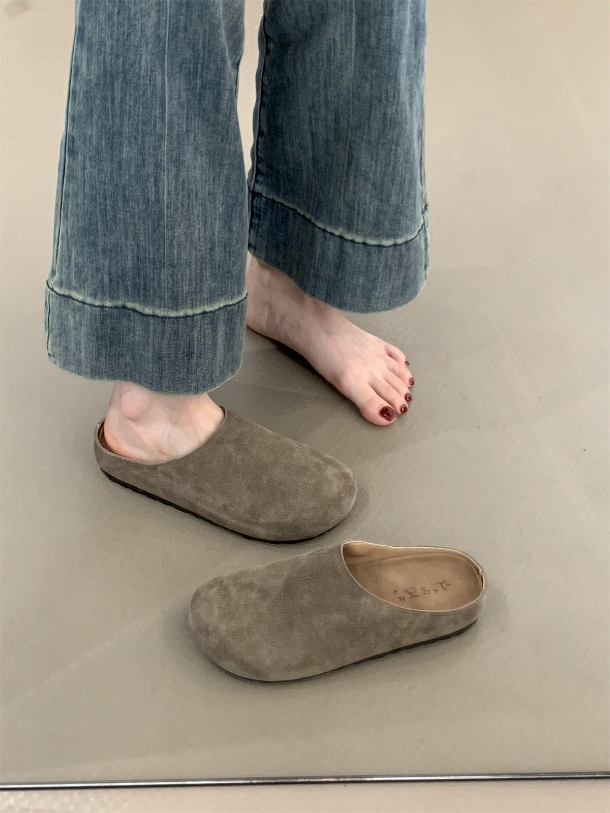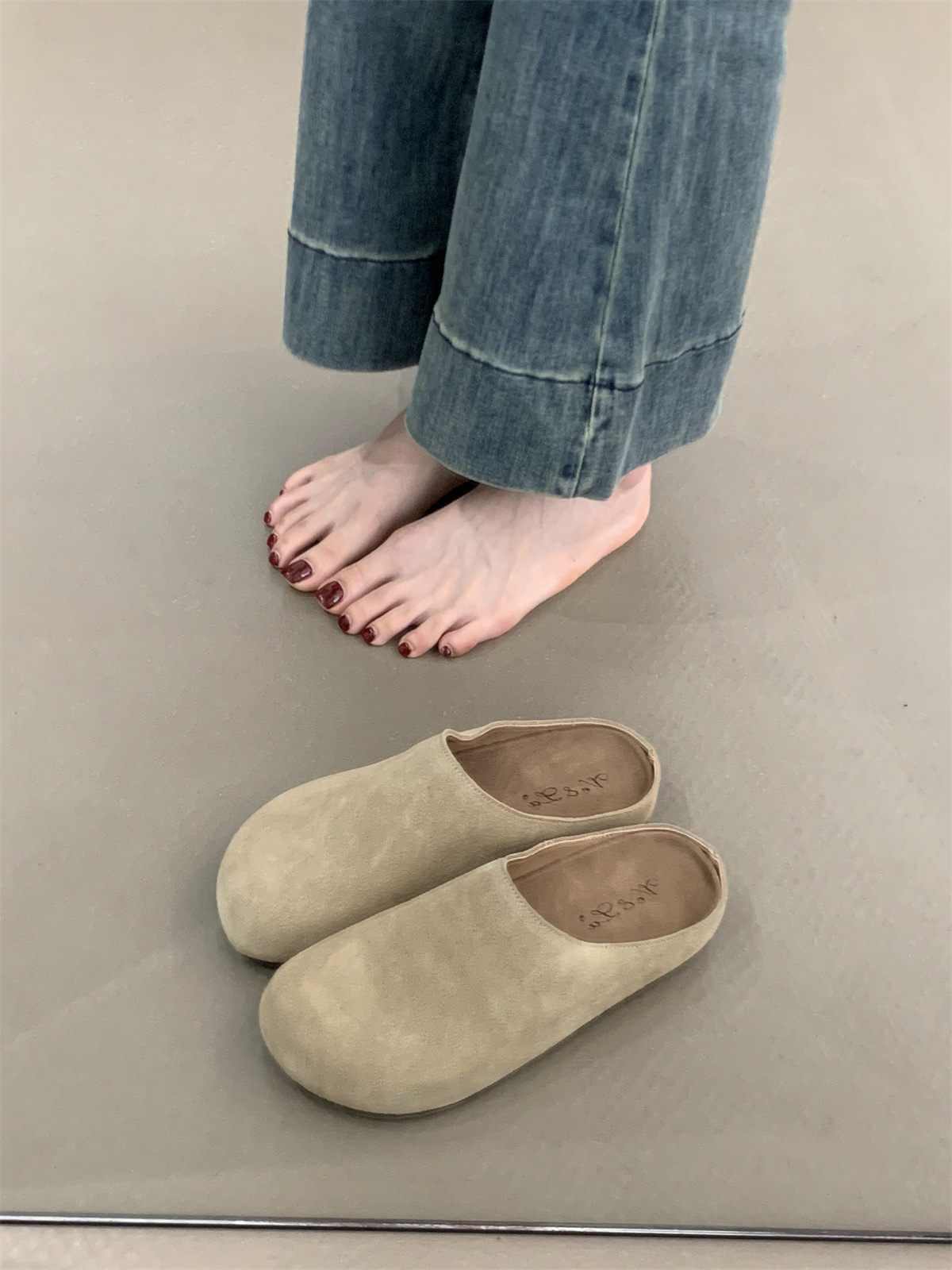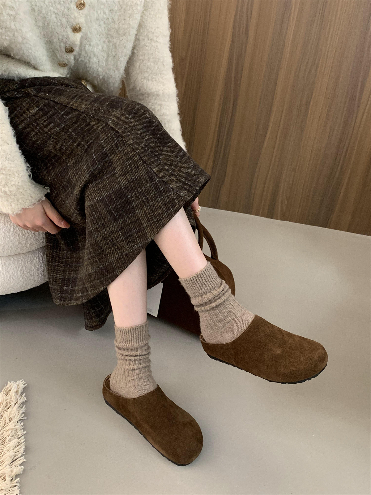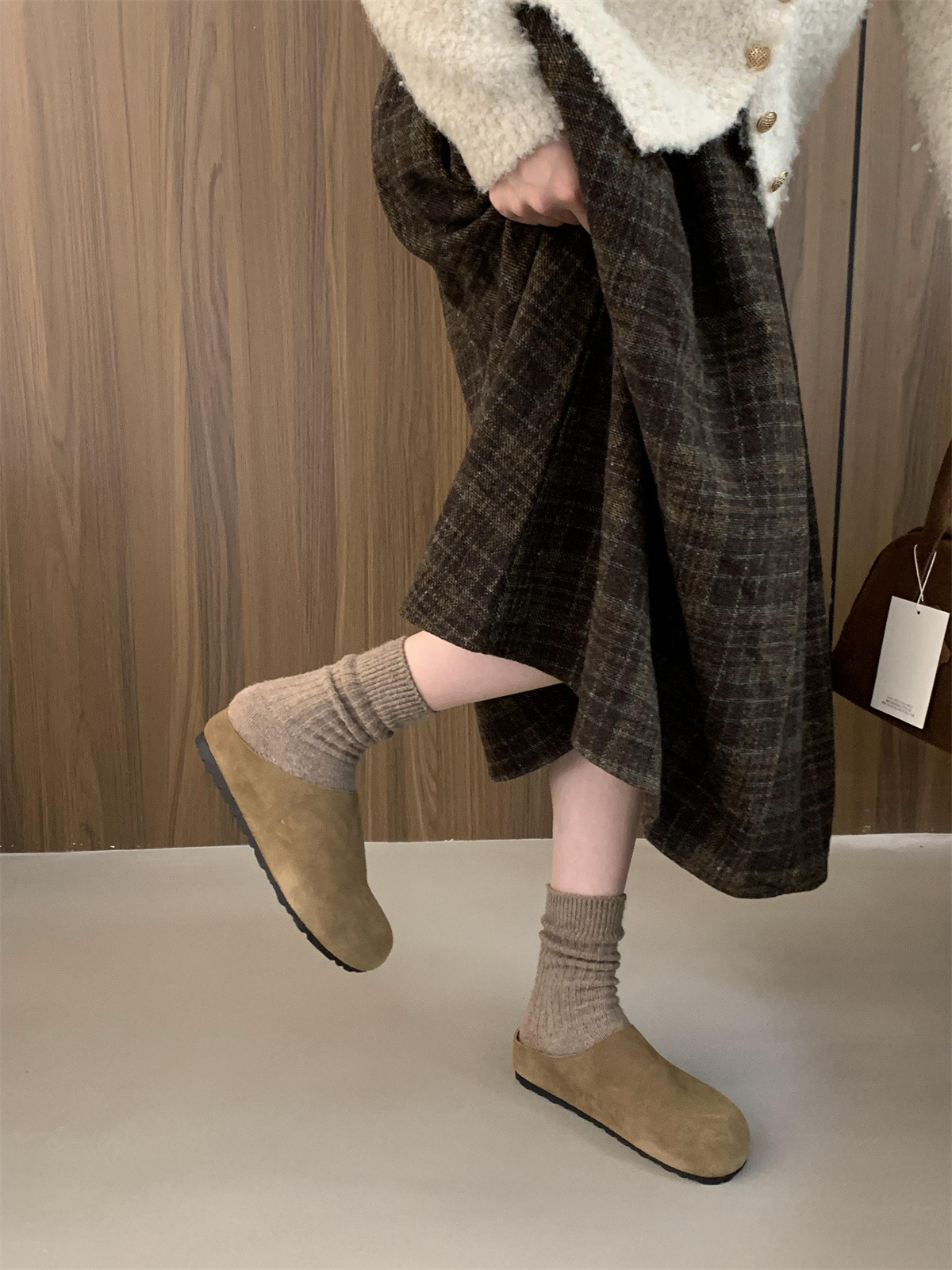 정품 가죽 내부 높이 증가 두꺼운 밑창 Birkenan 신발 여성의 가을 및 겨울 새로운 모리 스타일 레트로 미운 귀여운 큰 Toe Baotou 하프 슬리퍼스토어 가기