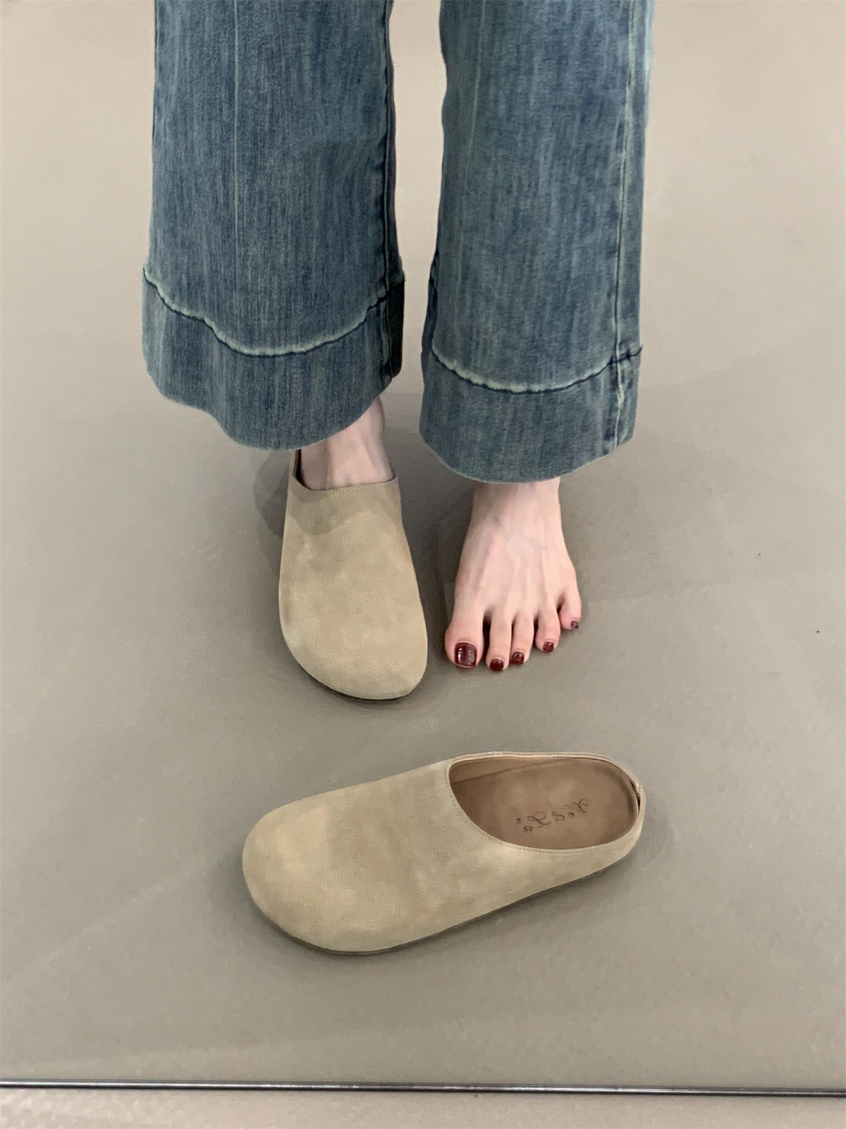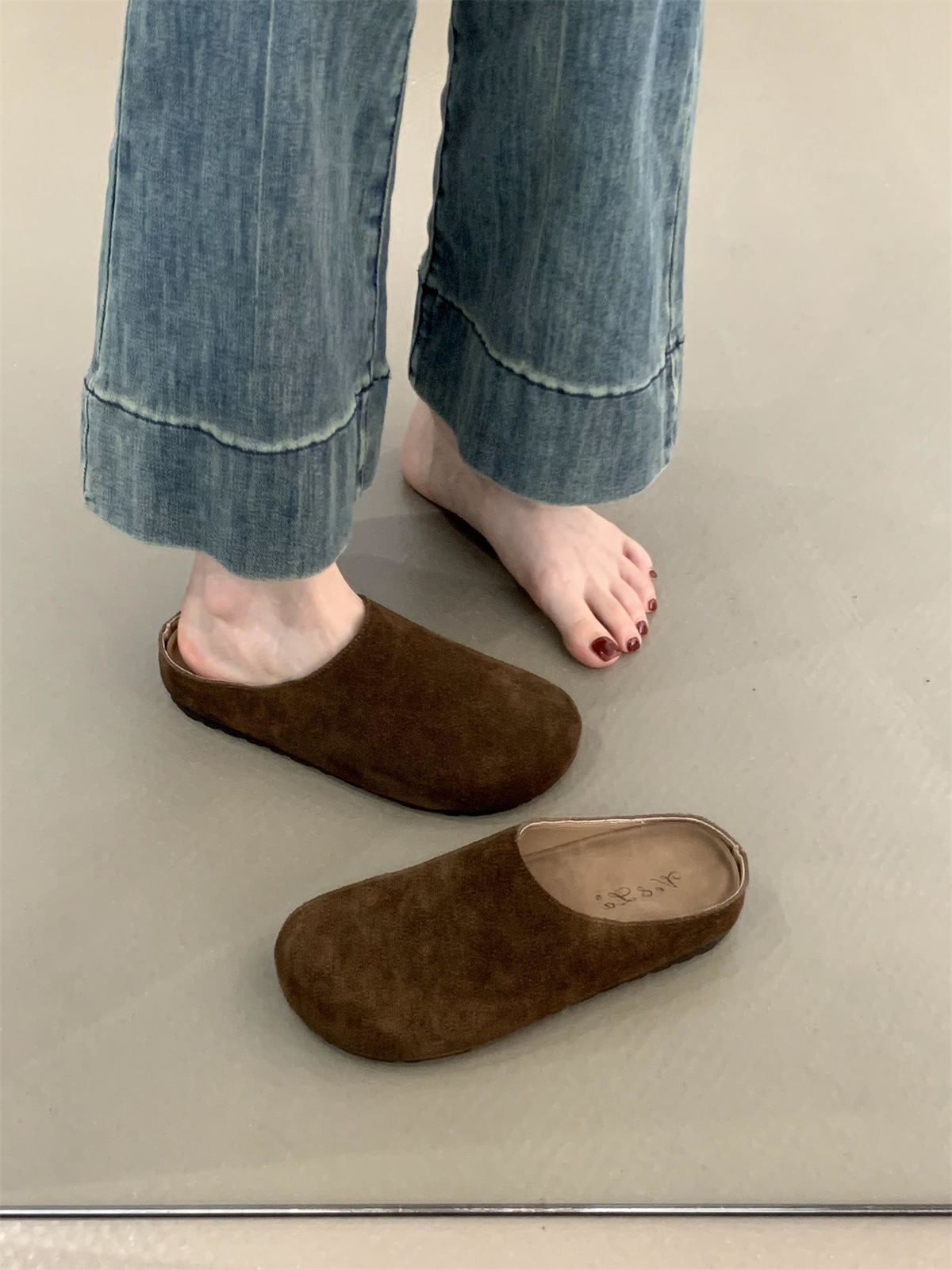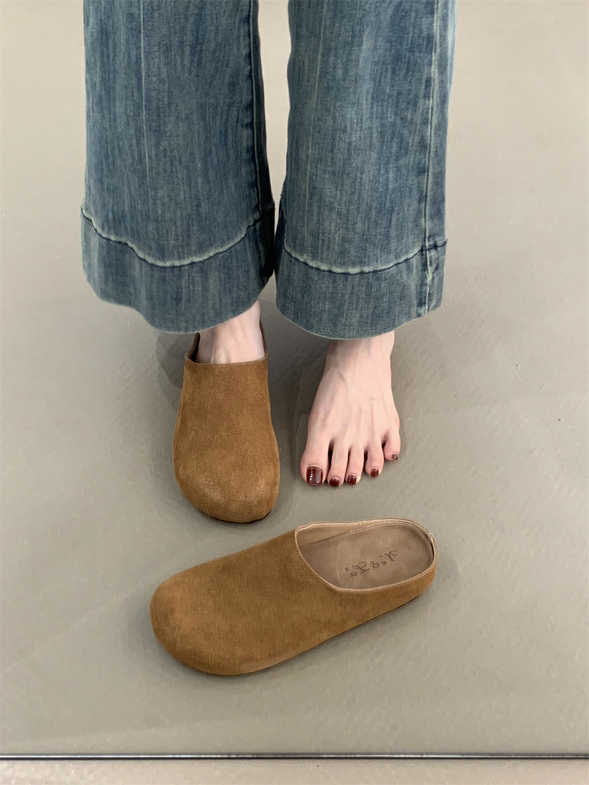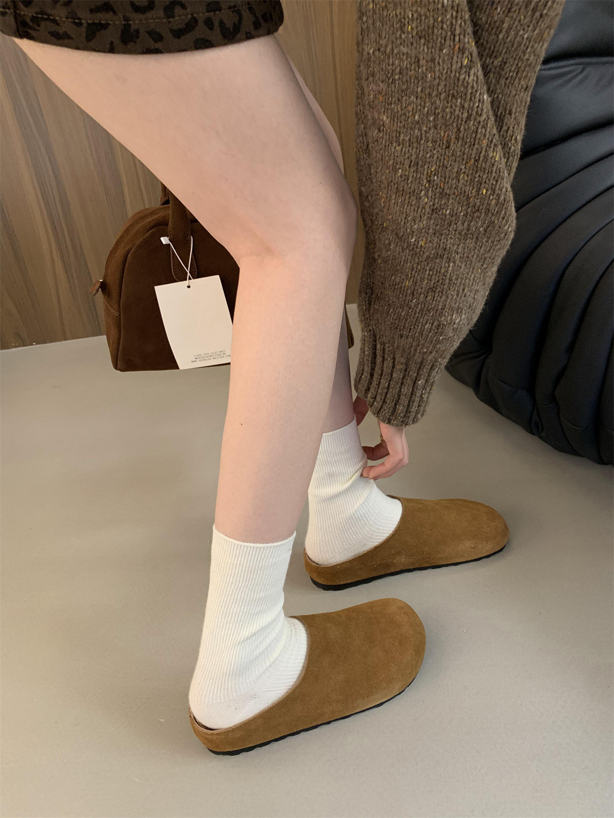 정품 가죽 내부 높이 증가 두꺼운 밑창 Birkenan 신발 여성의 가을 및 겨울 새로운 모리 스타일 레트로 미운 귀여운 큰 Toe Baotou 하프 슬리퍼스토어 가기