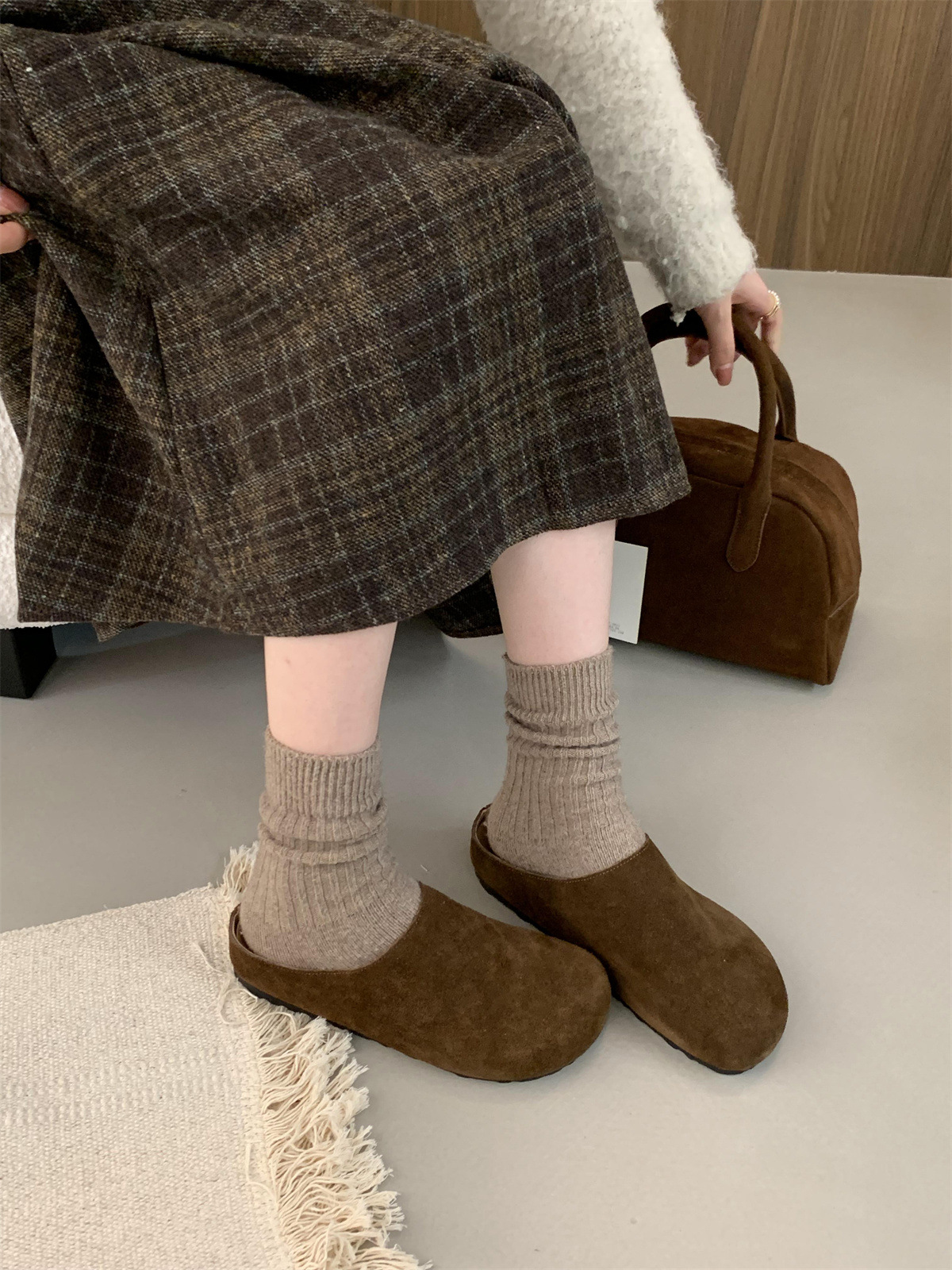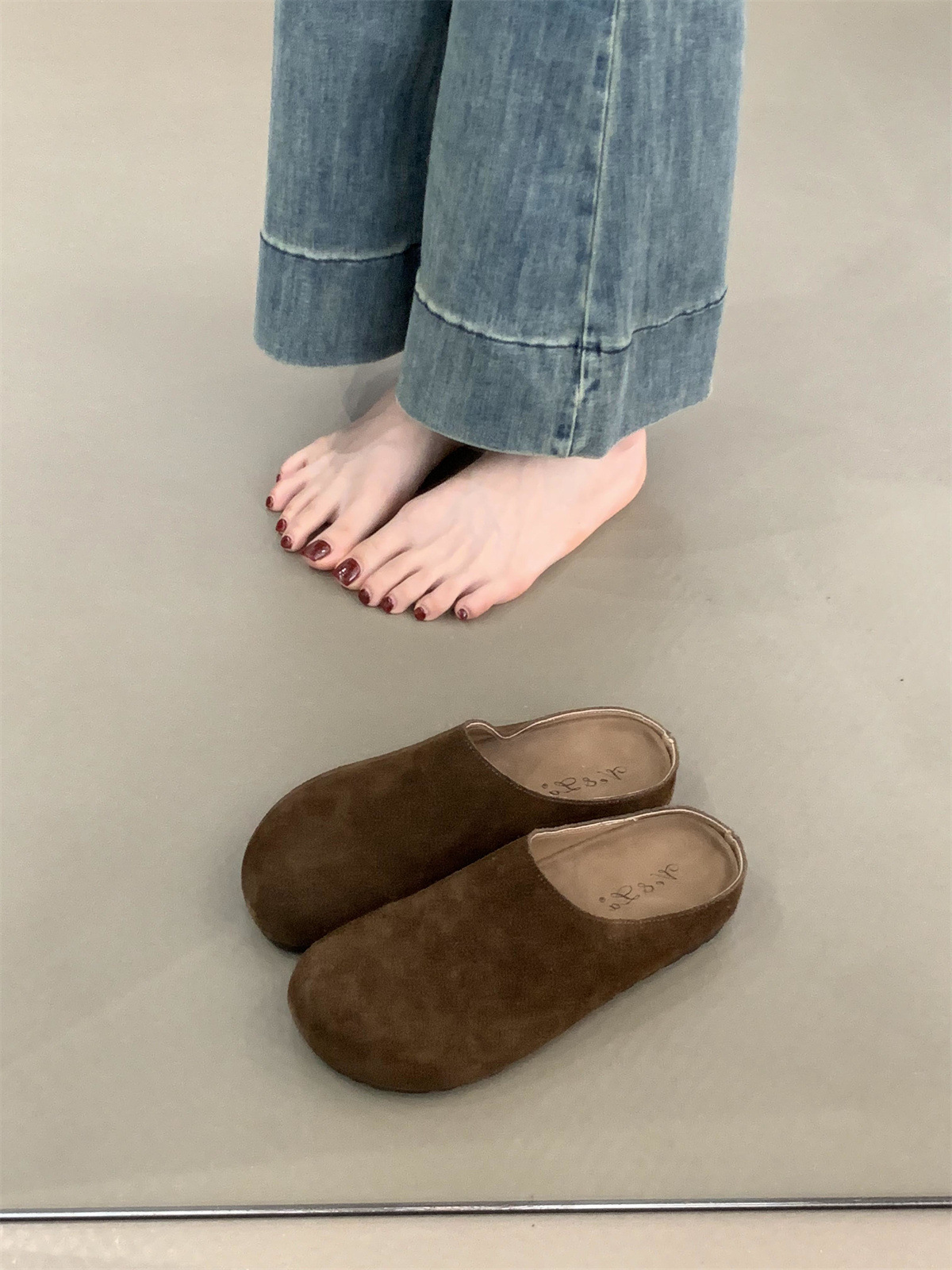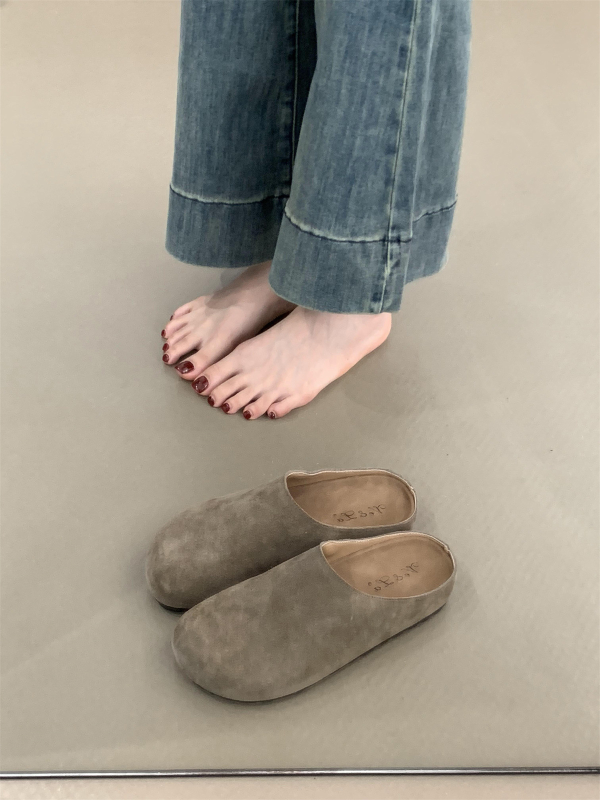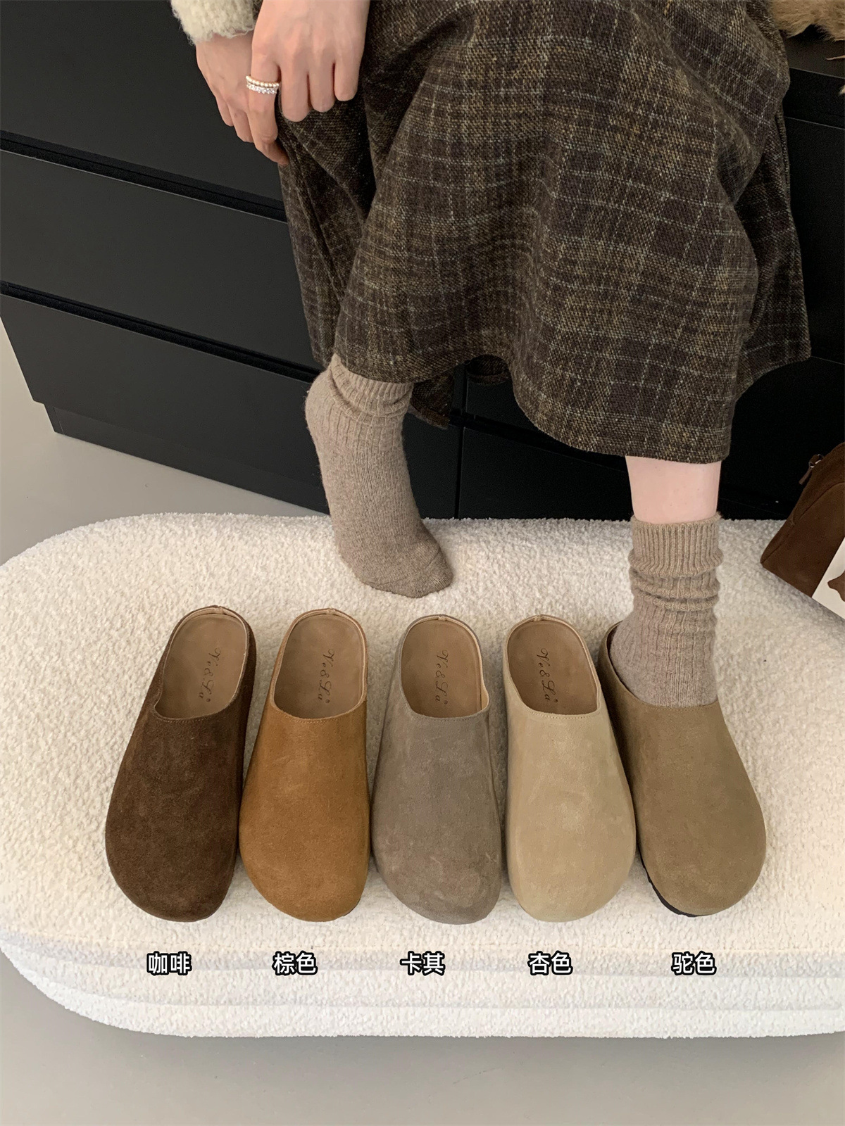정품 가죽 내부 높이 증가 두꺼운 밑창 Birkenan 신발 여성의 가을 및 겨울 새로운 모리 스타일 레트로 미운 귀여운 큰 Toe Baotou 하프 슬리퍼스토어 가기
