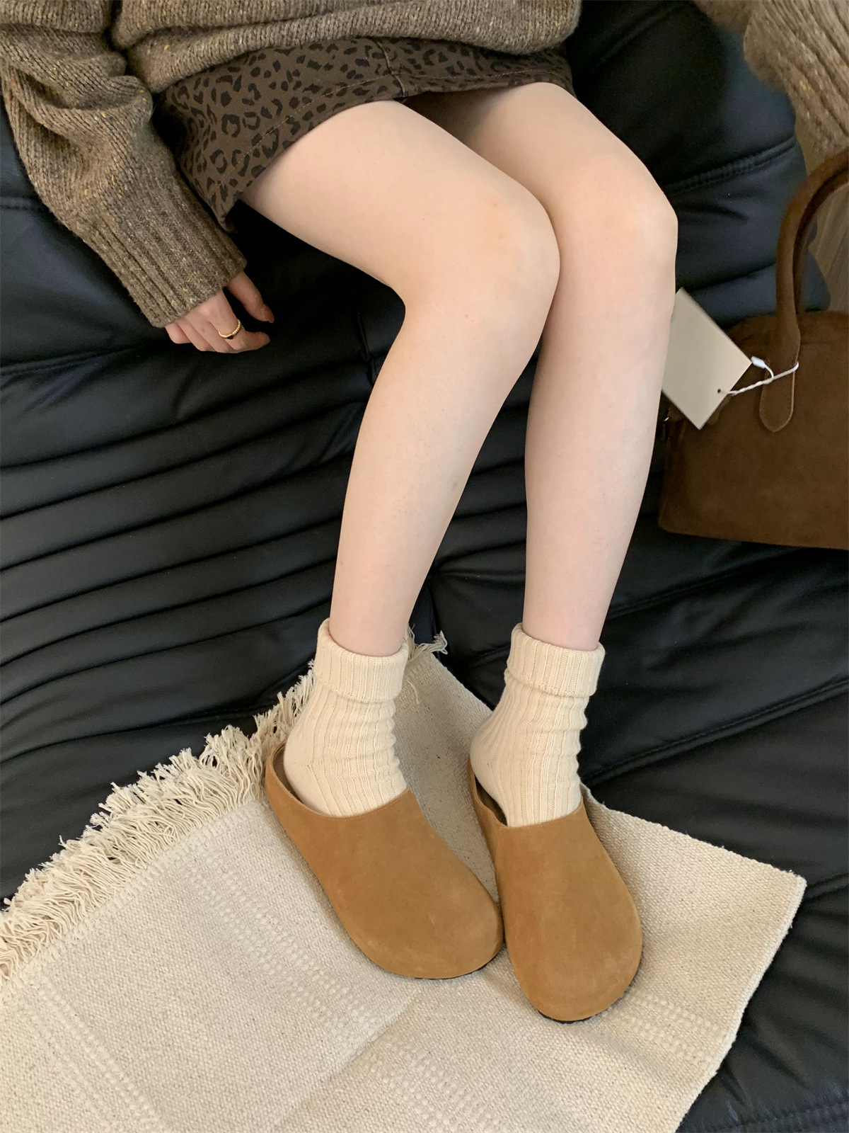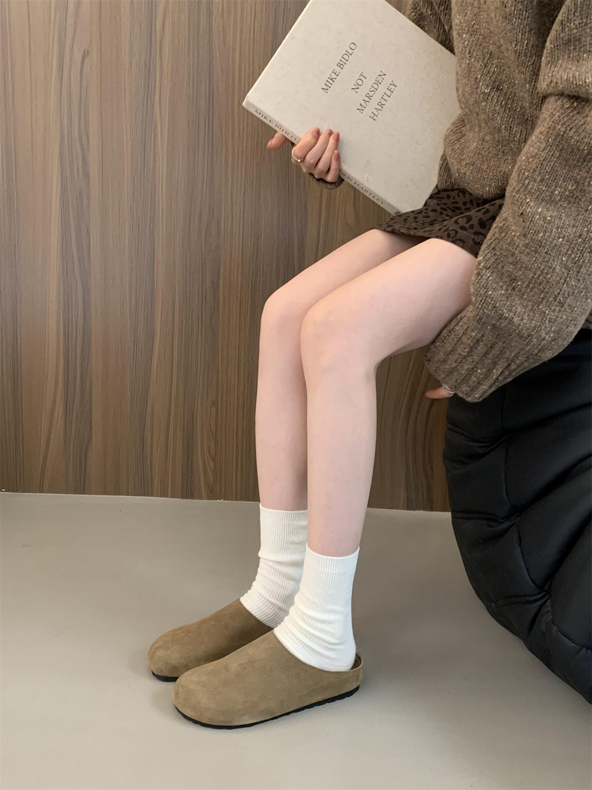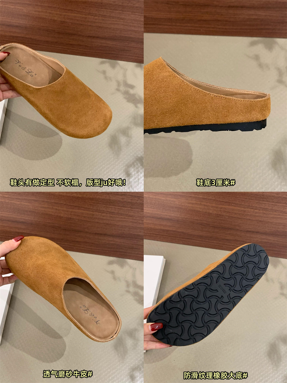 정품 가죽 내부 높이 증가 두꺼운 밑창 Birkenan 신발 여성의 가을 및 겨울 새로운 모리 스타일 레트로 미운 귀여운 큰 Toe Baotou 하프 슬리퍼