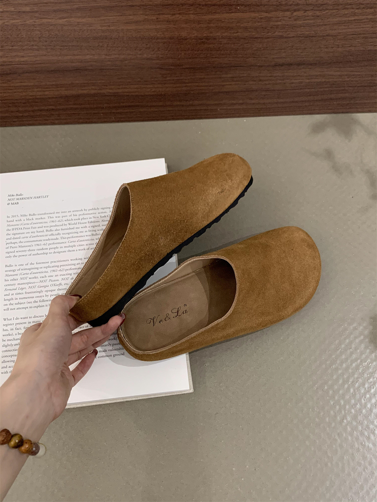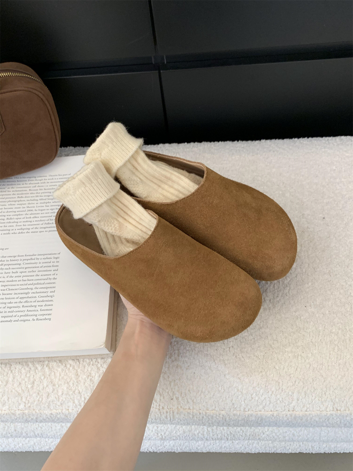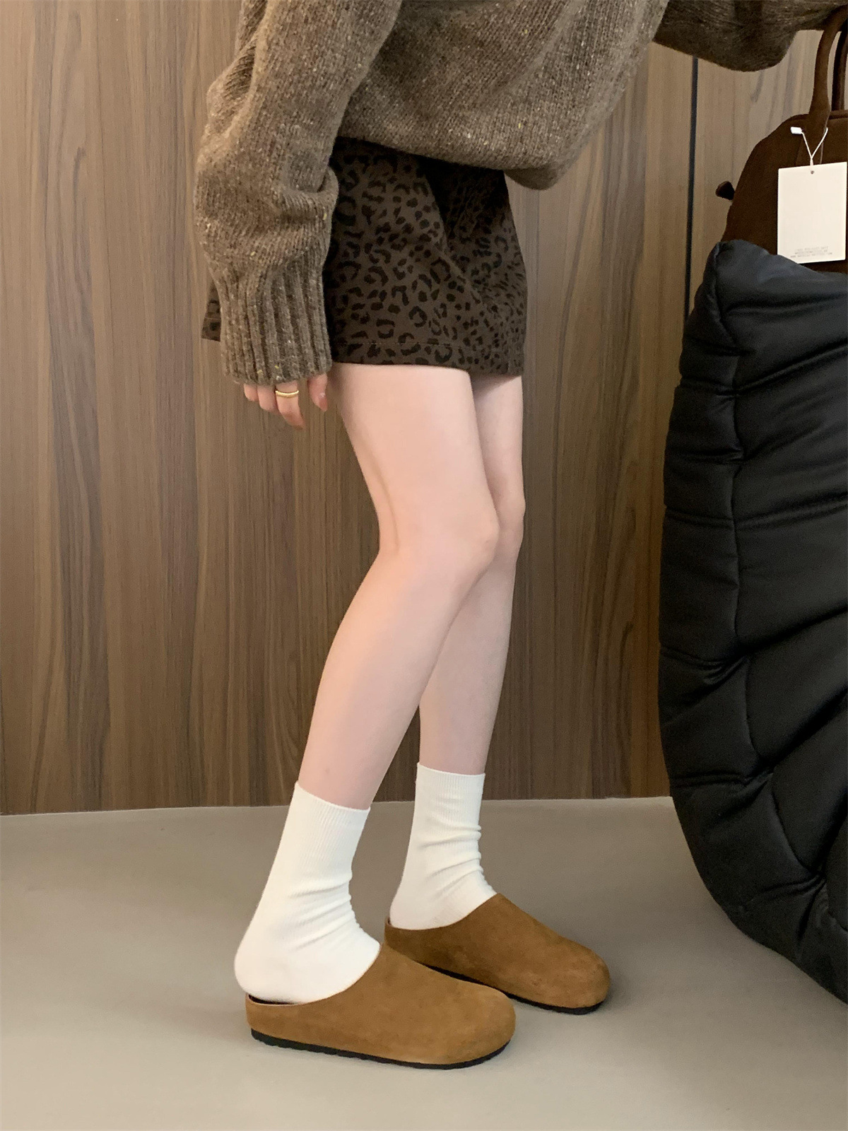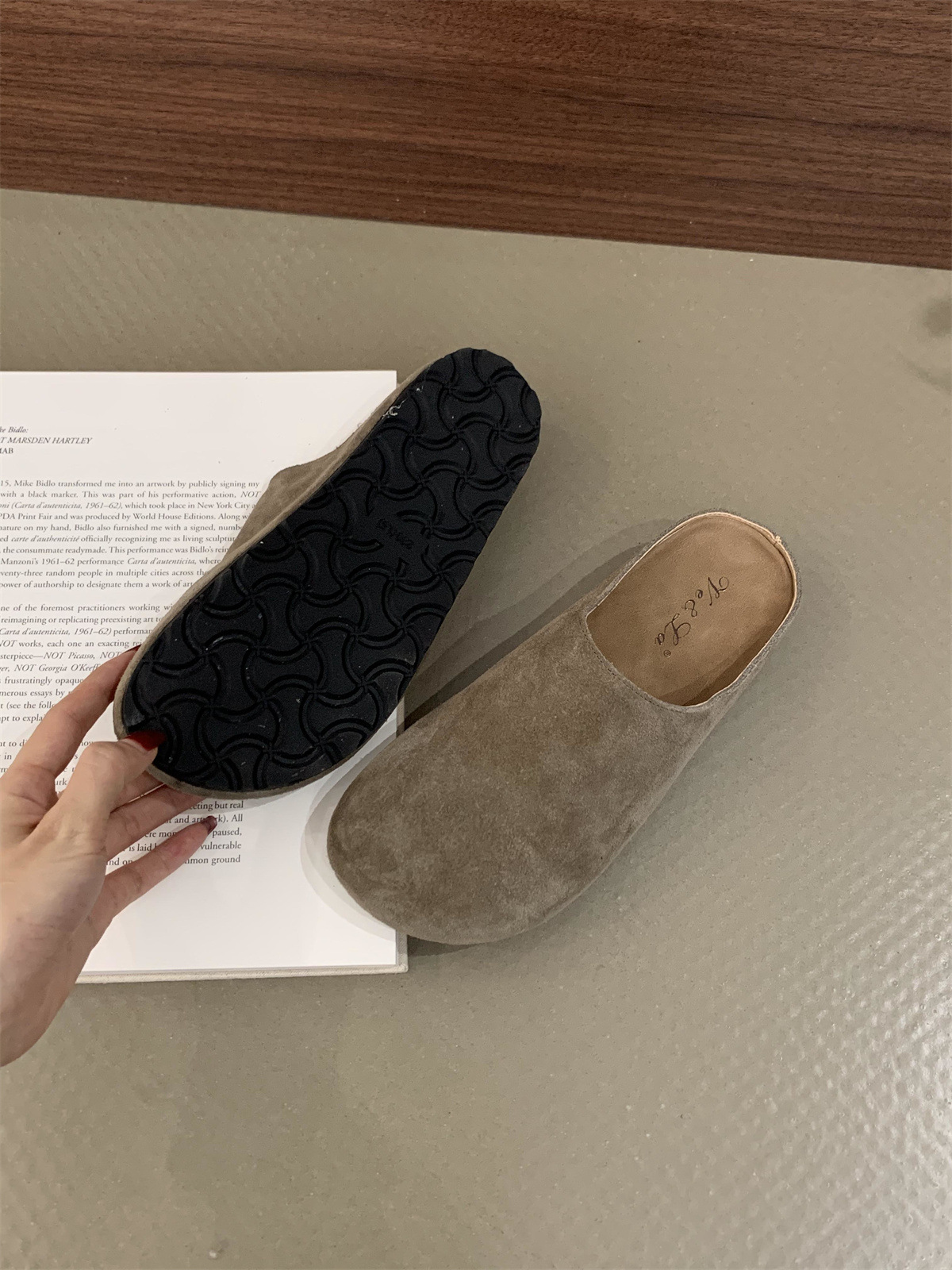 정품 가죽 내부 높이 증가 두꺼운 밑창 Birkenan 신발 여성의 가을 및 겨울 새로운 모리 스타일 레트로 미운 귀여운 큰 Toe Baotou 하프 슬리퍼