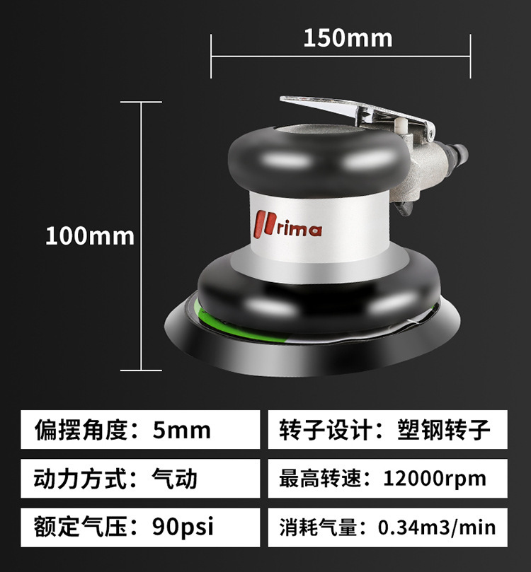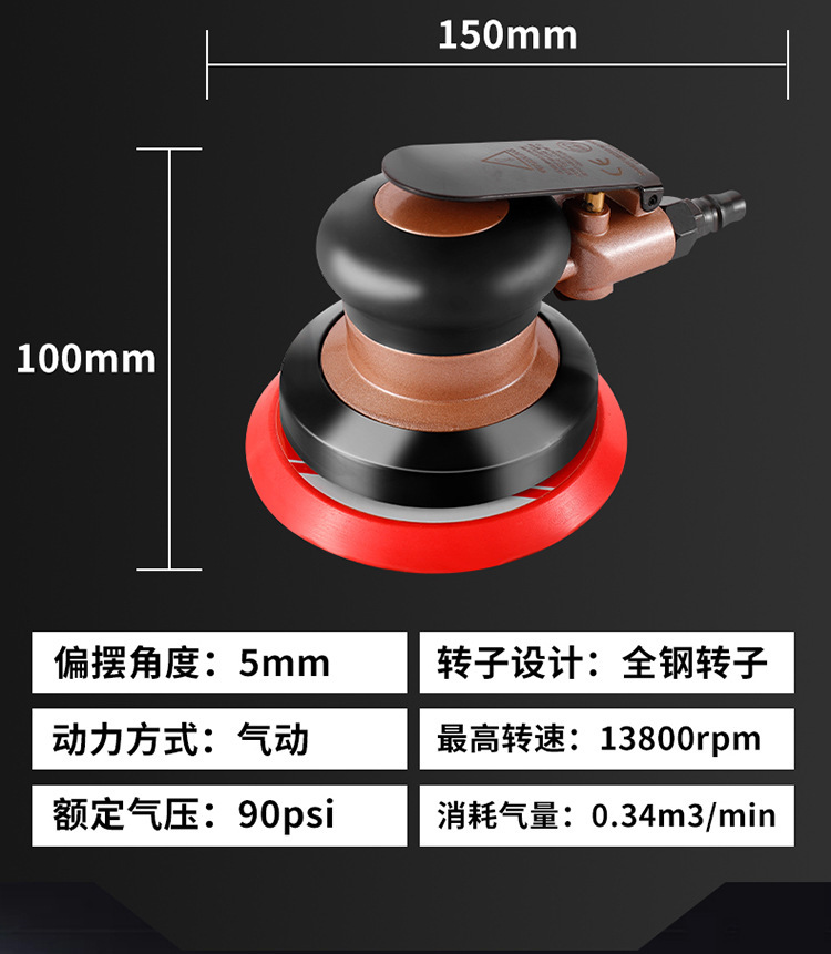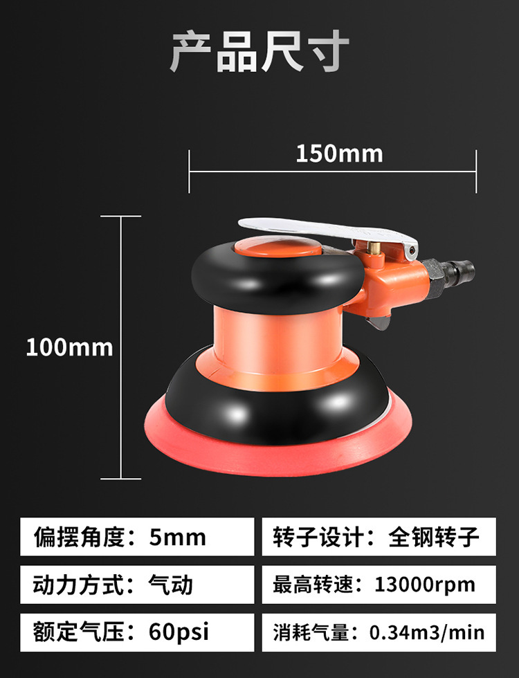 공압 연삭 기계 인치 산업 등급 연삭 기계 5 고속 목공 사포 자동차 왁스 먼지 흡입 연마 기계 건조스토어 가기