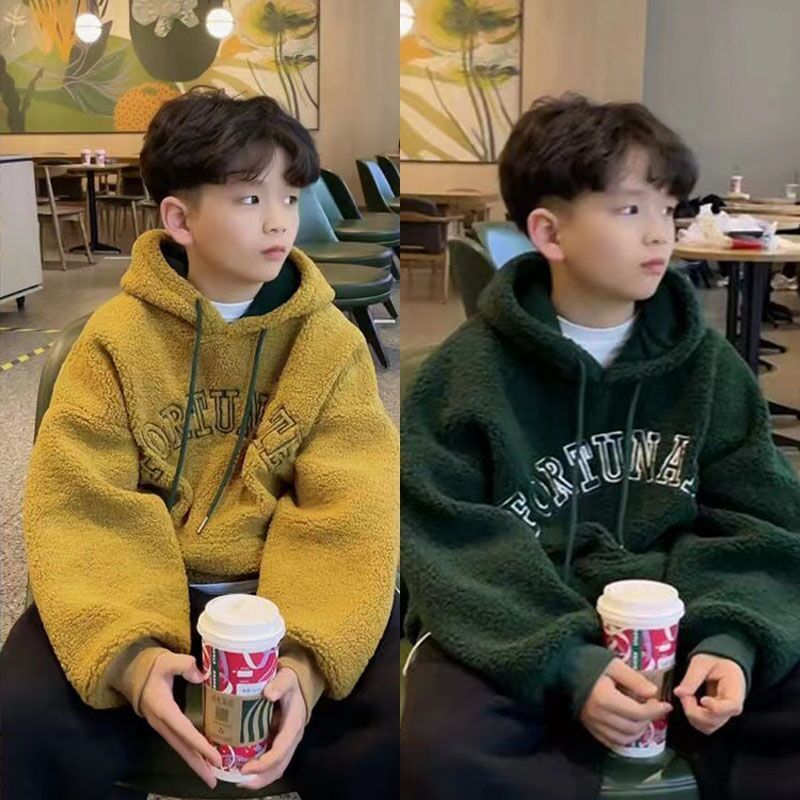 소년 소녀 코트 양고기 벨벳 2023 새로운 스타일 웨스턴 스타일 두꺼운 모직 스웨터 가을과 겨울 큰 어린이 스웨터 한유캉스토어 가기