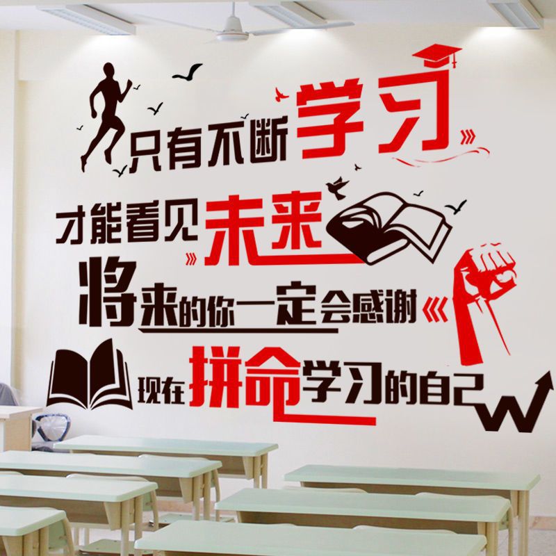 사무실 감동적인 벽 스티커 학습 슬로건 인센티브 텍스트 교실 문화 레이아웃 벽 연구 장식 유캉