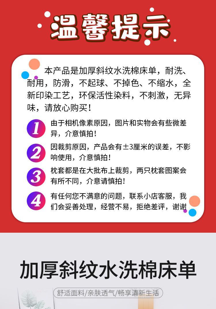 두꺼운 씻은 면화 침대 시트 원피스 피부 친화적 인 틀림 침대 시트 3 피스 세트 학생 기숙사 싱글 더블 사계절 Changzhen스토어 가기