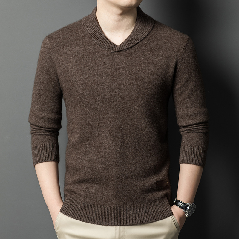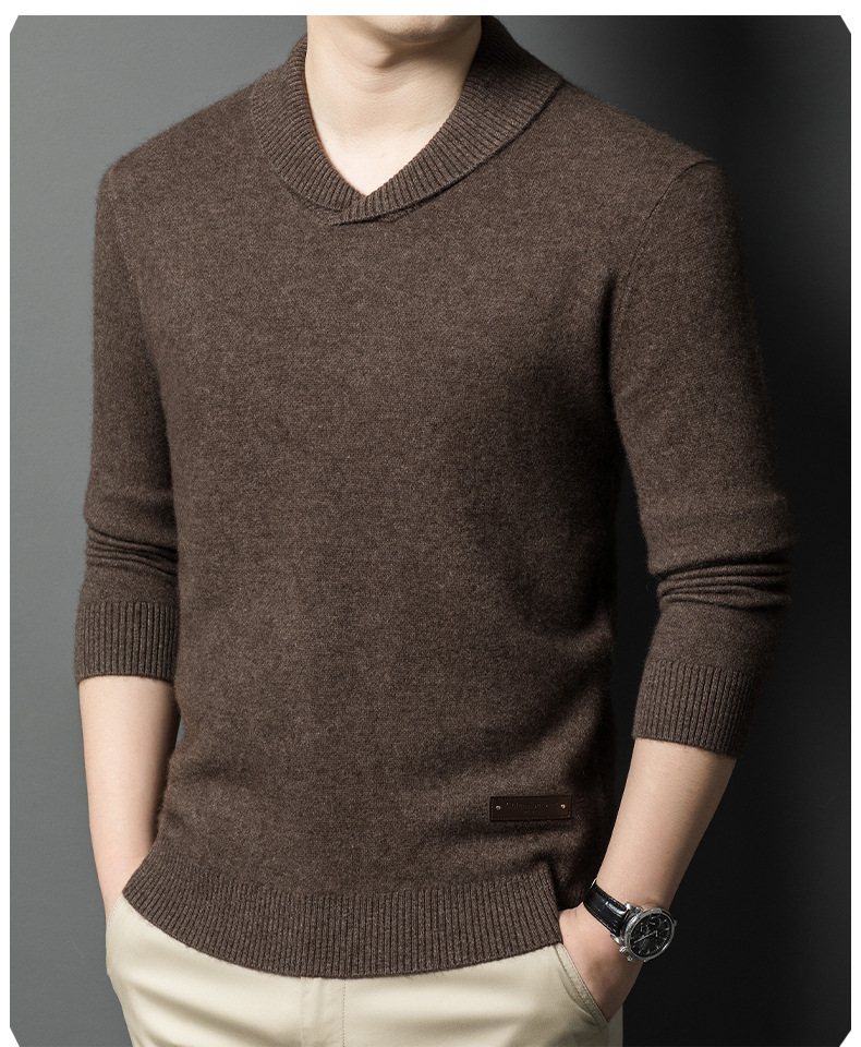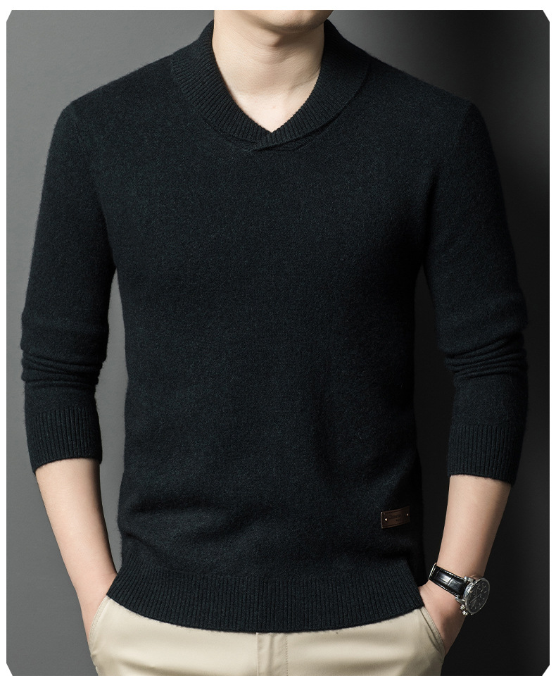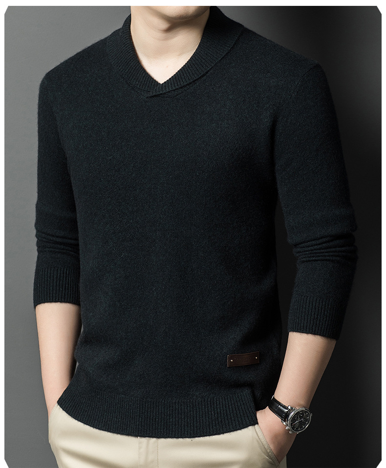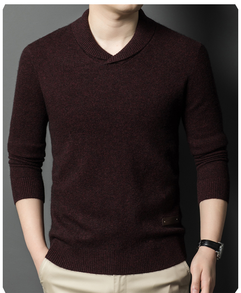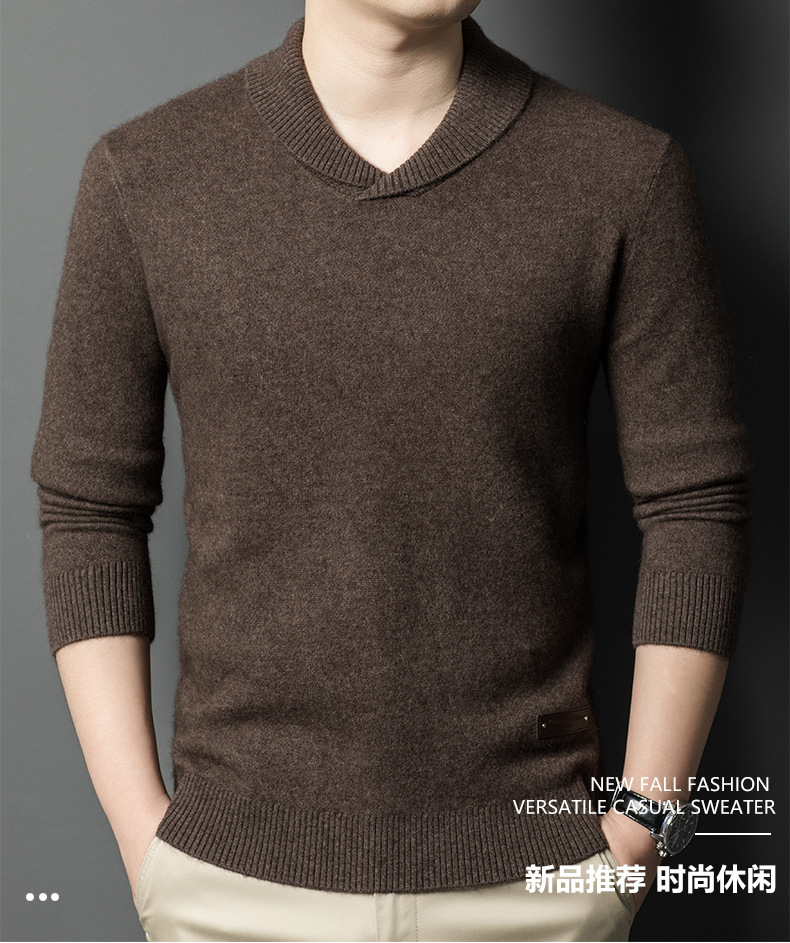 2024 가을과 겨울 하이 엔드 남자 야크 양털 스웨터 하프 높이 V 넥 루즈 핏 이너 스웨터