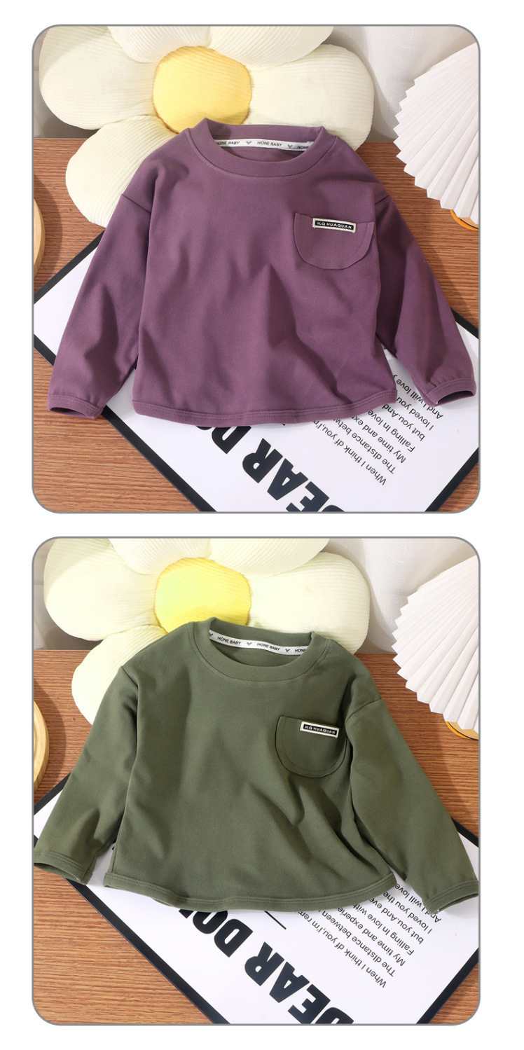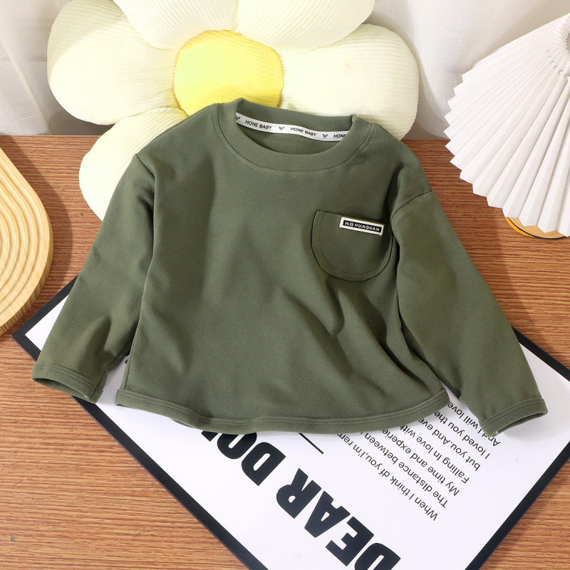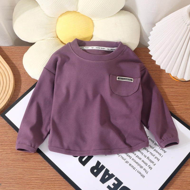 새로운 어린이 싱글 톱 소년 둥근 목 느슨한 가을 옷 소녀베이스 아기 한국 캐주얼 긴 소매 가을과 겨울 스타일
