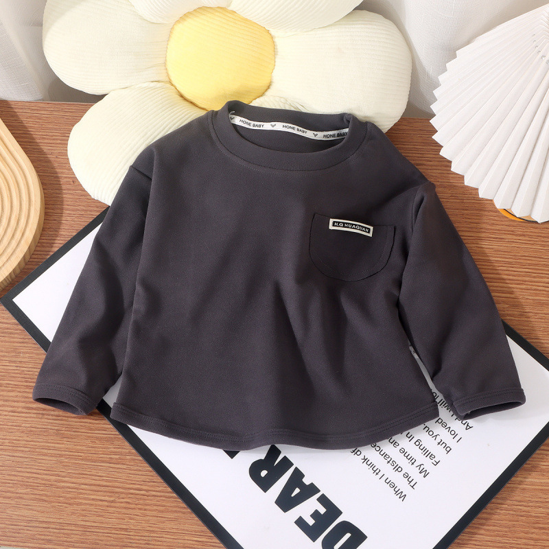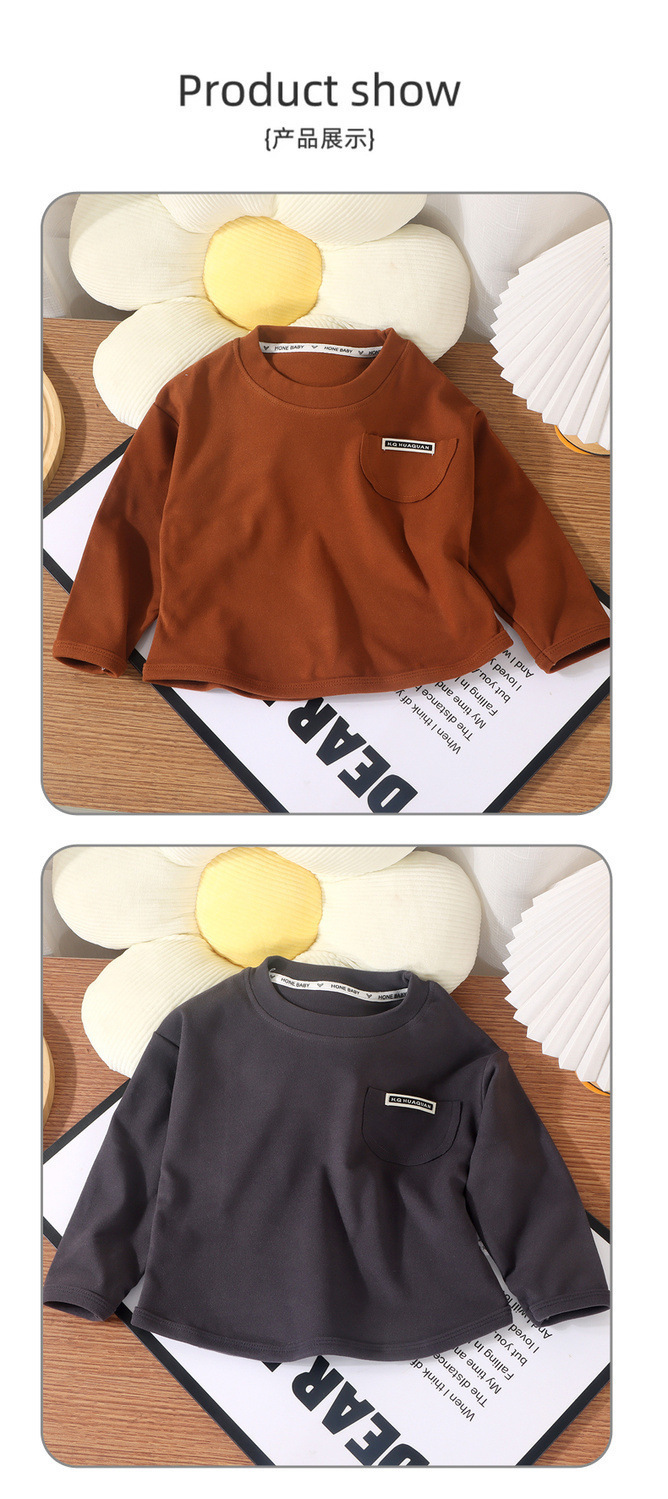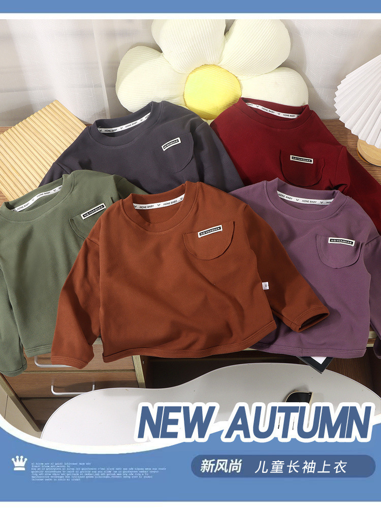 새로운 어린이 싱글 톱 소년 둥근 목 느슨한 가을 옷 소녀베이스 아기 한국 캐주얼 긴 소매 가을과 겨울 스타일스토어 가기