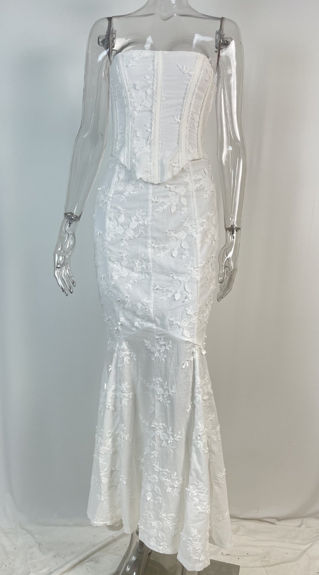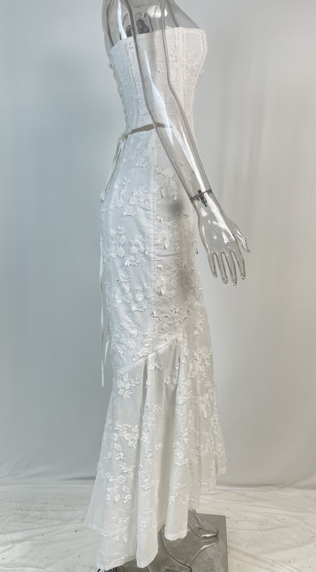 국경을 넘나 드는 유럽과 미국의 슬림 핏 섹시한 자수 우아한 끈이없는 엉덩이 원피스 섹시한 백리스 긴 원피스 우아한 행사