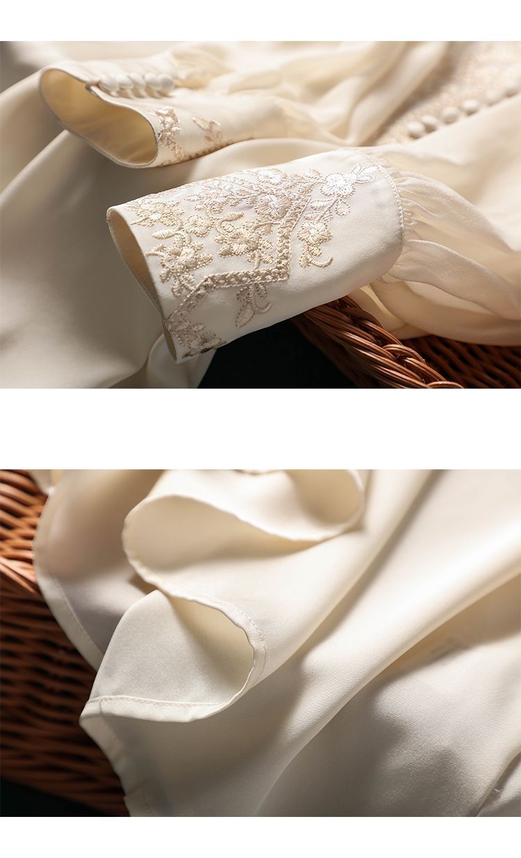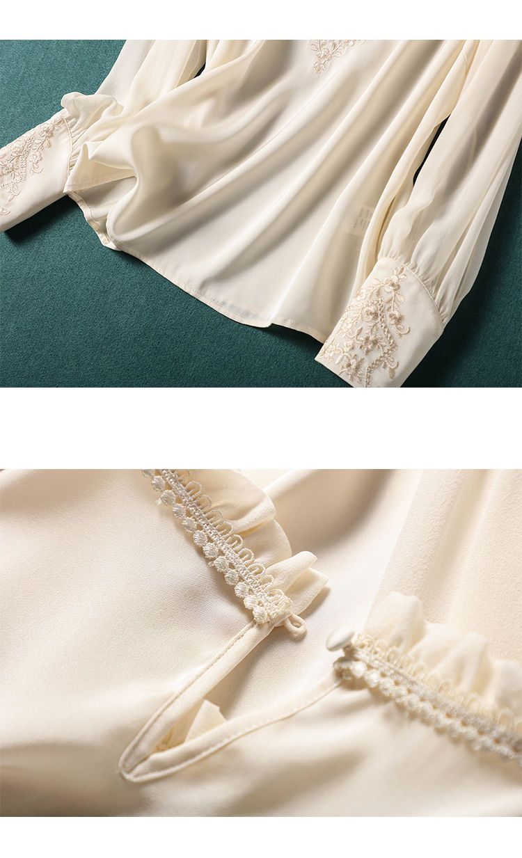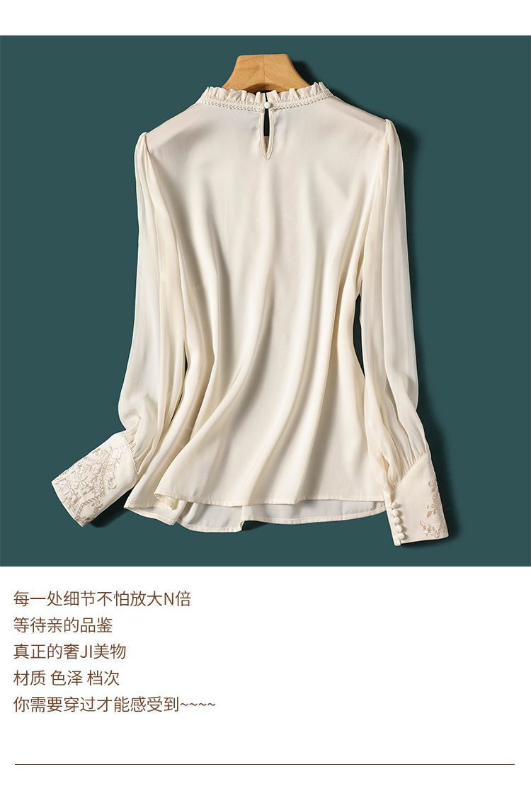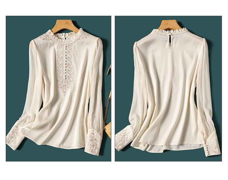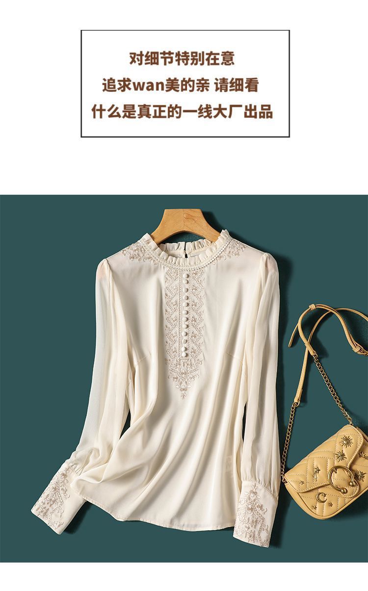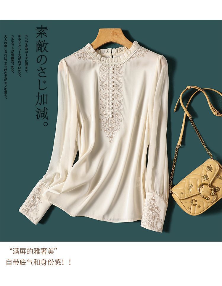 여성을위한 중공업 자수 실크 셔츠 2022 가을 새로운 스타일 버진 실크 긴팔 티셔츠 탑