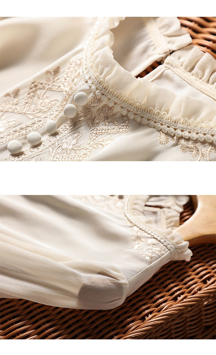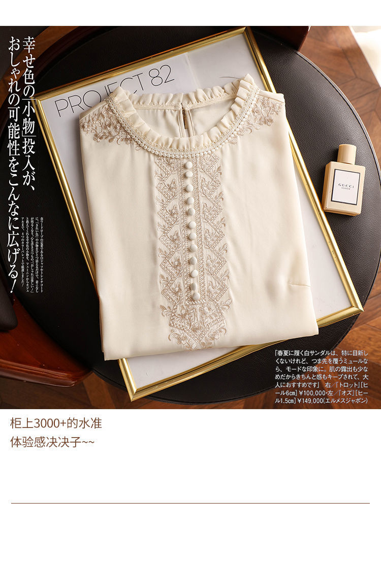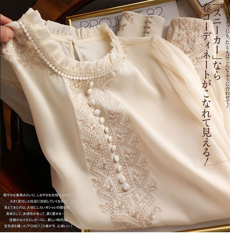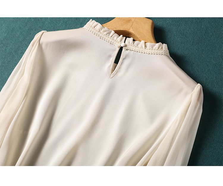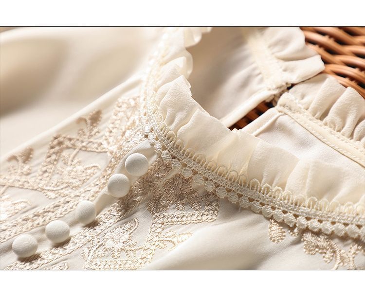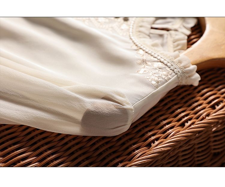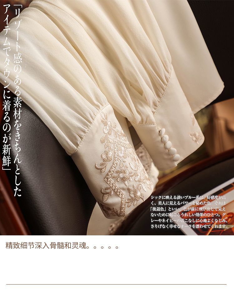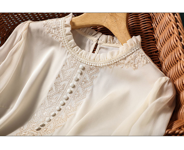 여성을위한 중공업 자수 실크 셔츠 2022 가을 새로운 스타일 버진 실크 긴팔 티셔츠 탑