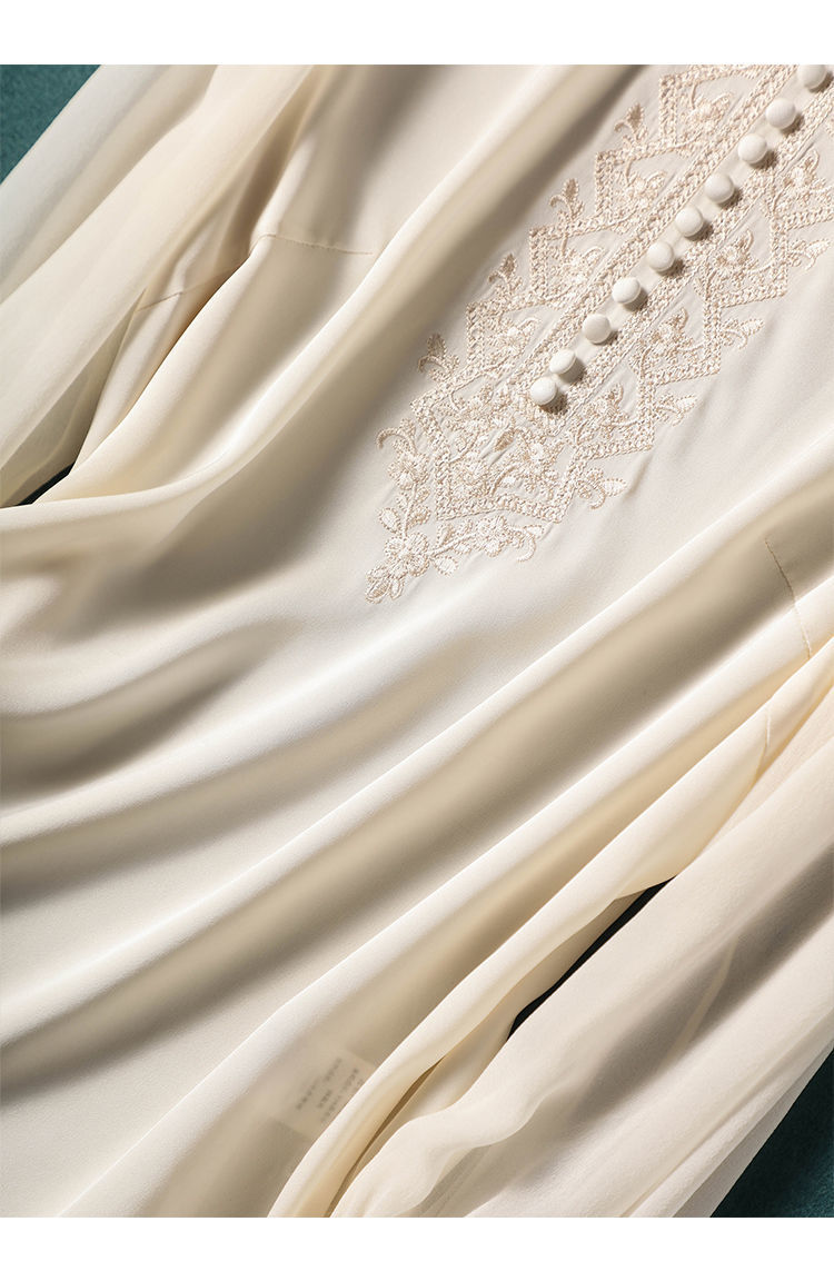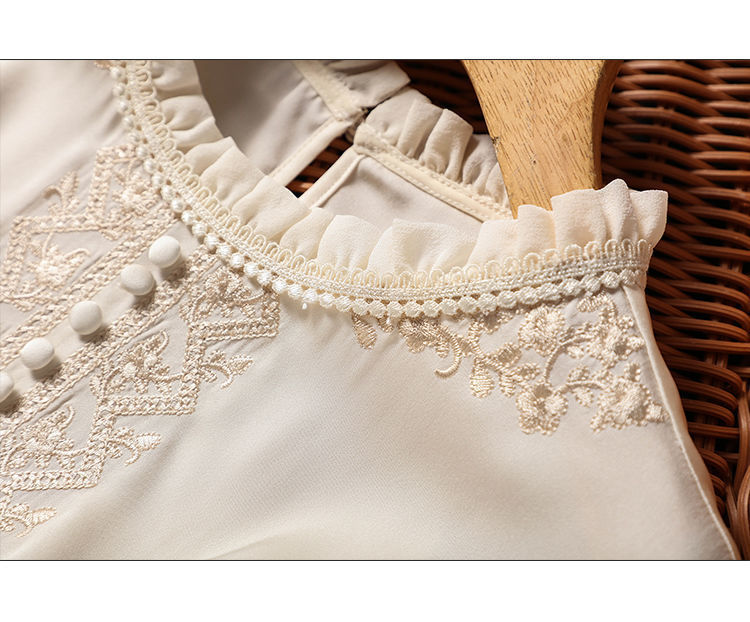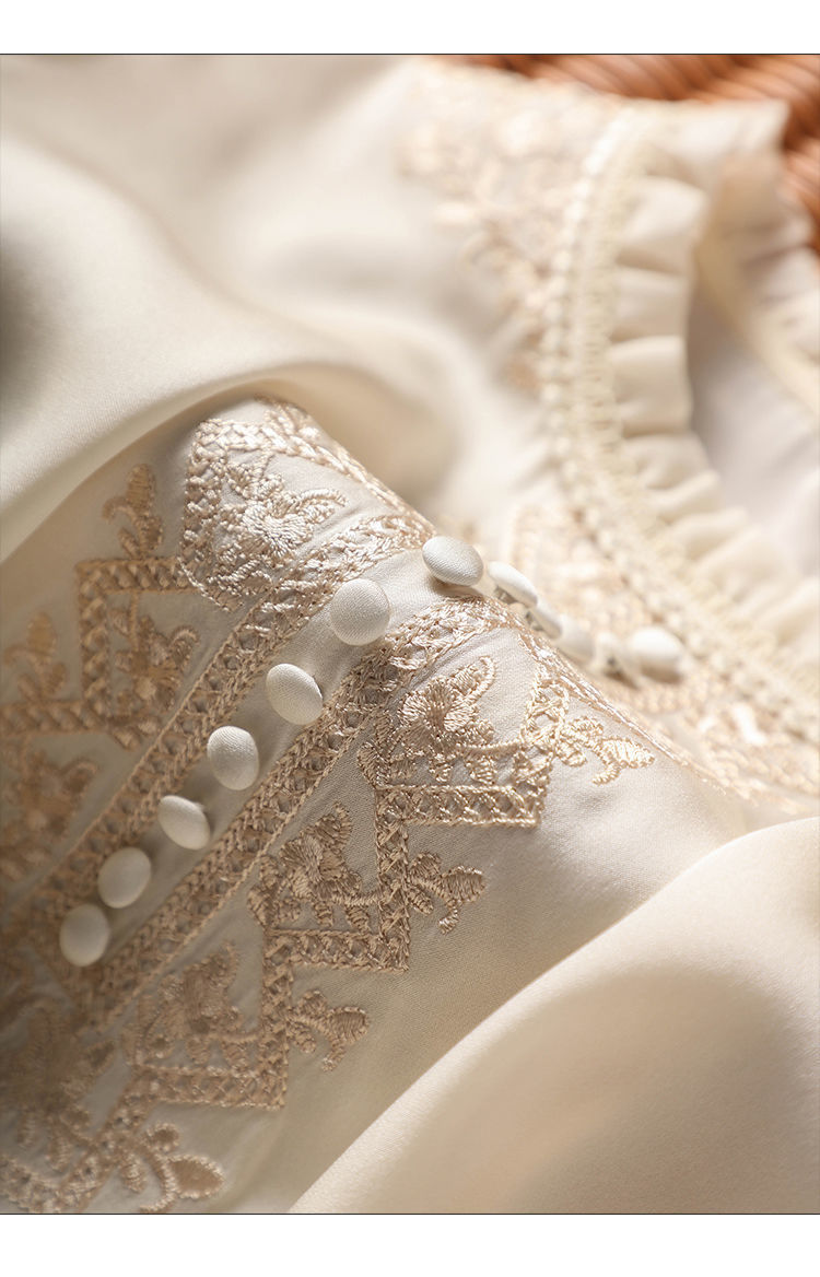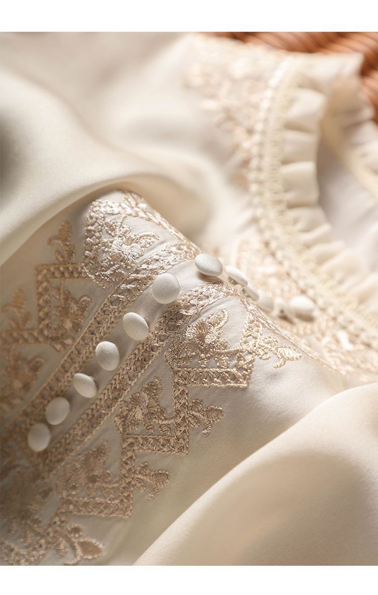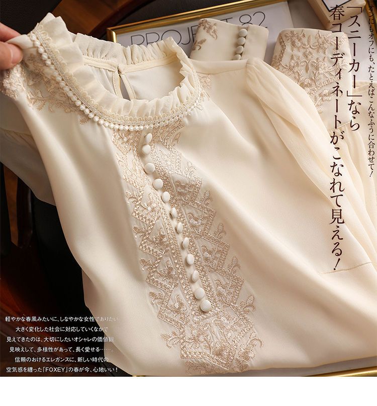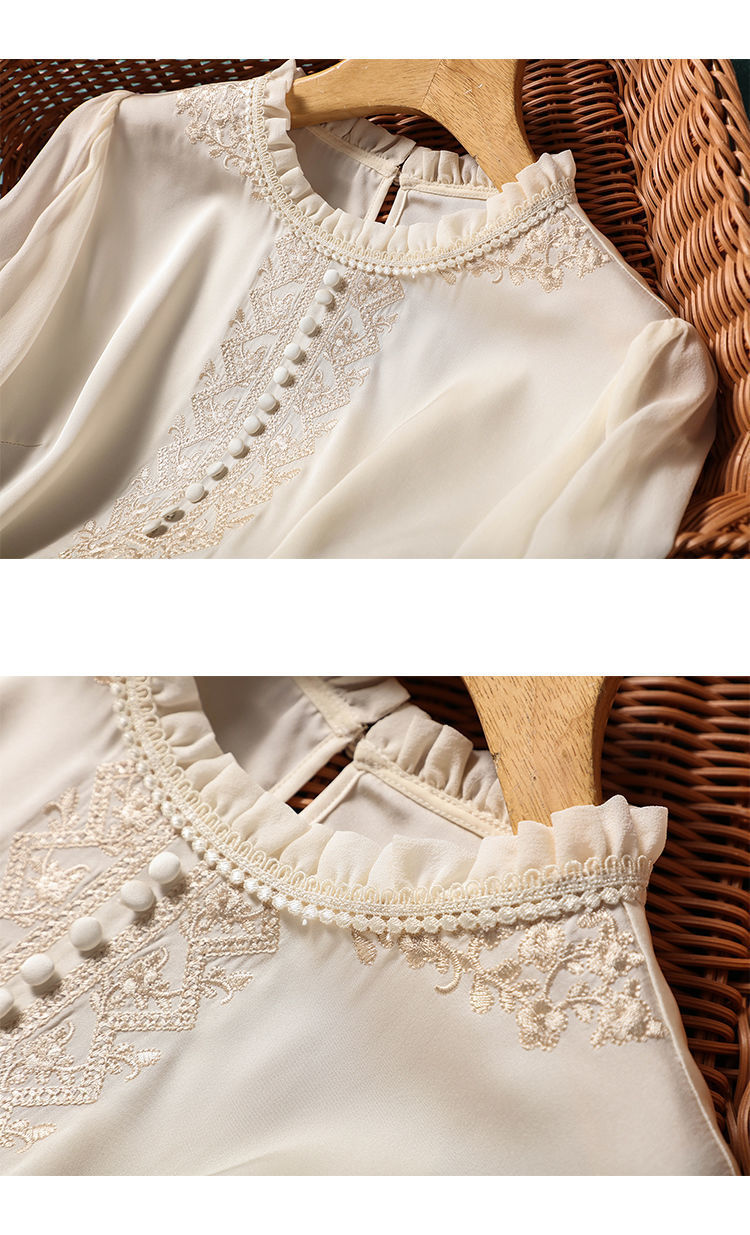 여성을위한 중공업 자수 실크 셔츠 2022 가을 새로운 스타일 버진 실크 긴팔 티셔츠 탑
