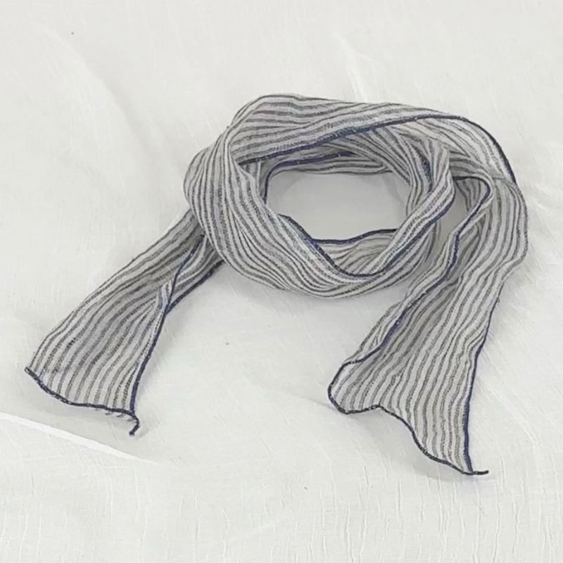 일본과 한국 국경 순수 린넨 줄무늬 작은 리본 여성 복고풍 예술 스타일 장식 목 보호 실크 스카프 봄과 가을 새로운스토어 가기