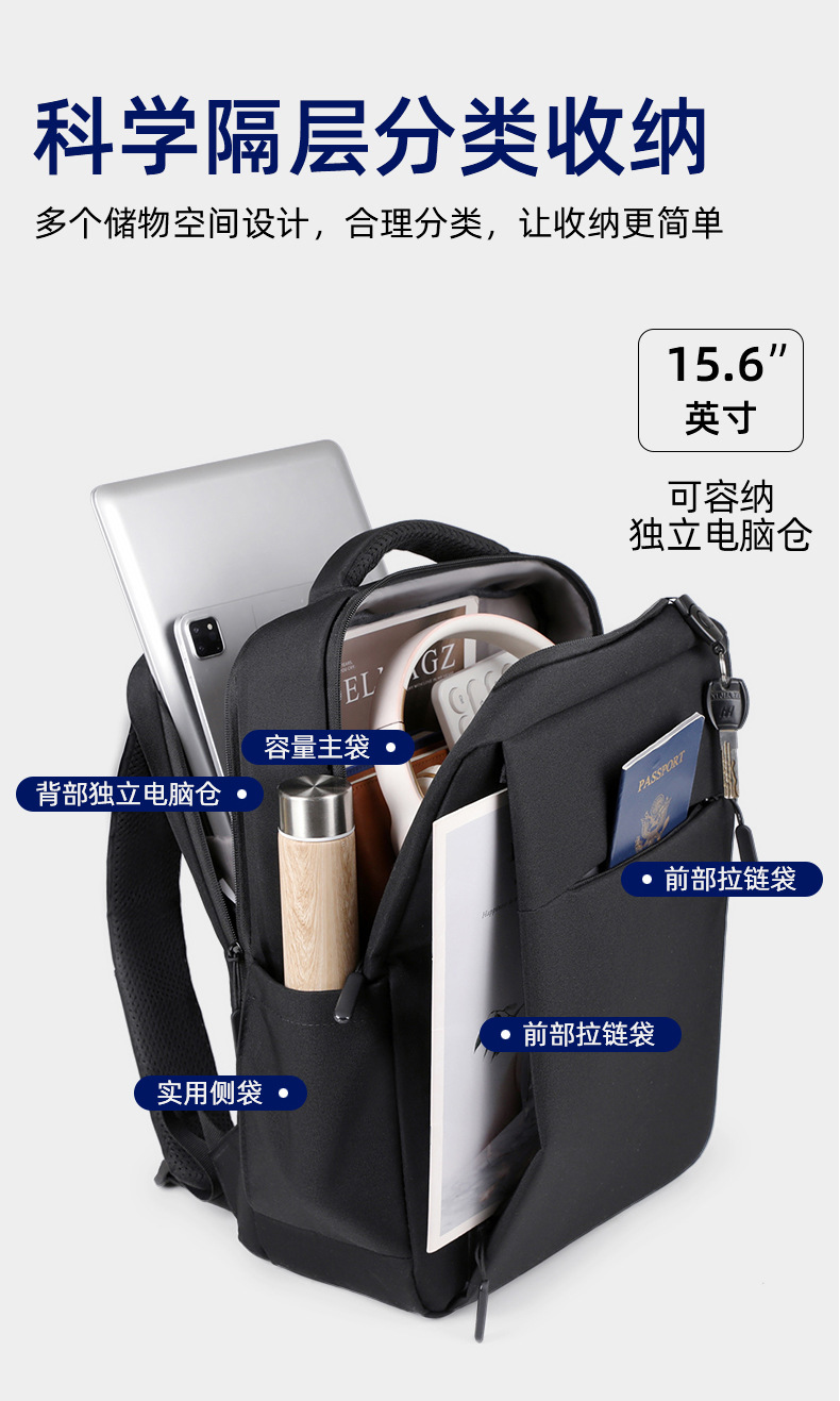 새로운 스타일의 남성용 대용량 이중층 비즈니스 컴퓨터 가방, 야외 여행용 백팩, 여성용 백팩, 로고 인쇄 가능스토어 가기