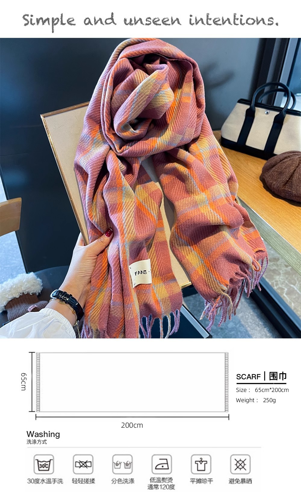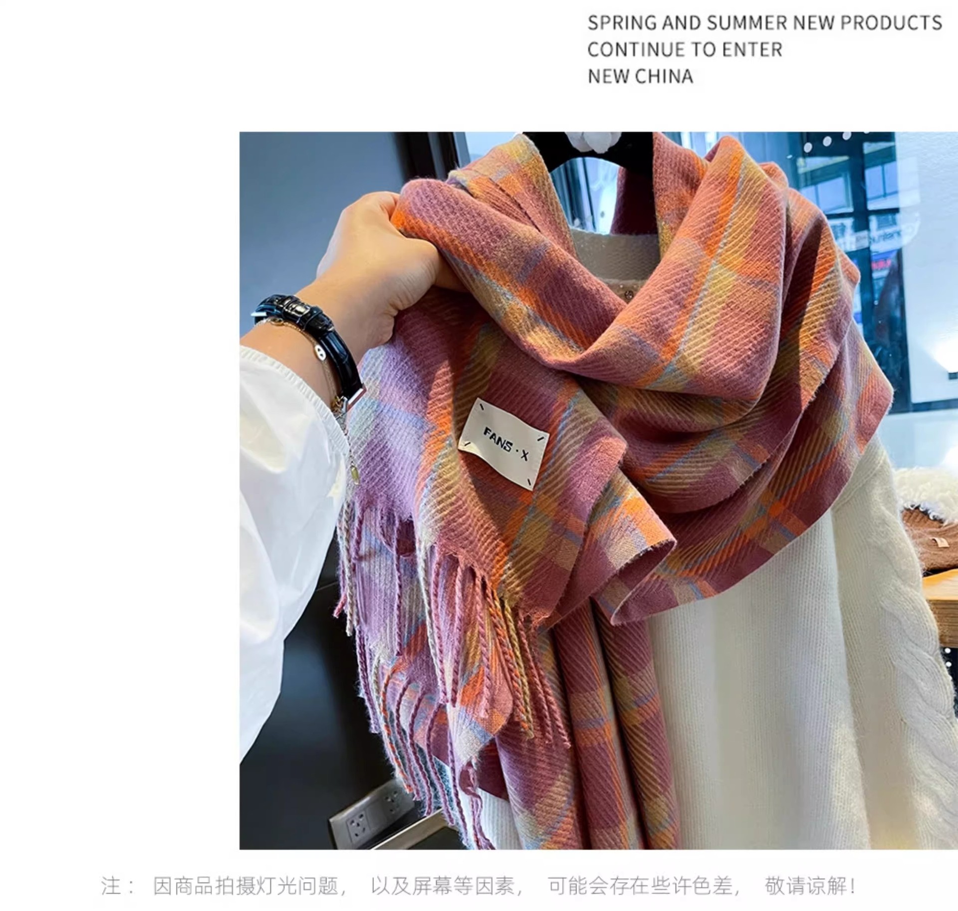 2024 겨울 양면 캐시미어 한국식 컬러 블록 격자 목도리 이중 사용 외부 따뜻한 스카프 여성용 스카프