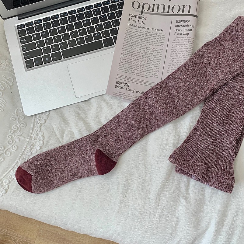 가을과 겨울 따뜻한 슬림 울 레깅스 여성용 니트 블렌드 슬리밍 팬티 스타킹 Ins 수직 줄무늬 버건디 바지스토어 가기