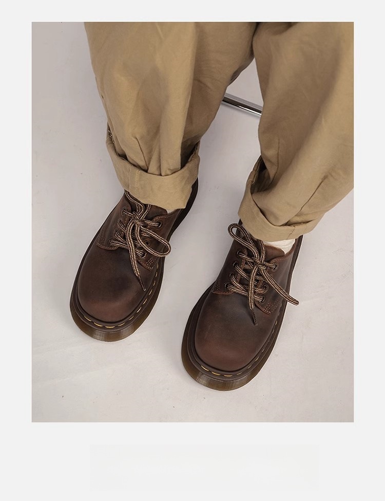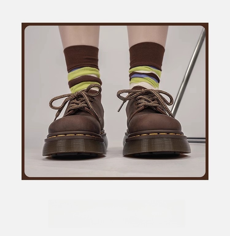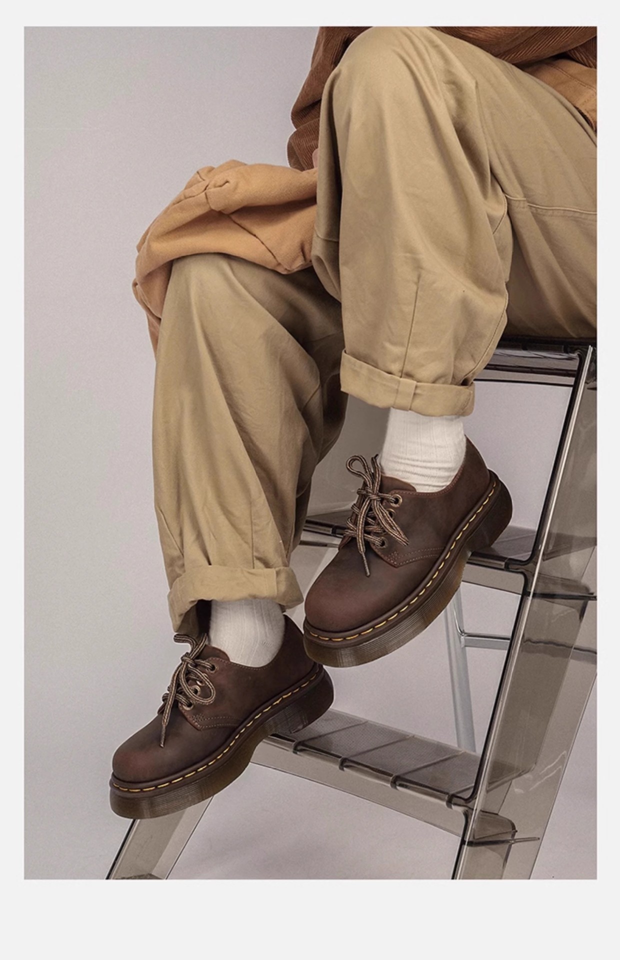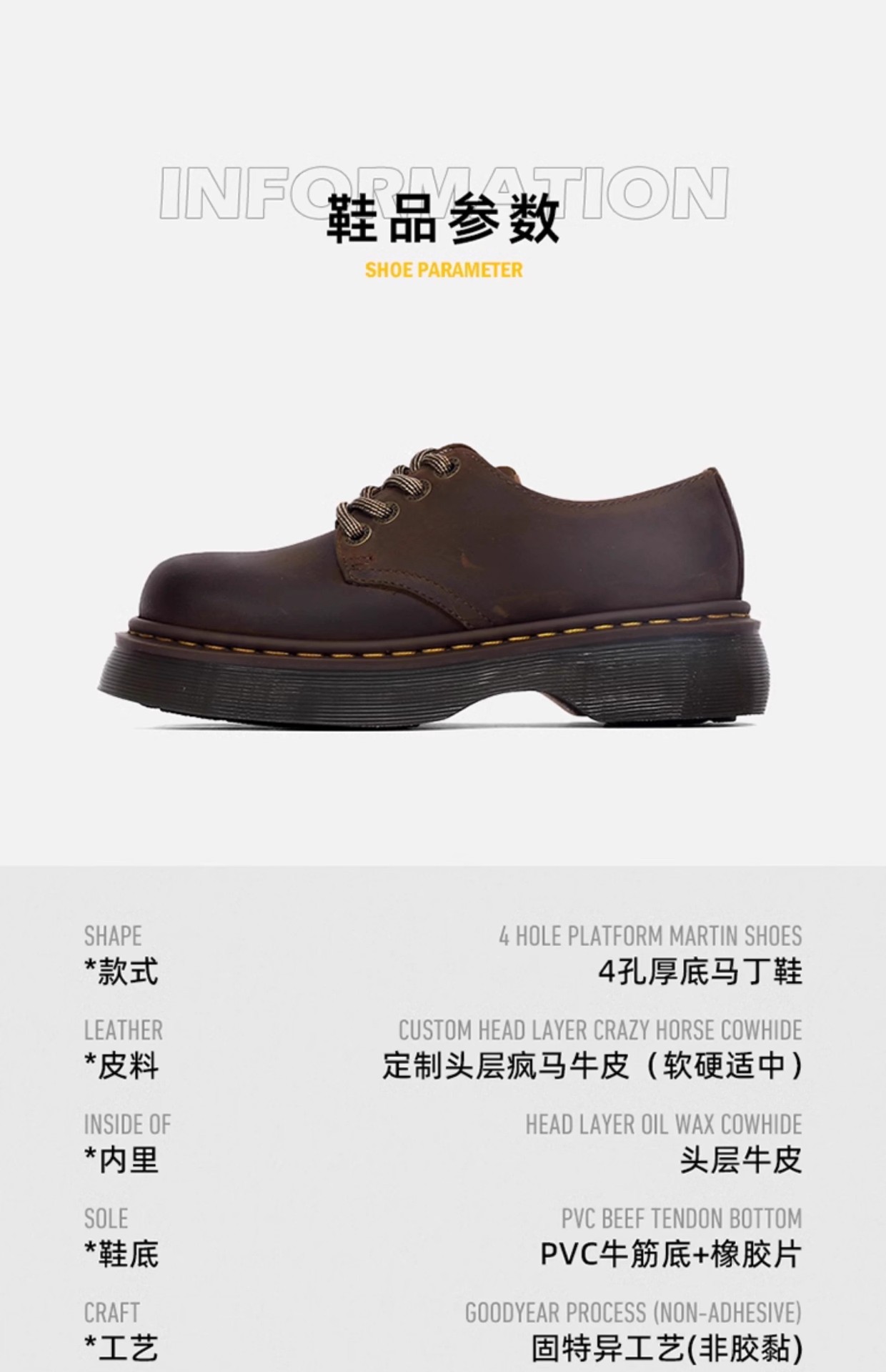 2024 가을과 겨울 새로운 골동품 두꺼운 밑창 미친 가죽 마틴 신발 여성 정품 가죽 높이 증가 빈티지 작업복 신발 플랫폼 신발스토어 가기