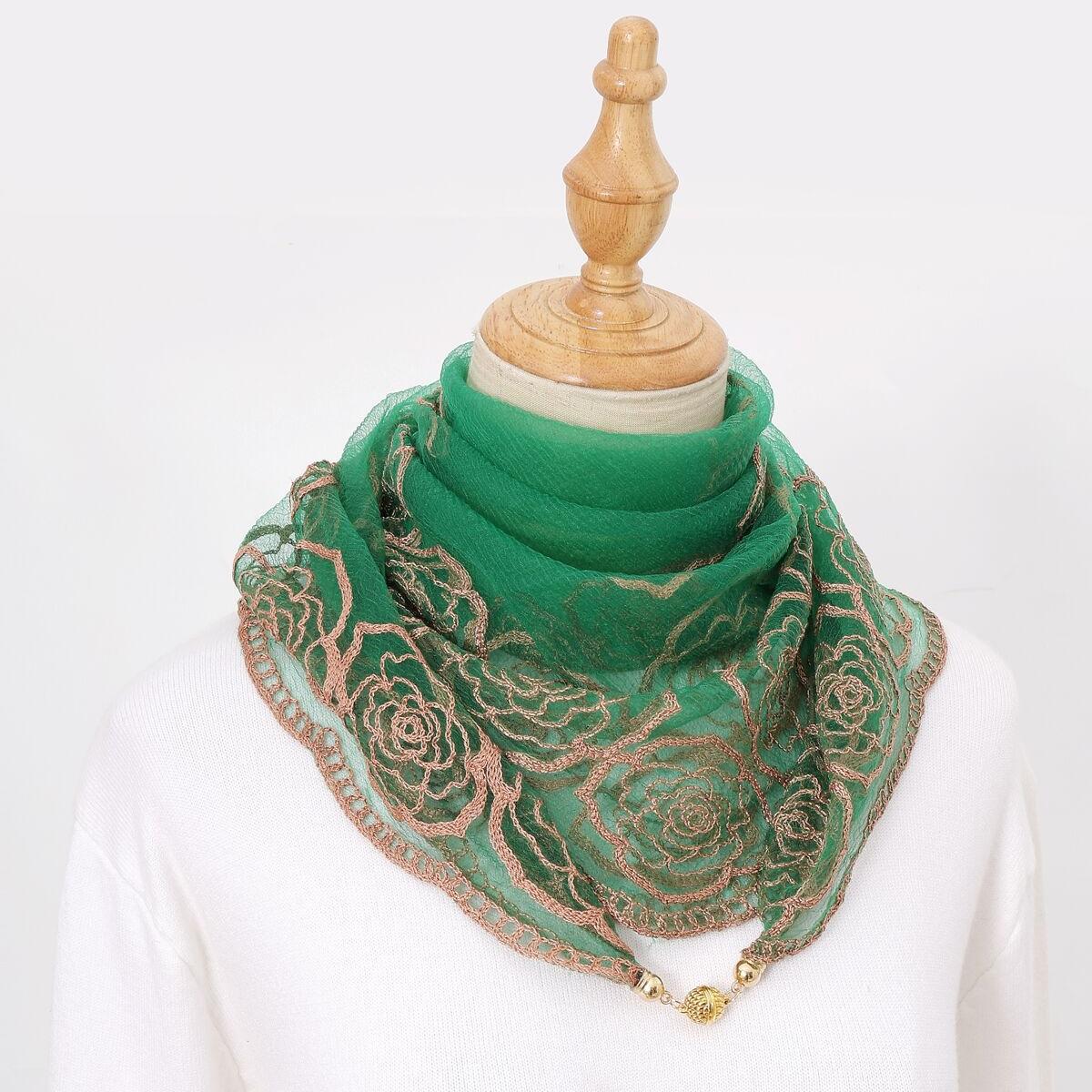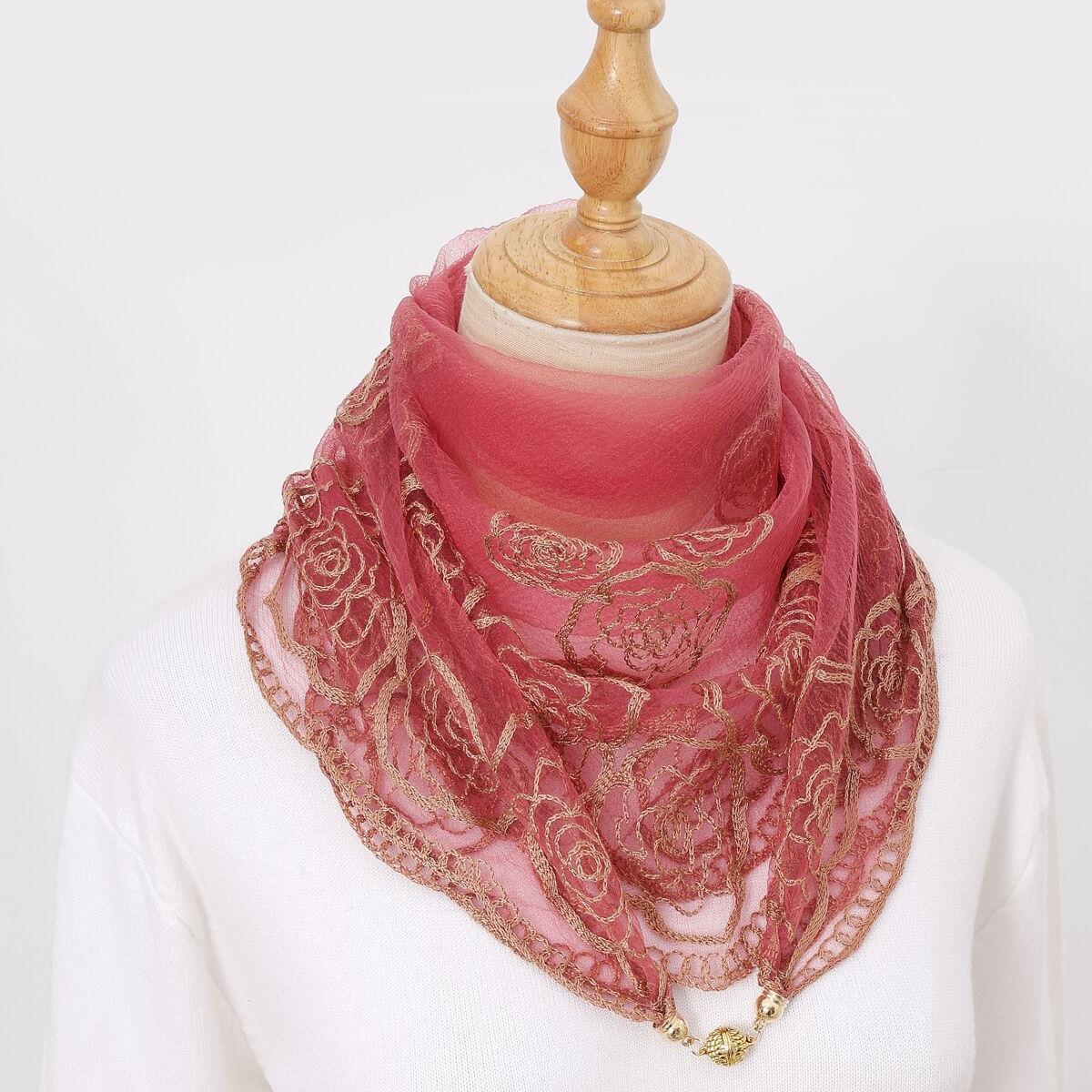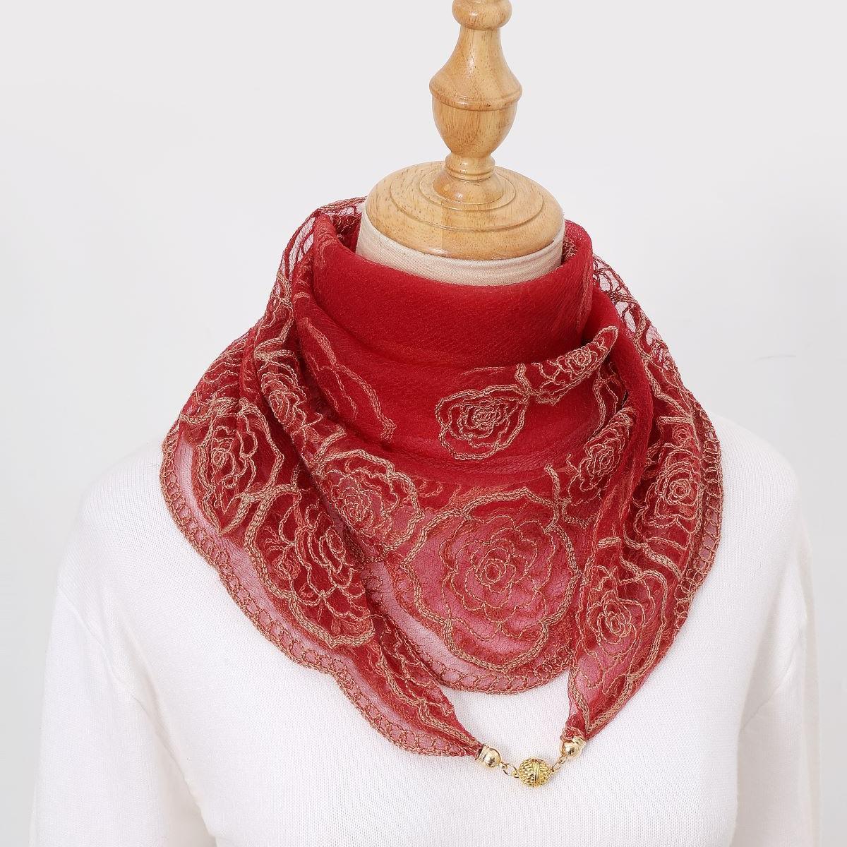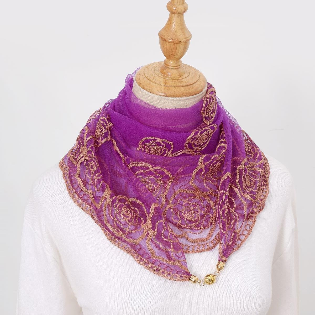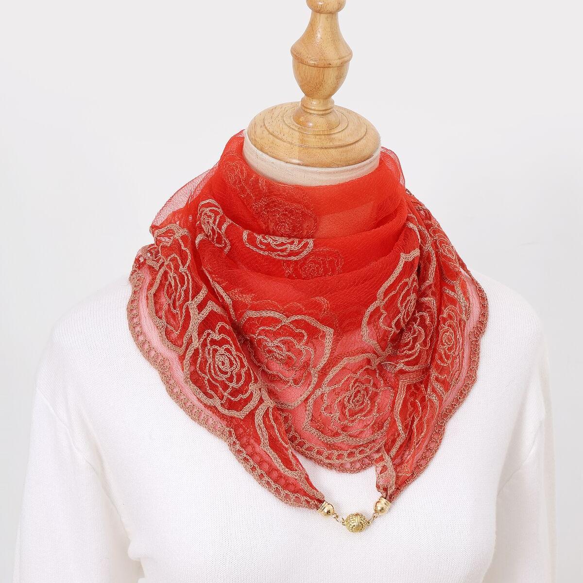 빈티지 자수 스퀘어 스카프 다기능 장식 실크 스카프 얇은 민족 스타일 마그네틱 버클 스카프 고급 센스 넥 보호 스카프