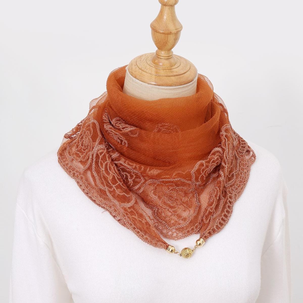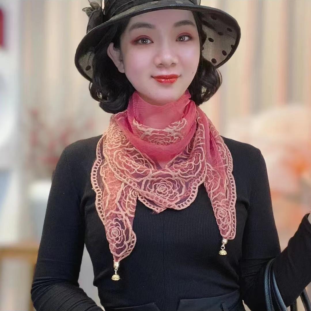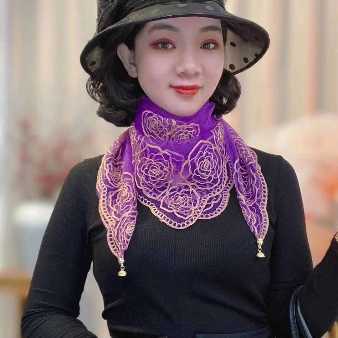 빈티지 자수 스퀘어 스카프 다기능 장식 실크 스카프 얇은 민족 스타일 마그네틱 버클 스카프 고급 센스 넥 보호 스카프스토어 가기