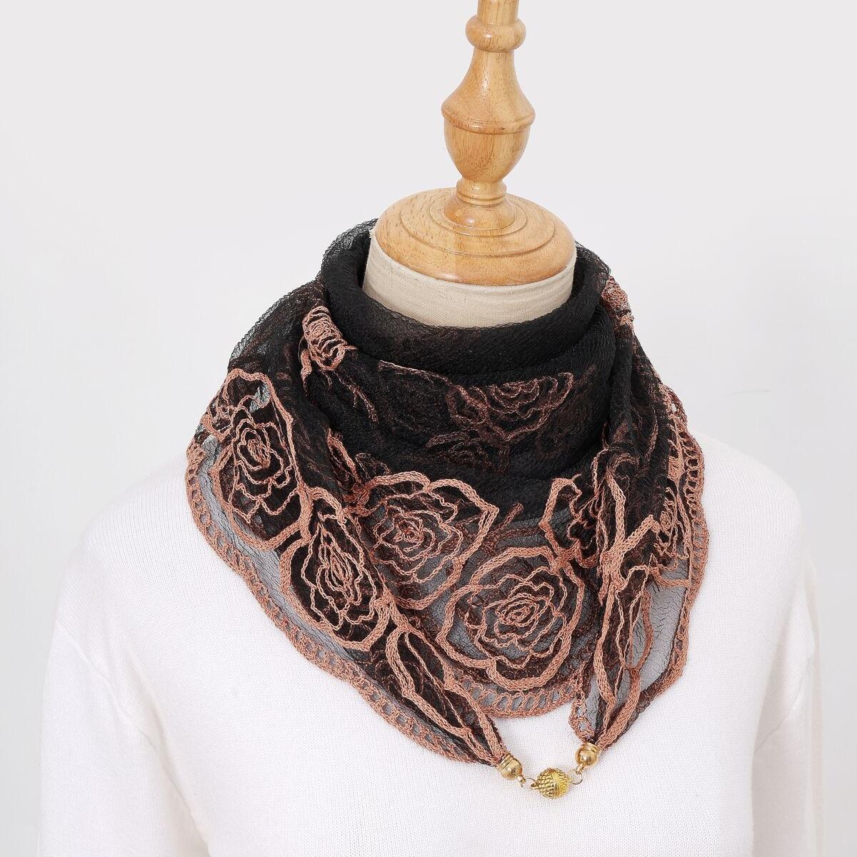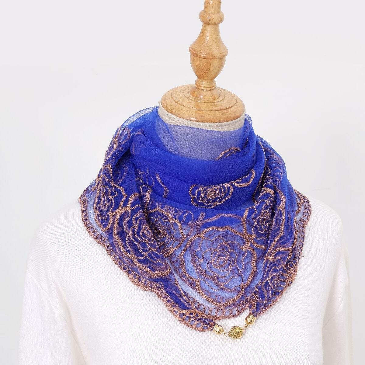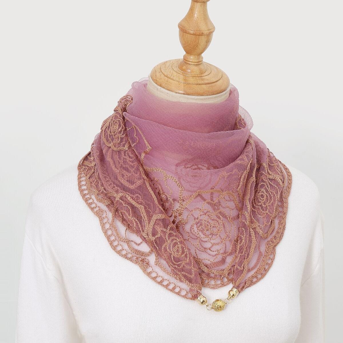 빈티지 자수 스퀘어 스카프 다기능 장식 실크 스카프 얇은 민족 스타일 마그네틱 버클 스카프 고급 센스 넥 보호 스카프스토어 가기