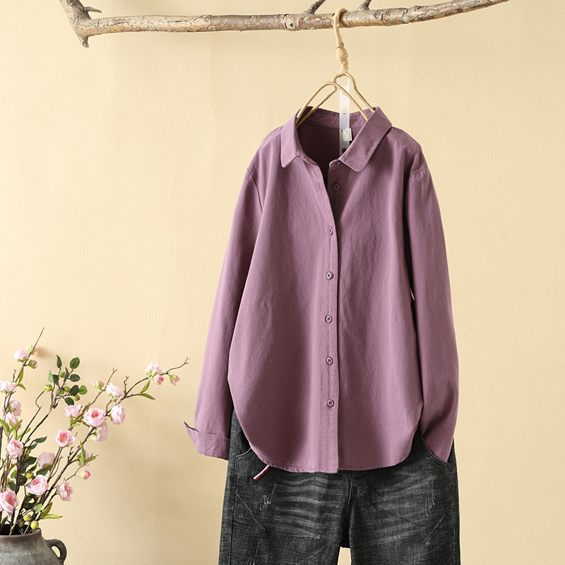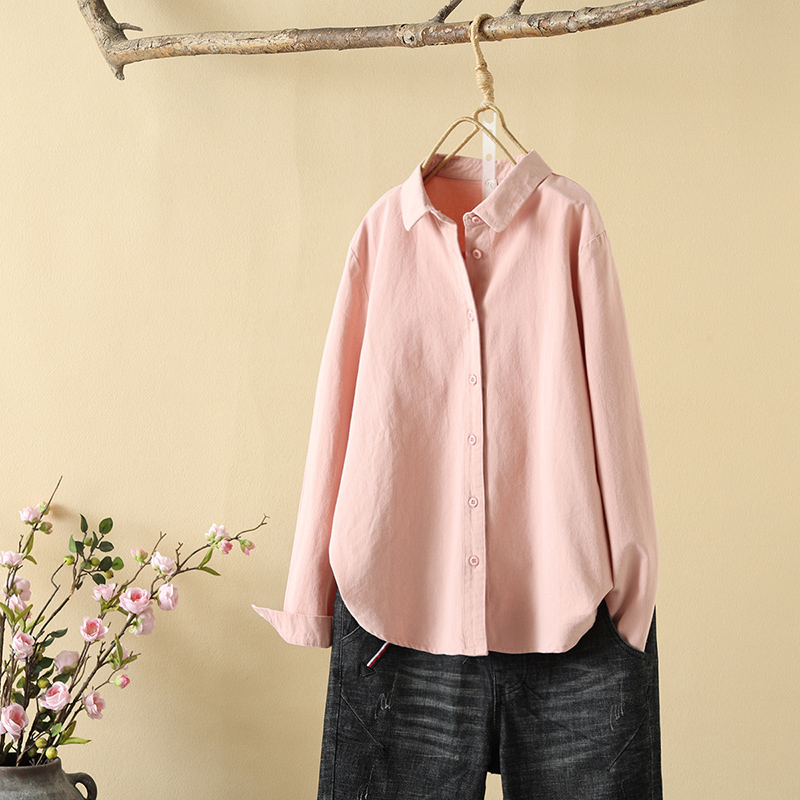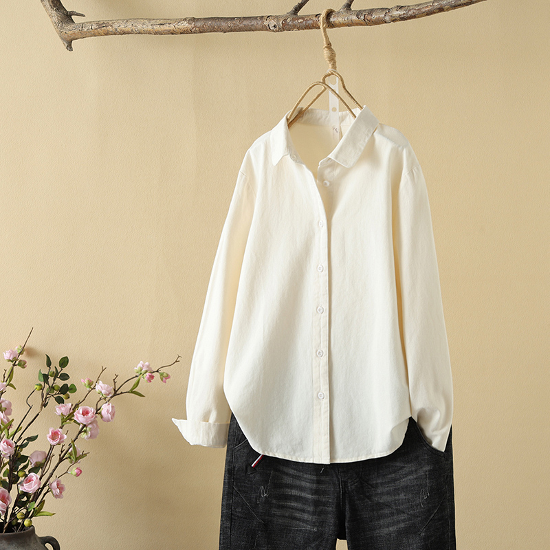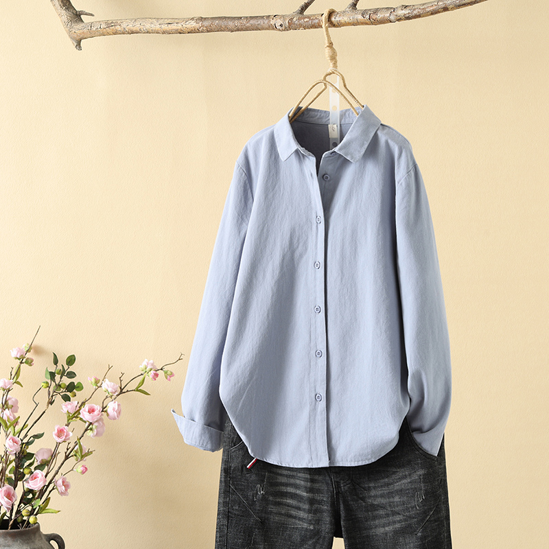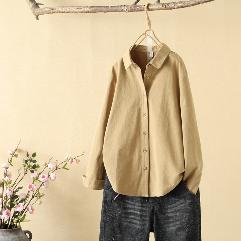 2024 이른 봄 샌딩 면 두꺼운 긴팔 단색 셔츠 여성용 캐주얼 간단한 셔츠베이스 탑스토어 가기
