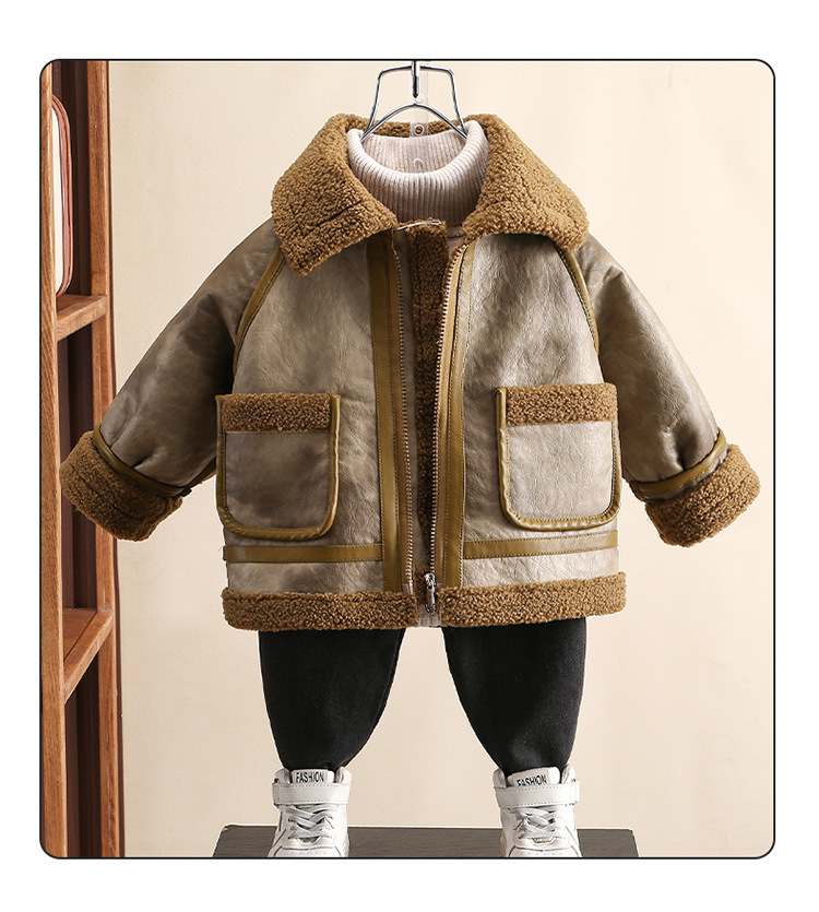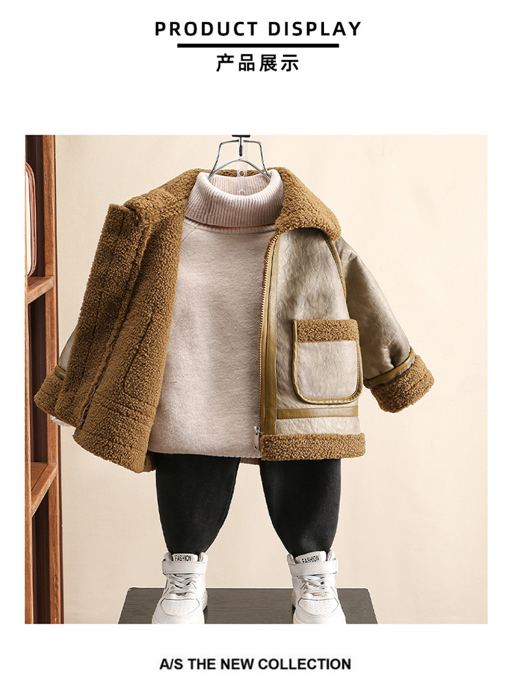 6611 소년 모피 원피스 코트 가을, 겨울 2025 새로운 아동복 플러스 벨벳 두꺼운 모직 탑 소년용스토어 가기