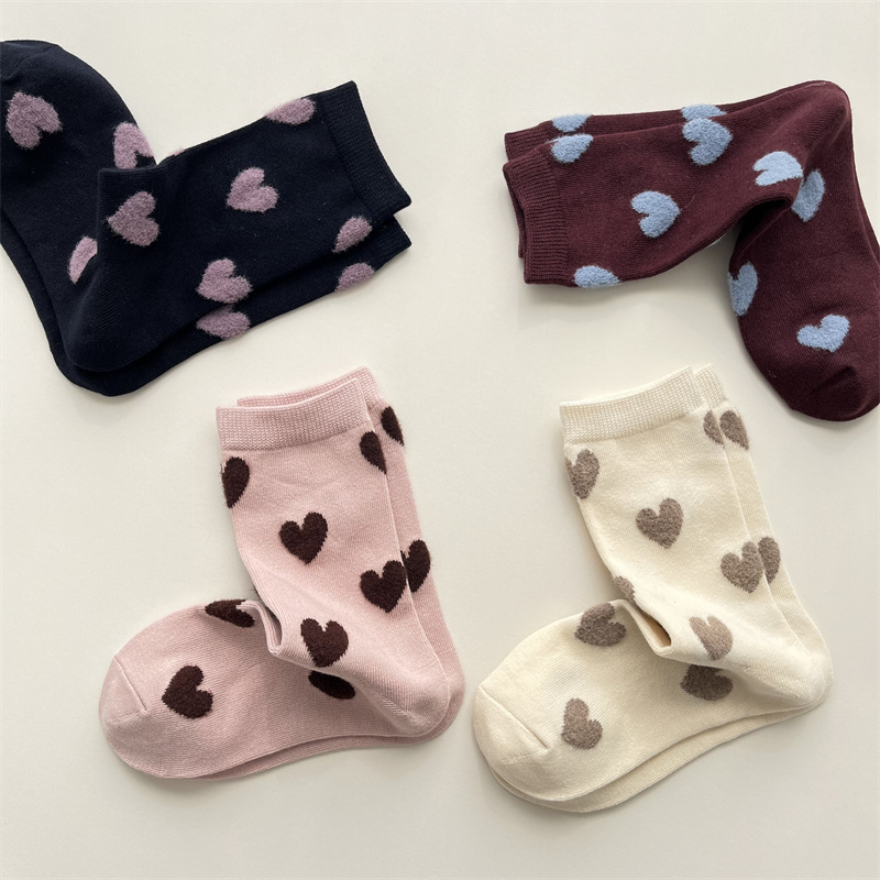 가을과 겨울 달콤한 귀여운 무리 사랑 튜브 양말 일본 간단한 다용도 파일 양말면 어린이를위한 통기성 양말