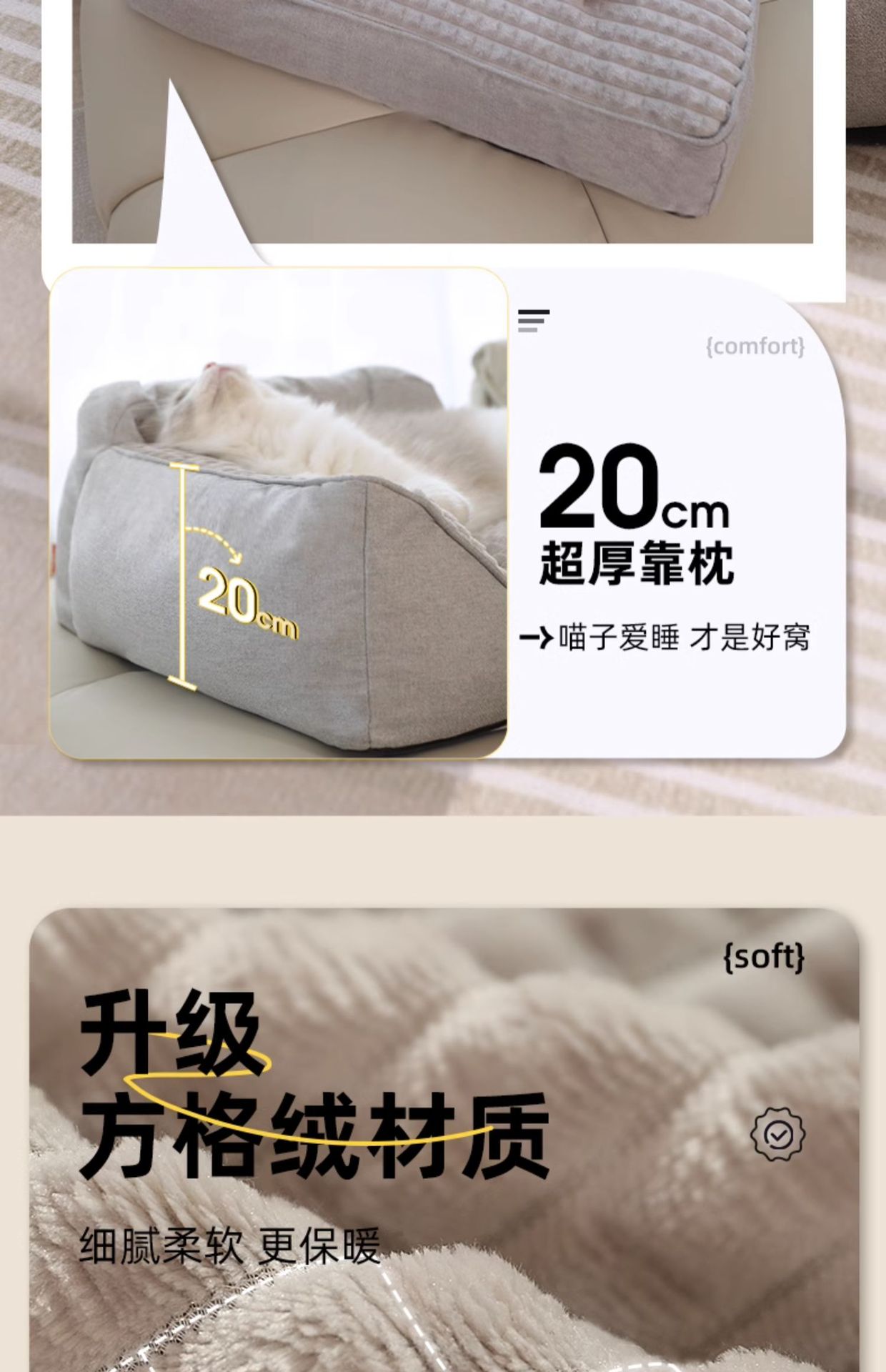 • [업그레이드 및 두꺼워짐] 양면 등받이 소파 고양이 둥지 (따뜻한 밀크티)