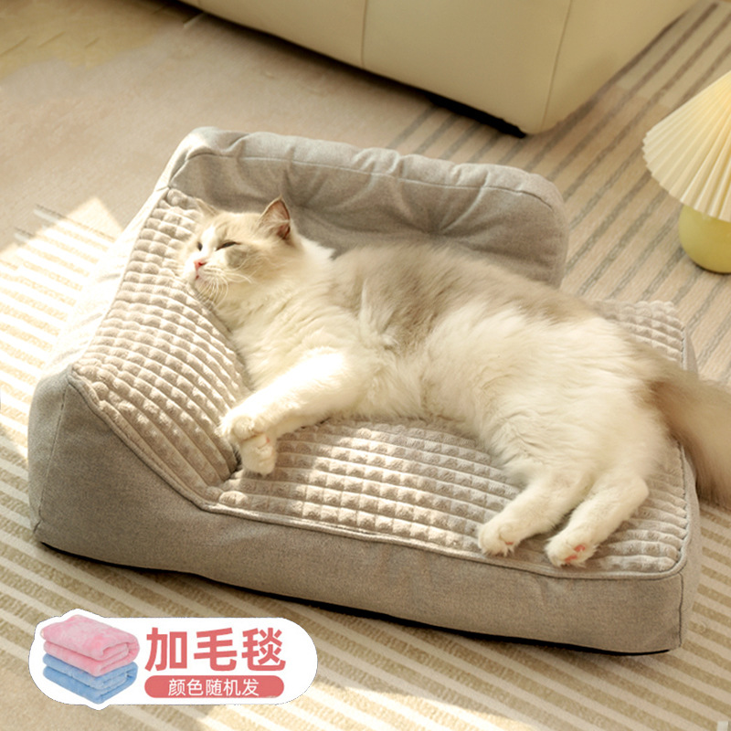 • [따뜻함] 양면 등받이 소파 고양이 둥지 (우아한 회색) + 담요*1